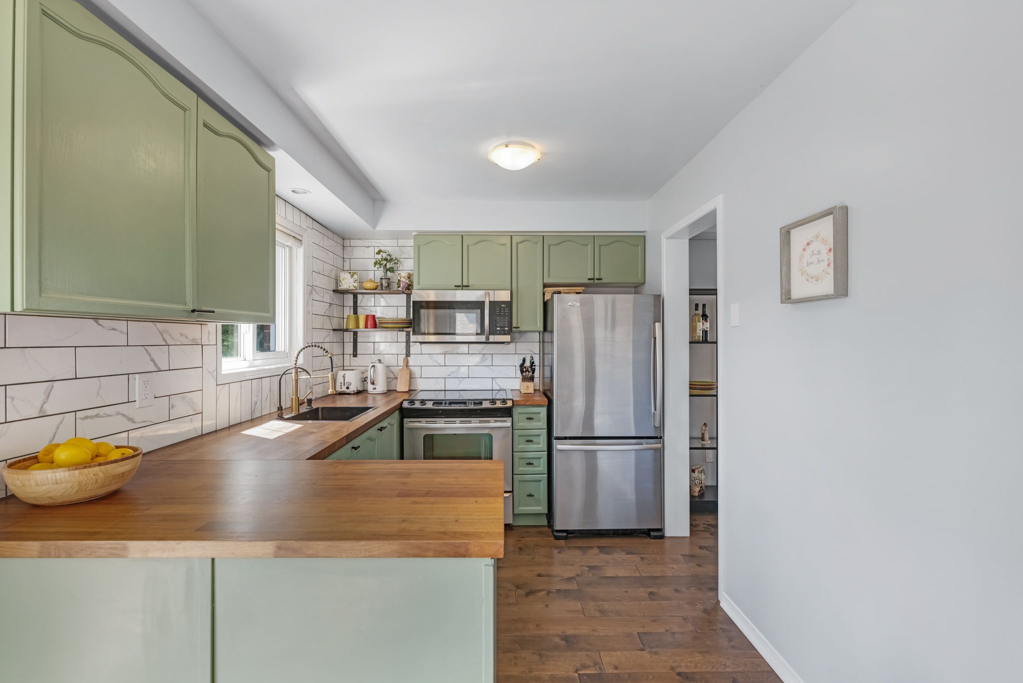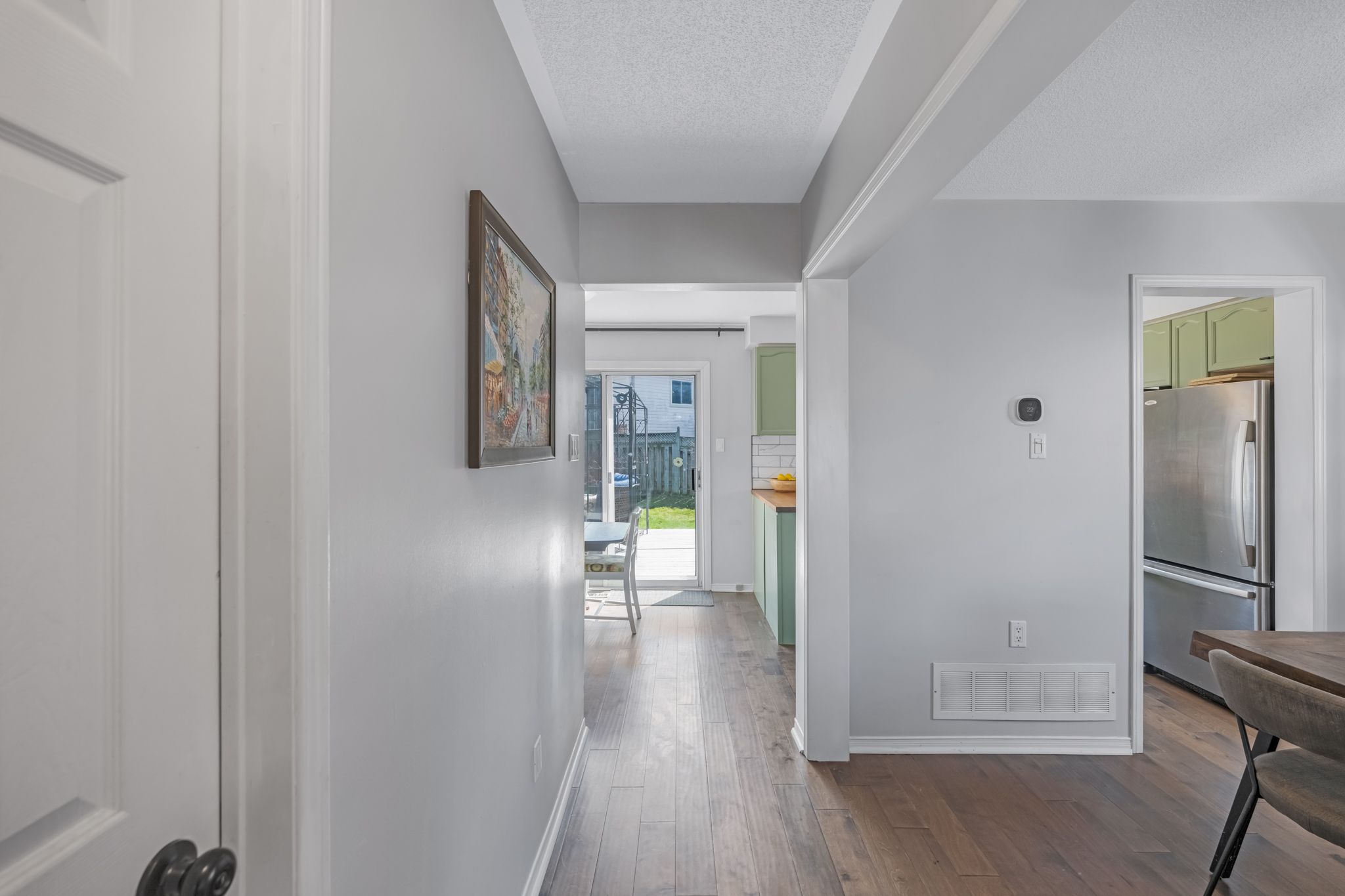 • Bright main floor with hardwood flooring and a walkout to the backyard deck.