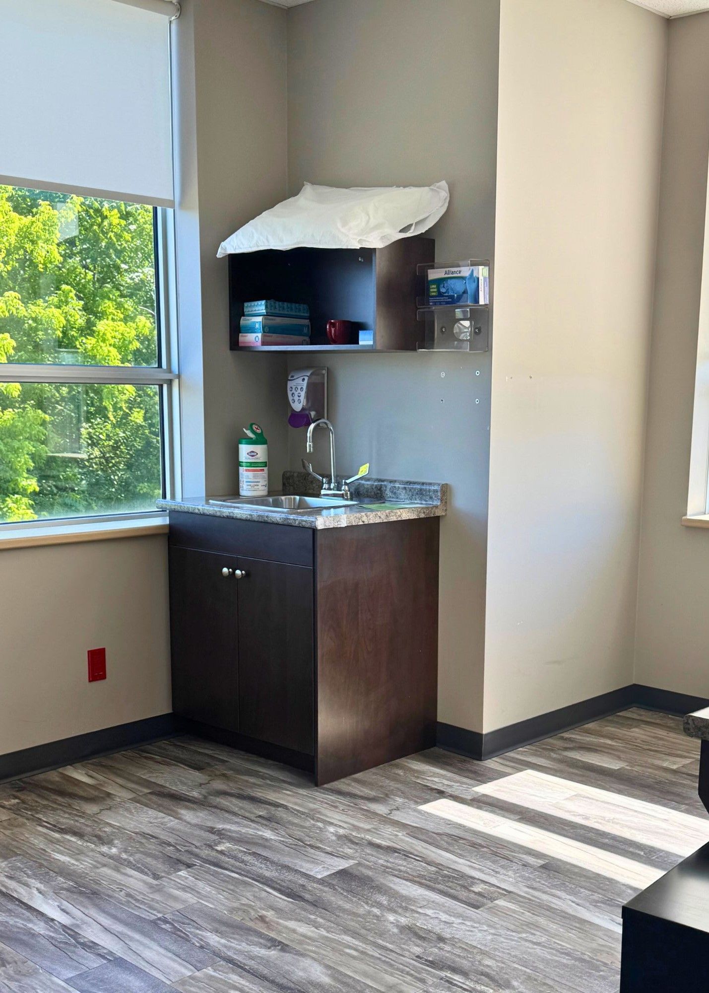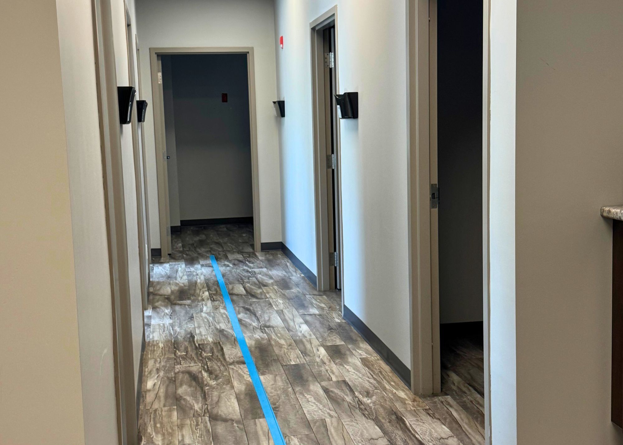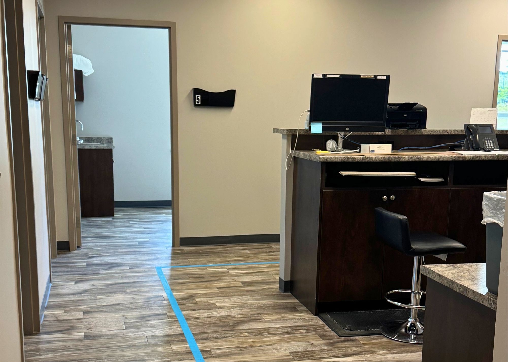 • Features shared waiting area, reception, and multiple exam rooms.