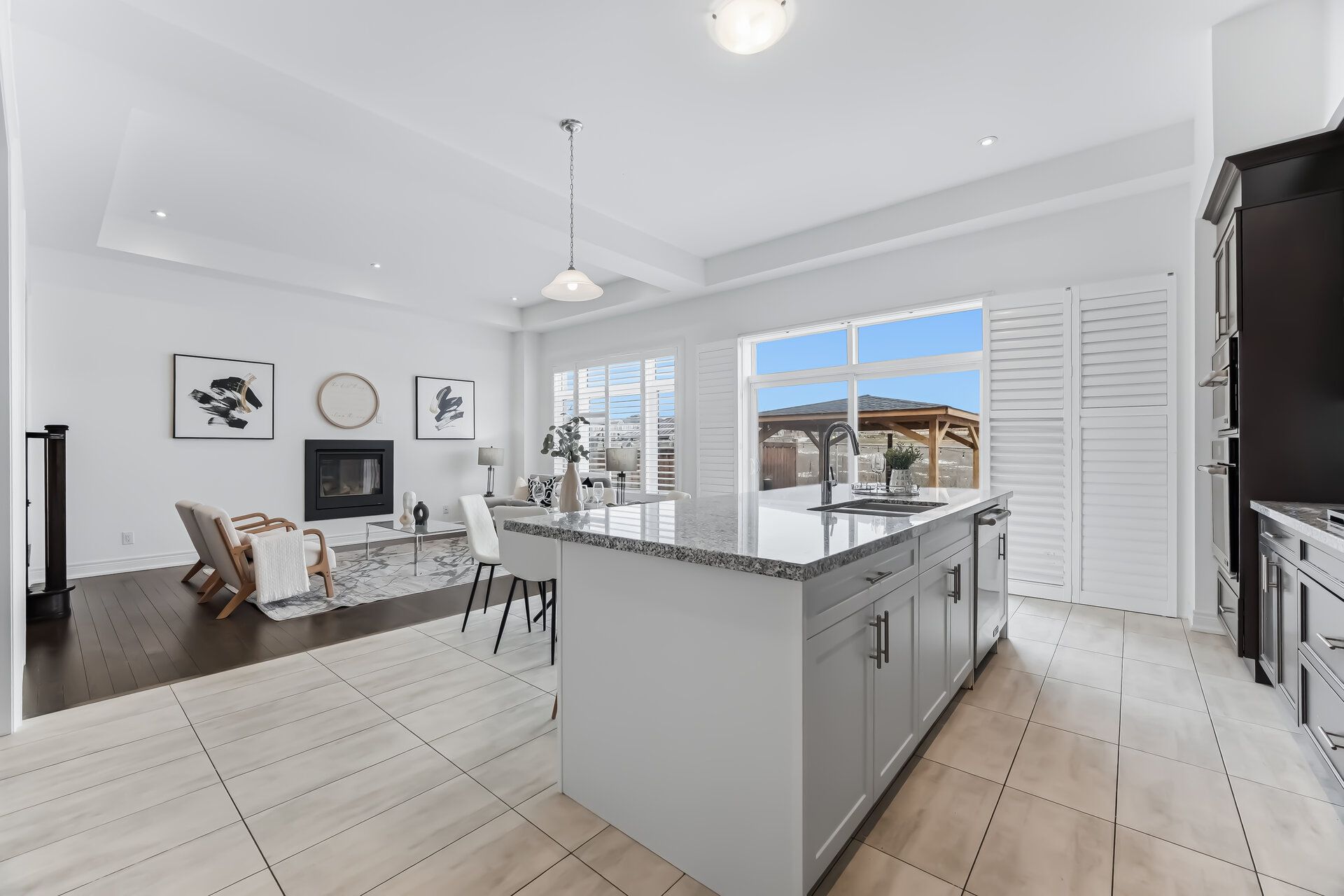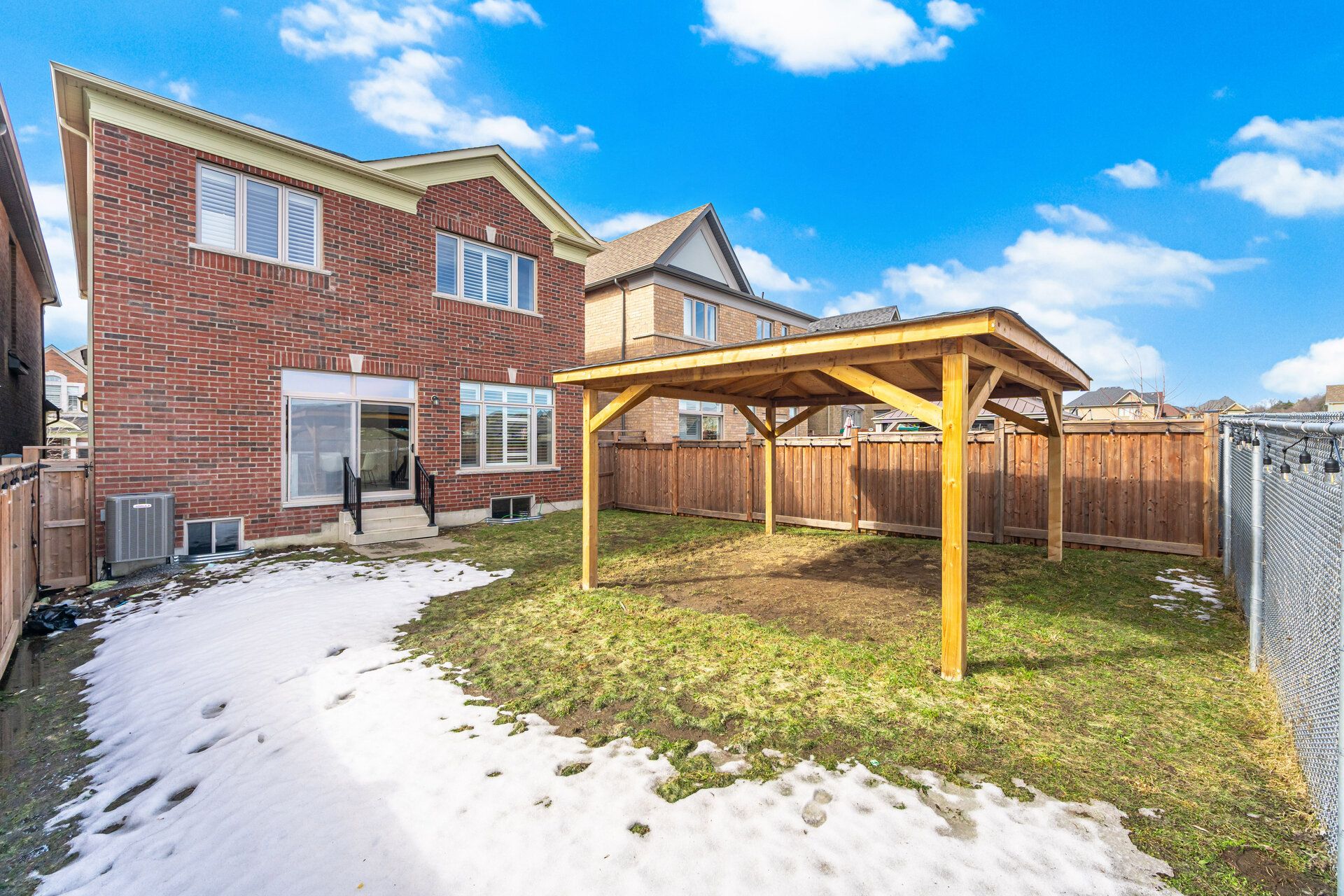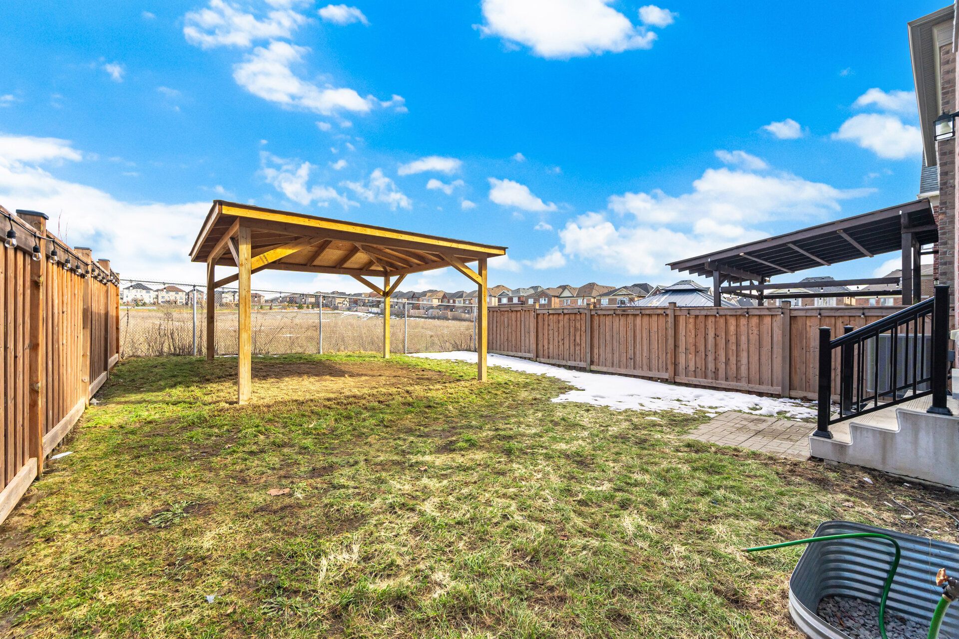• Private backyard with a gazebo and open views for relaxation.