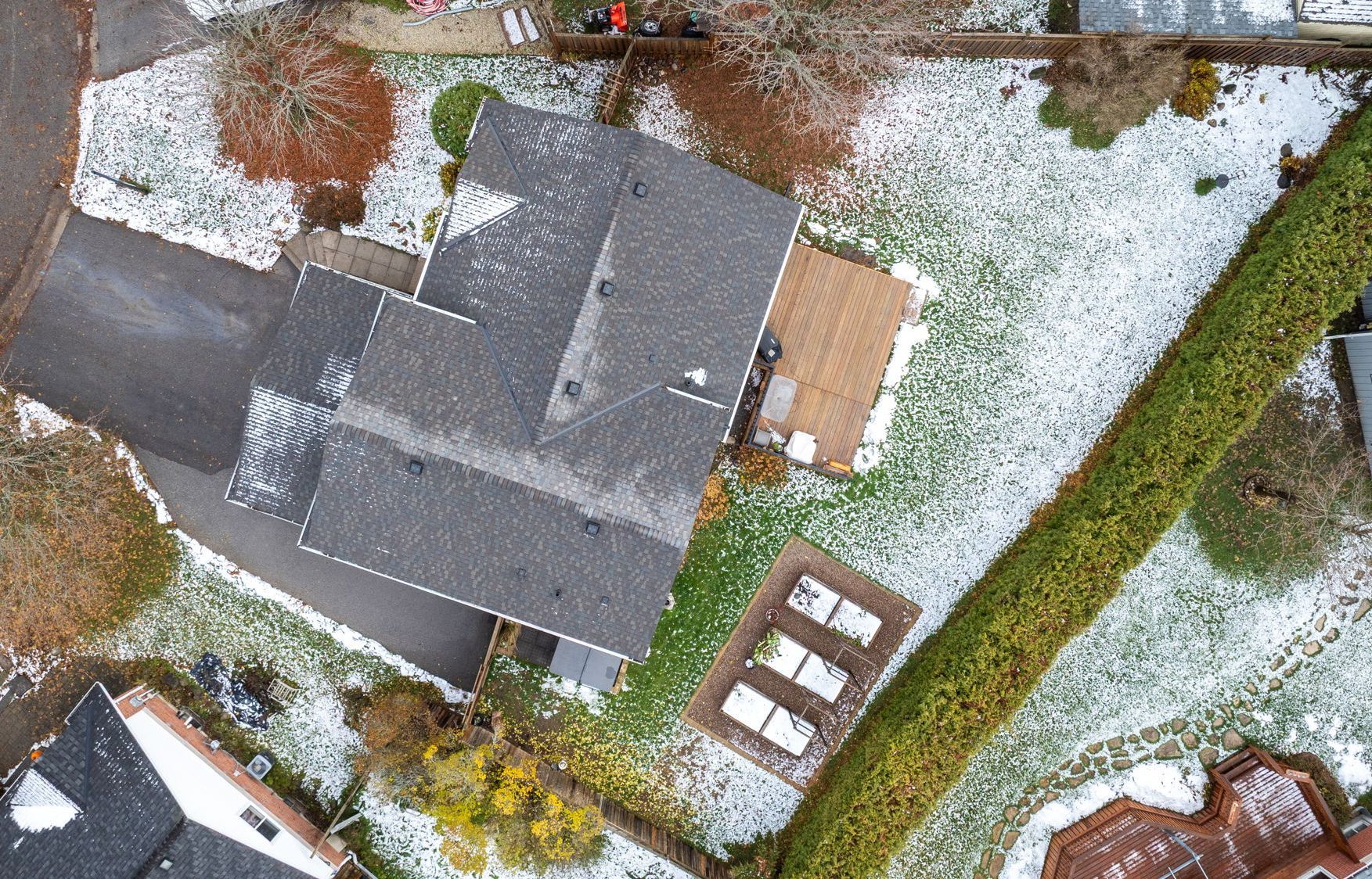 • Private pie-shaped lot with mature hedges and a hot tub in the backyard.