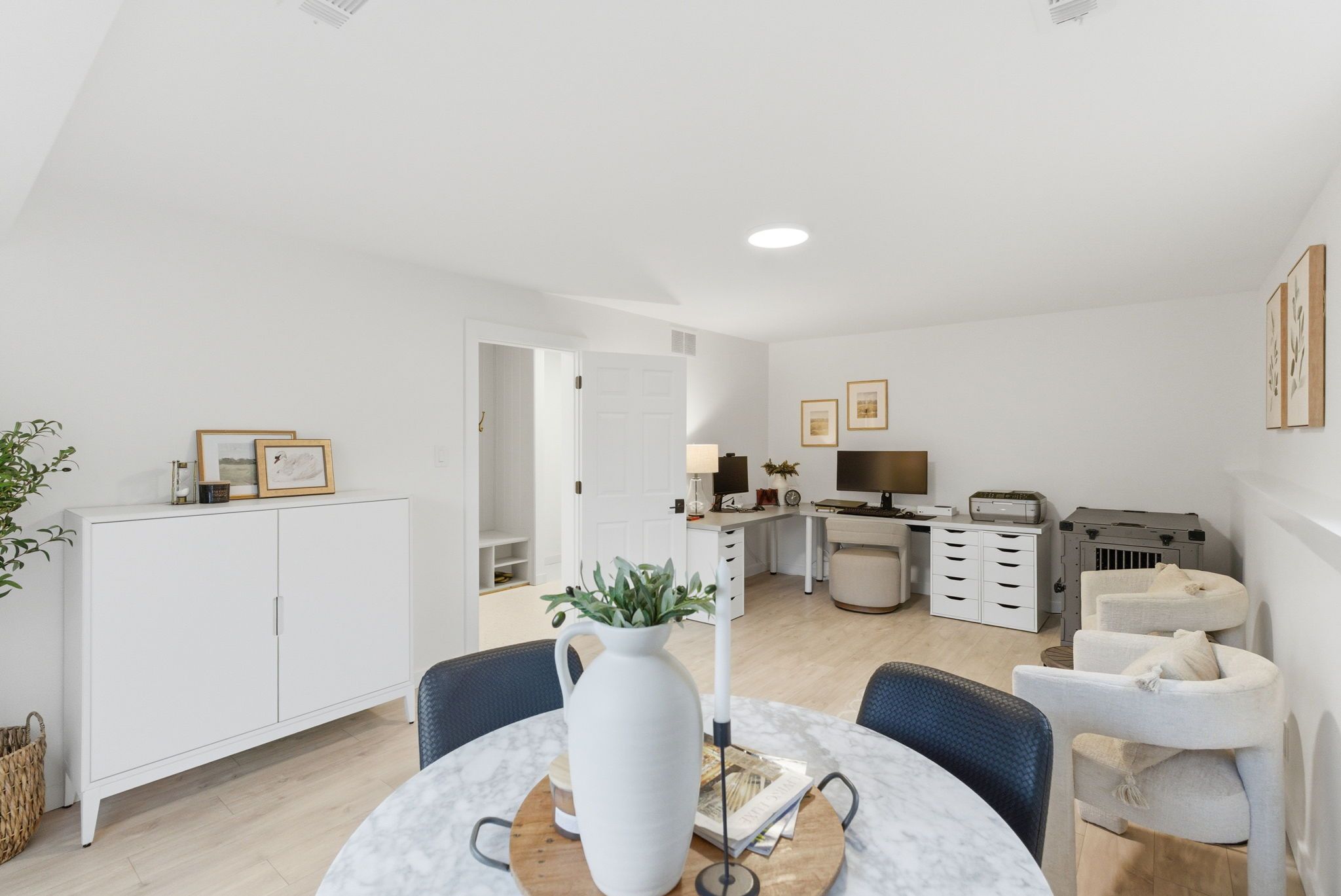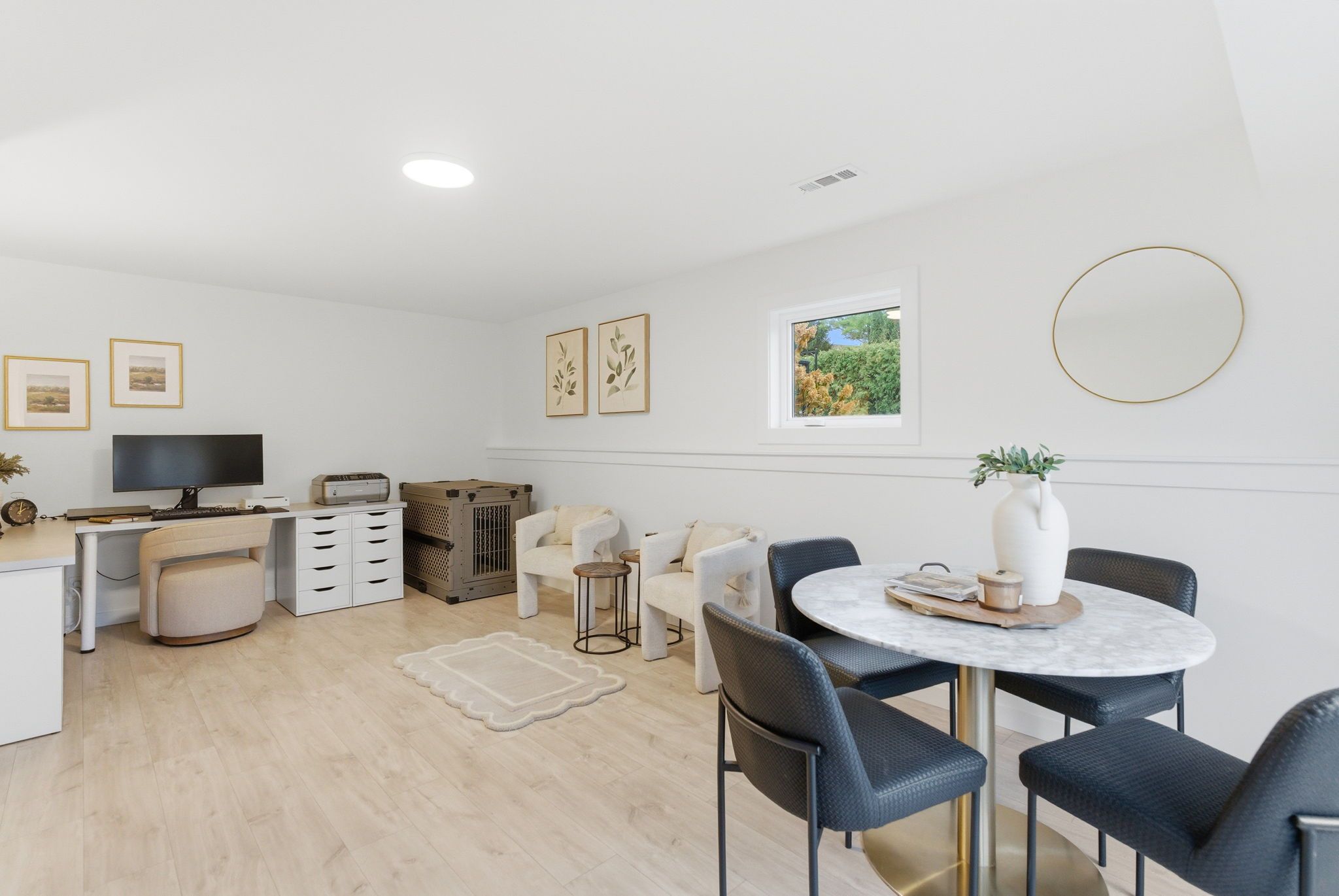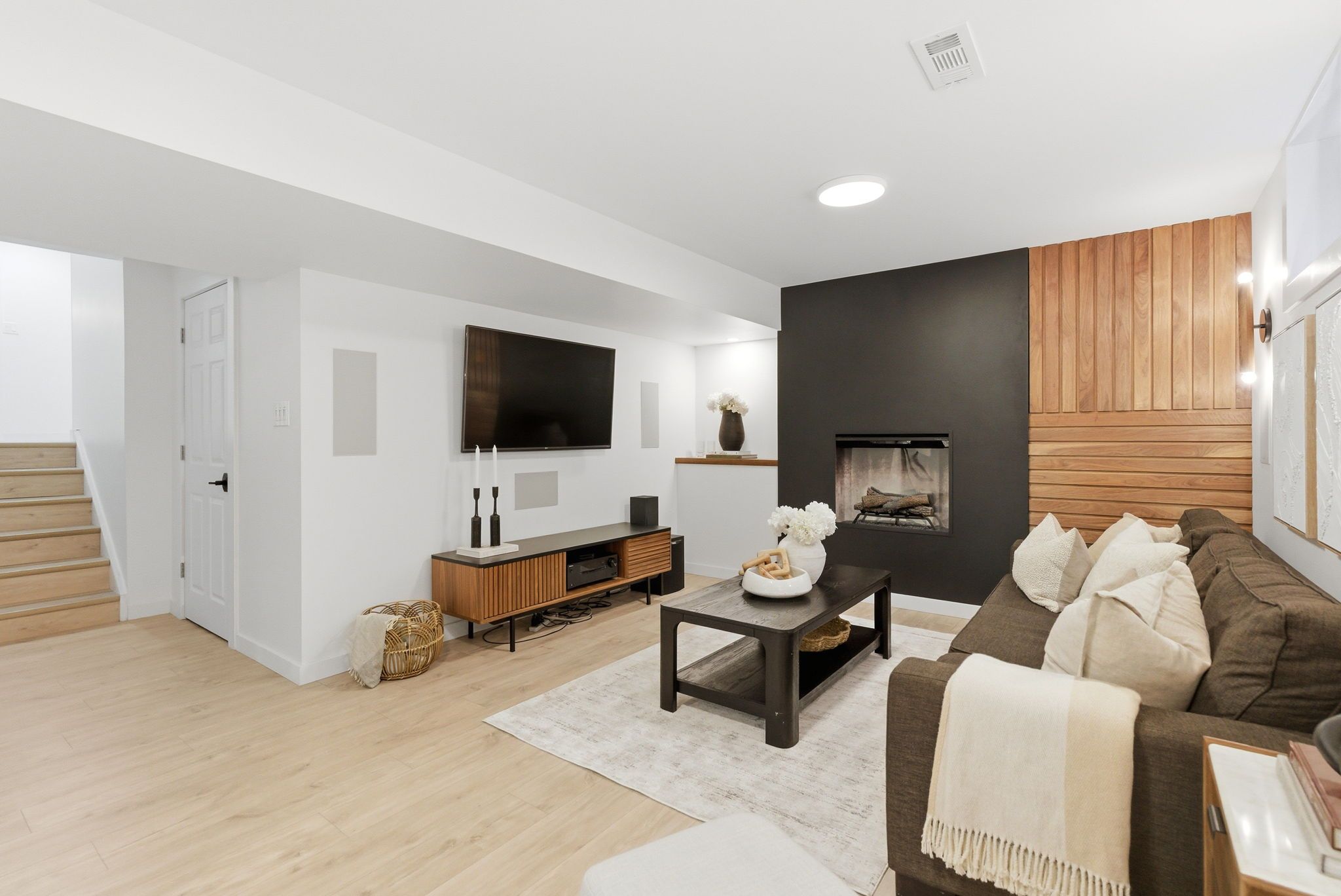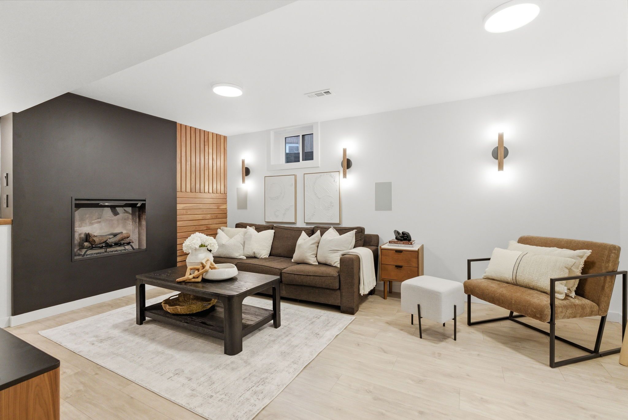 • Versatile lower level with fireplace, guest room, and ideal home office space.