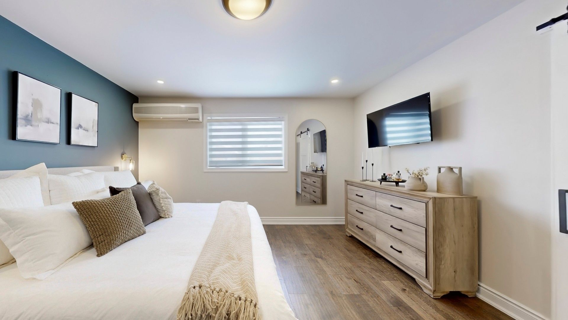 • Cozy electric fireplace adds warmth to the living space.
