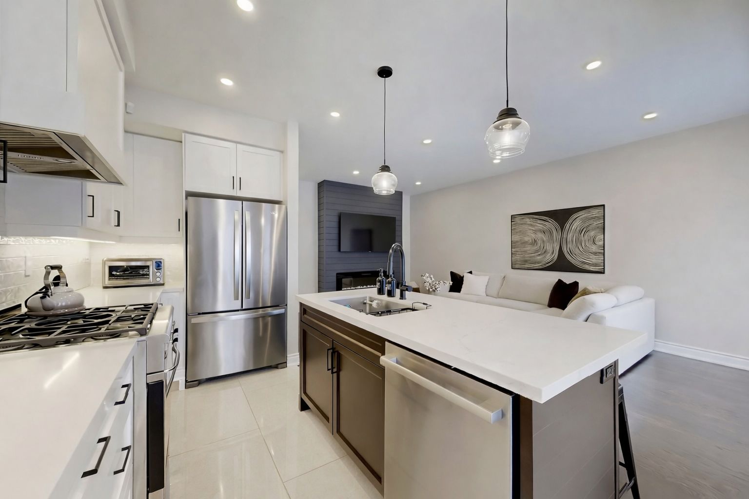 • Renovated main floor with modern kitchen and 9-foot ceilings.