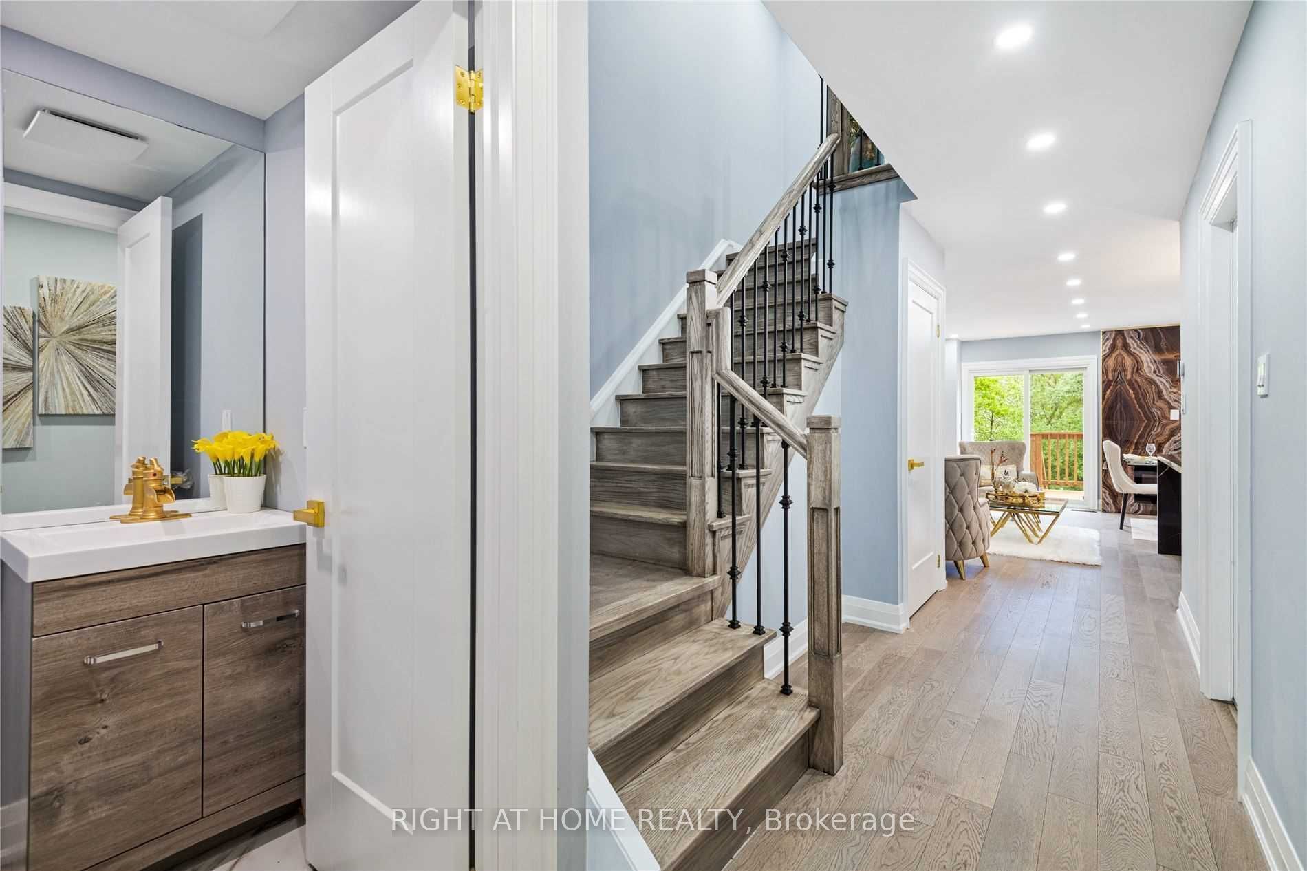 North richvale gem!! Fully renovated townhome backing onto ravine. Welcome to this beautifully upgraded 3-bedroom townhouse, fully renovated from top to bottom with elegant finishes and golden accents throughout. Nestled on a quiet street in the highly sought-after north richvale community, this home backs onto a tranquil ravine, offering both privacy and scenic views. Enjoy a brand new gas cooktop stove, built-in microwave & oven, and striking oak stairs with iron pickets. The primary bedroom boasts a custom-built closet and a luxurious 3-piece ensuite with glass shower. The finished walkout basement features a cozy wood-burning fireplace, leading to a multi-level deck overlooking the lush backyard oasis ideal for entertaining or relaxation. This rare find combines modern upgrades, timeless charm, and an unbeatable north richvale location. Don't miss your chance to call it home!