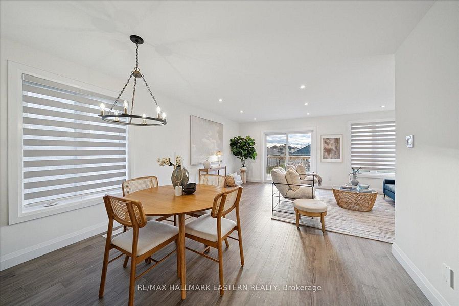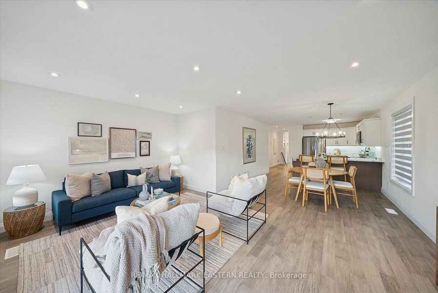 • Bright main level with open-concept kitchen, dining, and living areas.