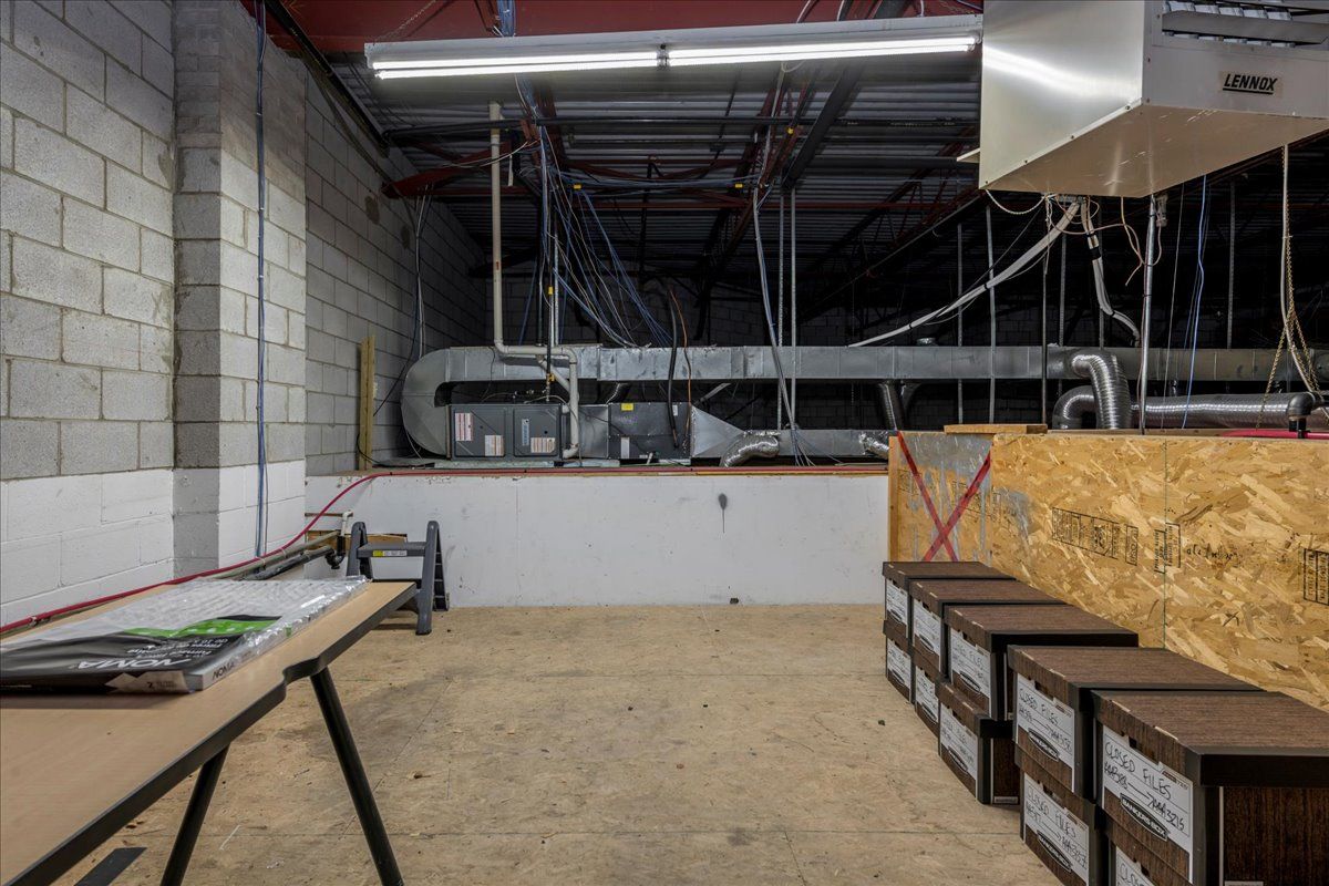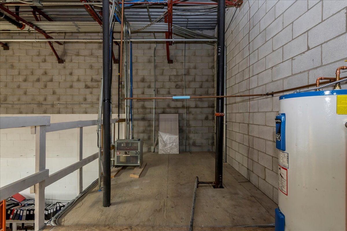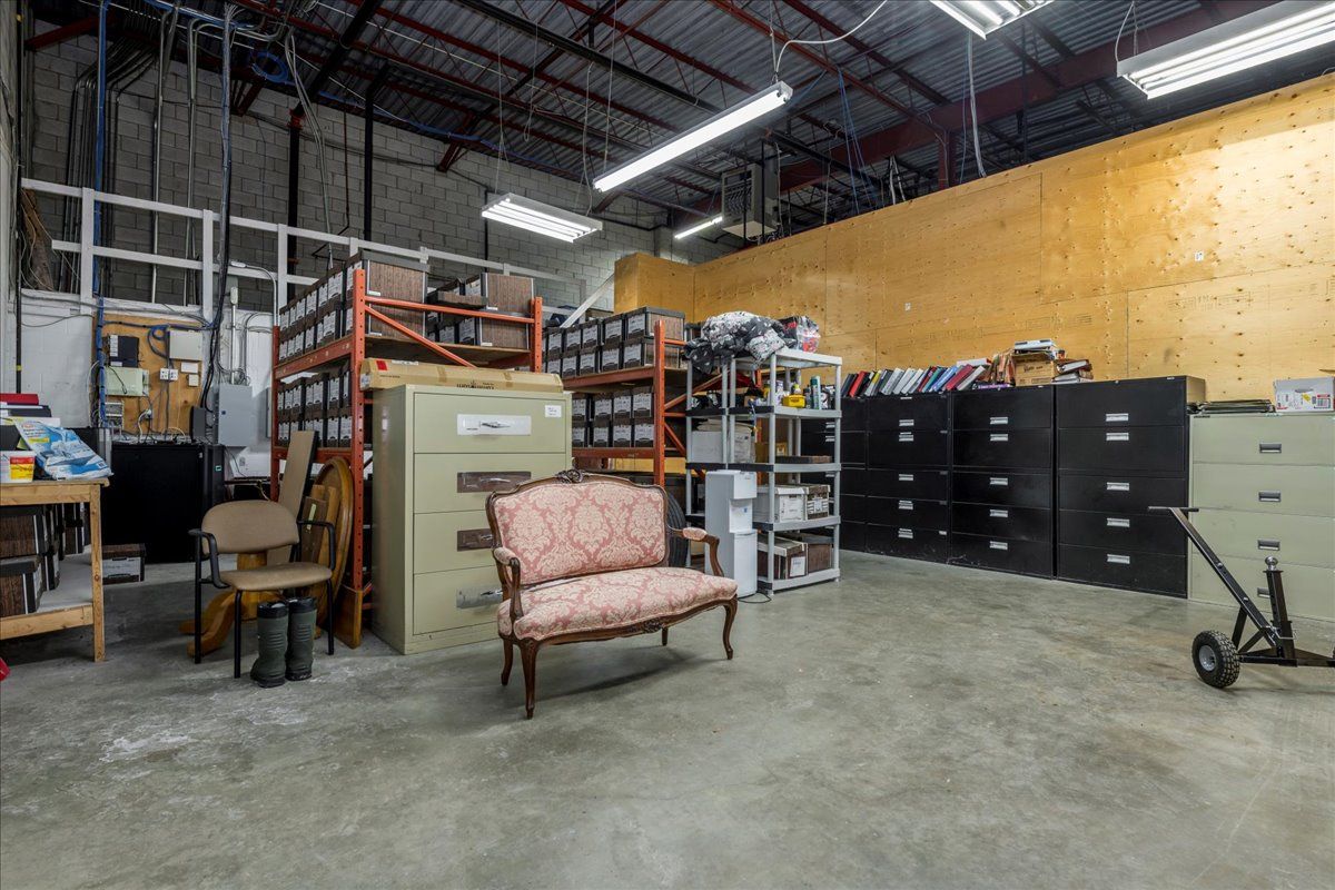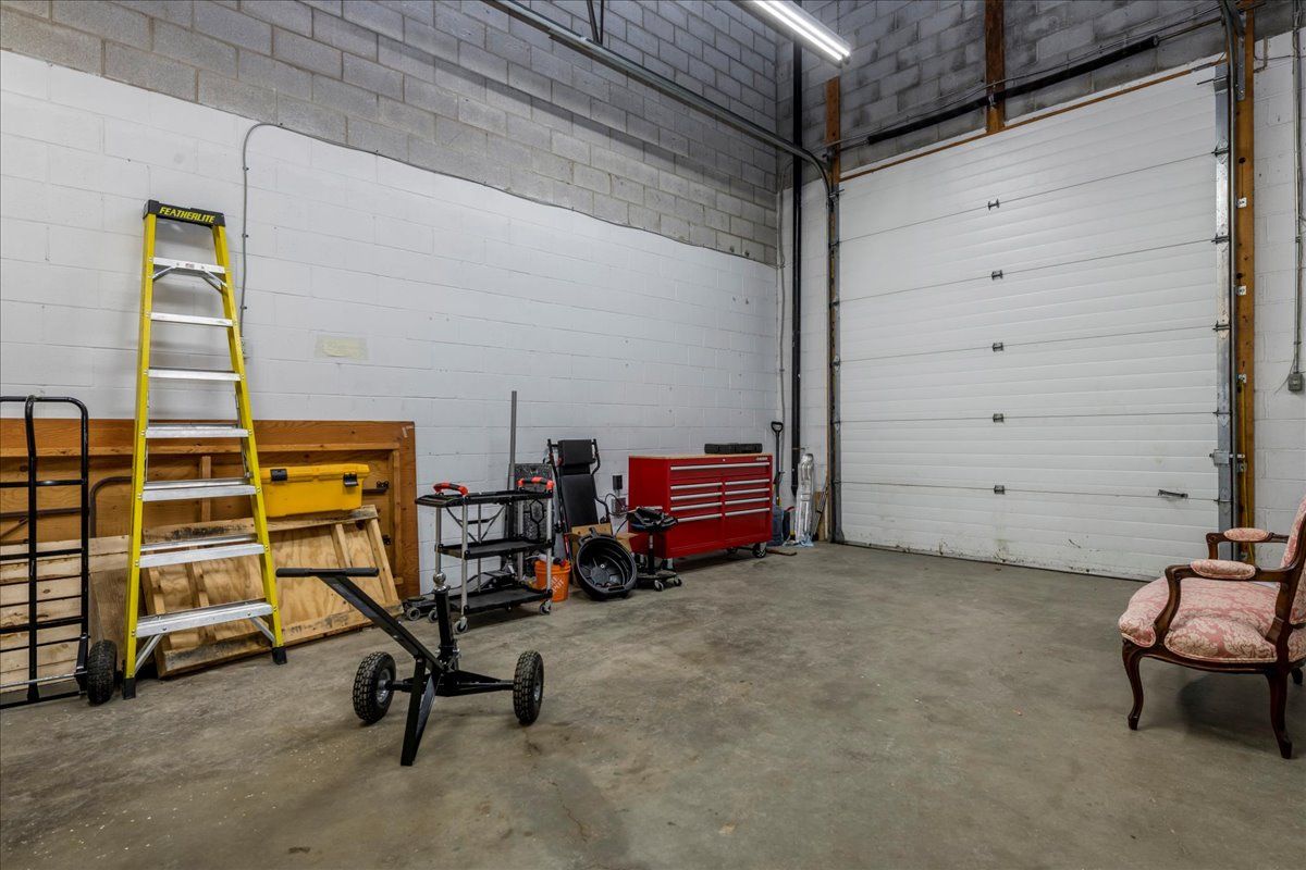 • Approximate 740 SF warehouse space with high ceilings and roll-up door.