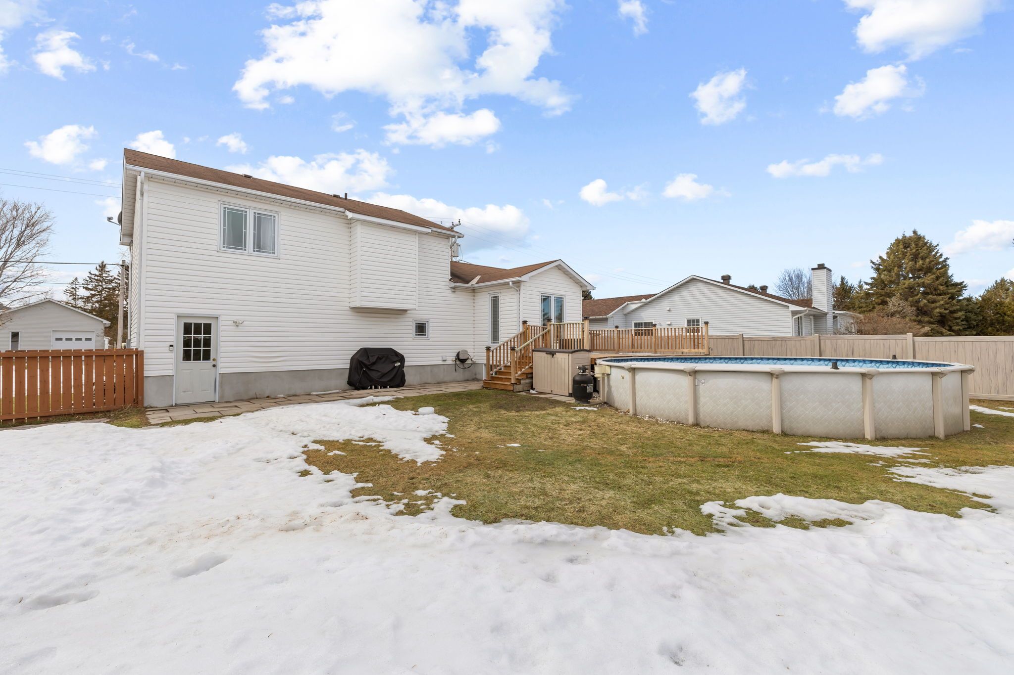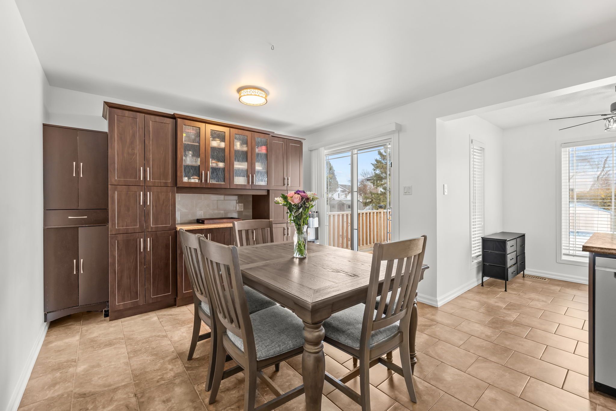 Welcome to 11 pincourt street in embrun, a beautiful 3-bedroom, 3-bathroom home nestled in a mature, family-friendly neighbourhood. The main floor welcomes you into a bright and inviting living space, where the living room flows seamlessly into the kitchen, dining area, and charming breakfast nook. From here, step outside and enjoy views of your incredible backyard oasis, featuring a large deck, above-ground pool, two sheds, firepit area, children's play structure, and garden beds - perfect for summer entertaining and family living. The kitchen showcases modern pot lights and cabinetry extending to the ceiling, creating a warm and polished atmosphere that makes this space the true heart of the home. Upstairs, you'll find three spacious bedrooms, including a well-designed family bathroom with double sinks and a primary suite complete with a walk-in closet and private ensuite. The lower level offers a laundry room, powder room, and convenient access to the double-car garage. The fully finished basement provides a cozy family room and plenty of storage space, ideal for growing families. Filled with natural light from large windows, this home sits on a partially fenced and hedged lot for added privacy, with plenty of space for kids to play in a quiet, well-established neighbourhood. A wonderful place to call home - you won't want to miss this one.
