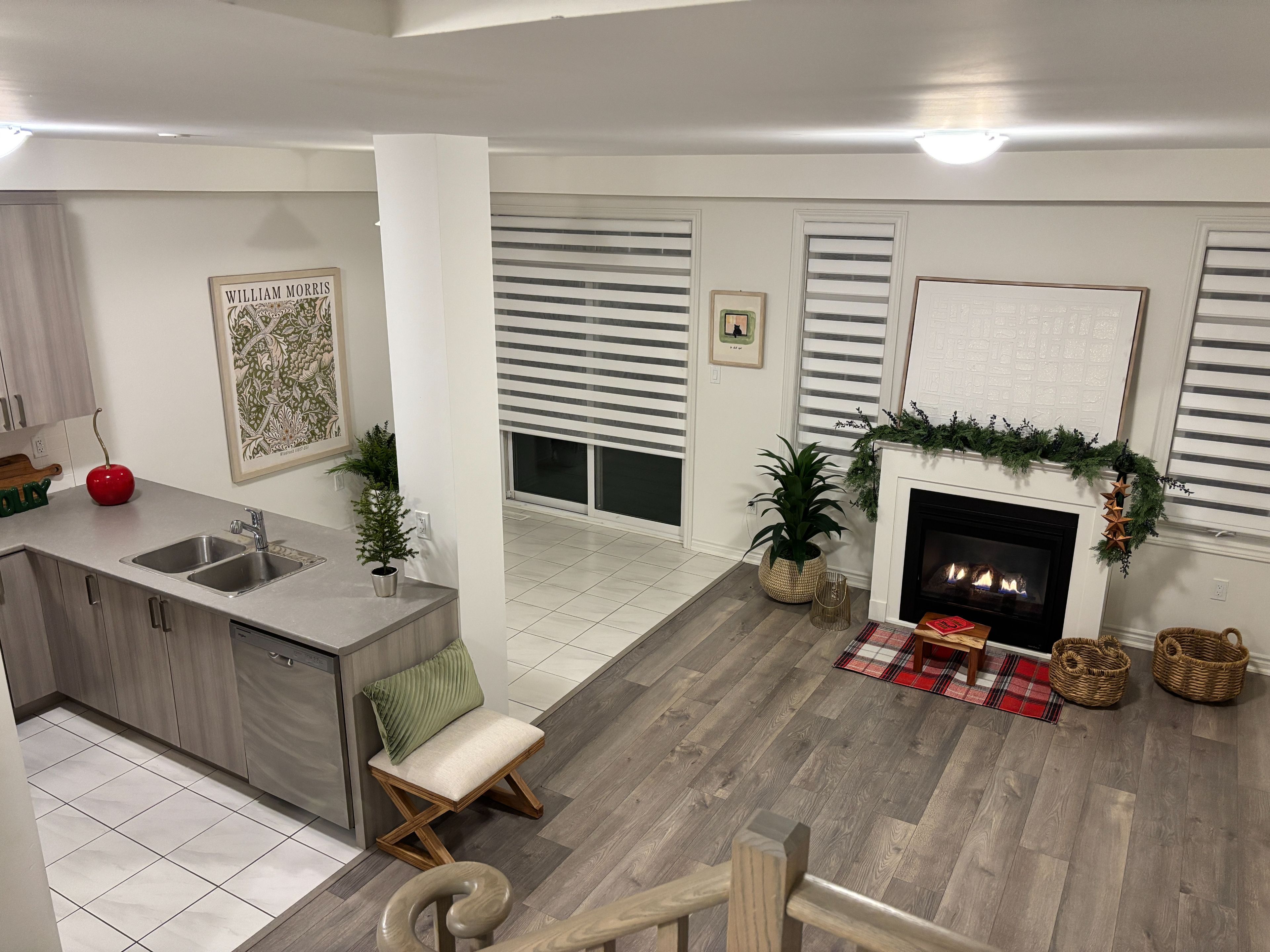• Bright open-concept main floor with 9-ft ceilings and modern decor.