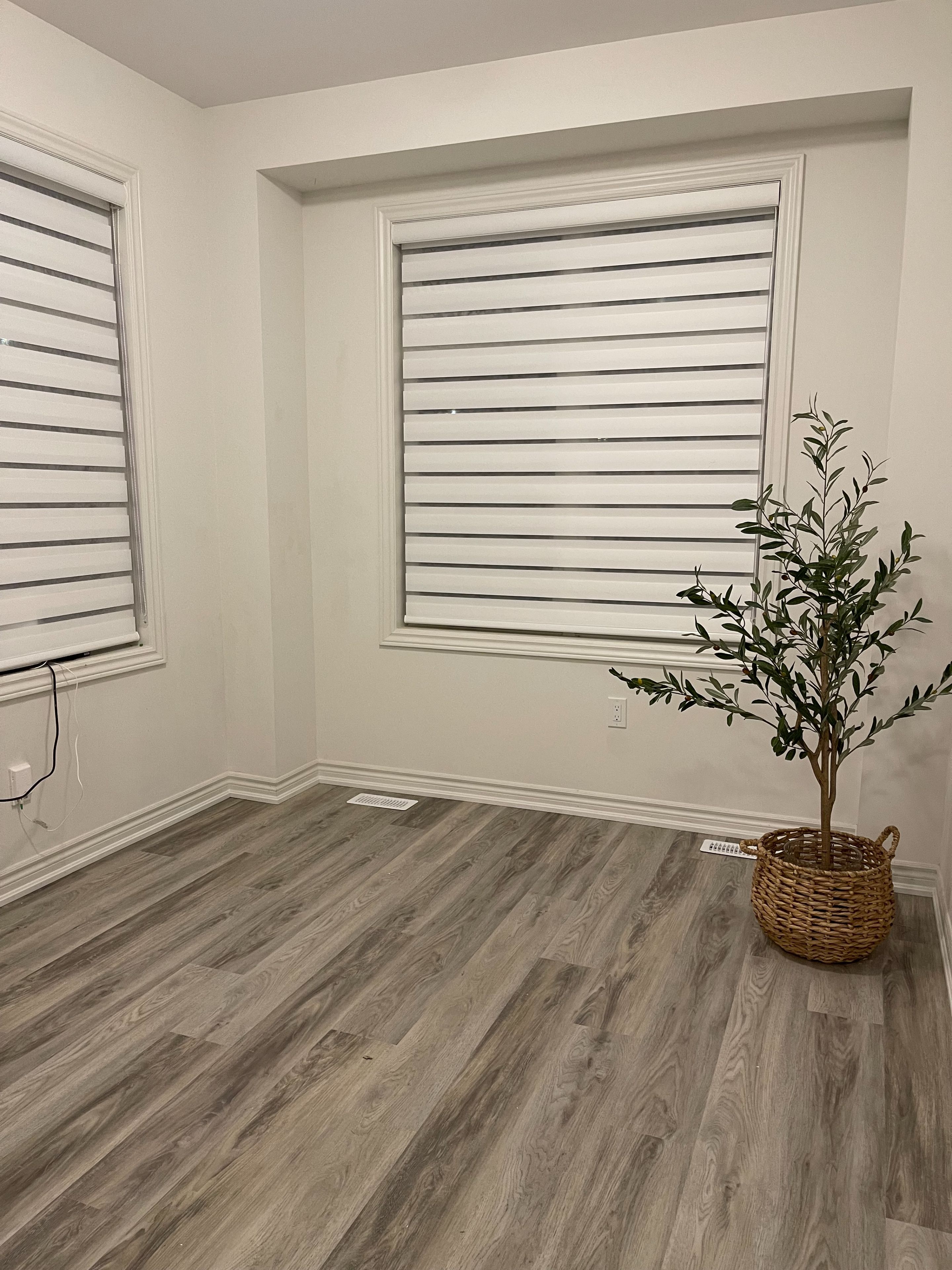 This nearly new, 2-year-old spacious corner-lot semi-detached home is filled with natural light and designed for comfortable family living. It features 4 bedrooms, 3 bathrooms, and a thoughtfully planned layout that blends style and functionality. Enjoy the sleek, modern interior with new hardwood flooring and zebra blinds throughout. Large windows flood the home with sunlight from sunrise to sunset. The elegant double-door entry opens to a bright, open-concept main floor with 9-ft ceilings and an additional formal room-perfect for a home office or family space. The modern kitchen boasts high-end stainless steel appliances and a spacious breakfast area with a walkout to the backyard. Upstairs, the convenient second-floor laundry makes daily routines effortless. The primary bedroom offers two walk-in closets and a luxurious 4-piece ensuite, complemented by three additional bedrooms and a stylish 3-piece bath. A separate entrance from the garage adds extra practicality and convenience.