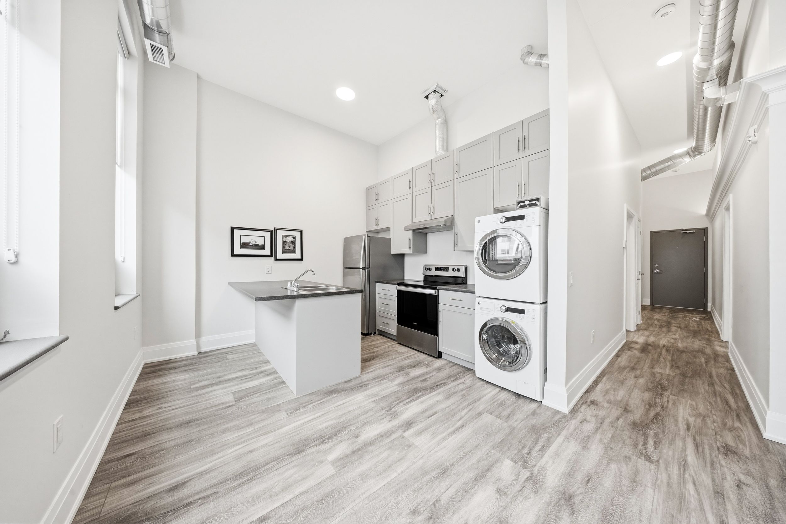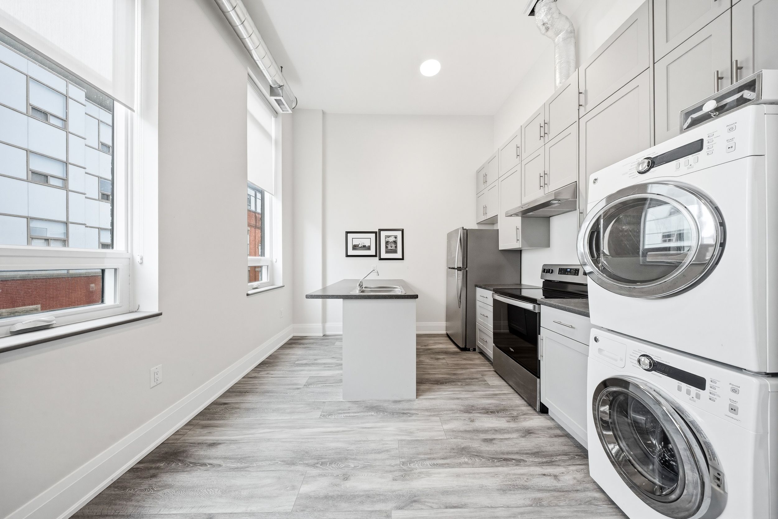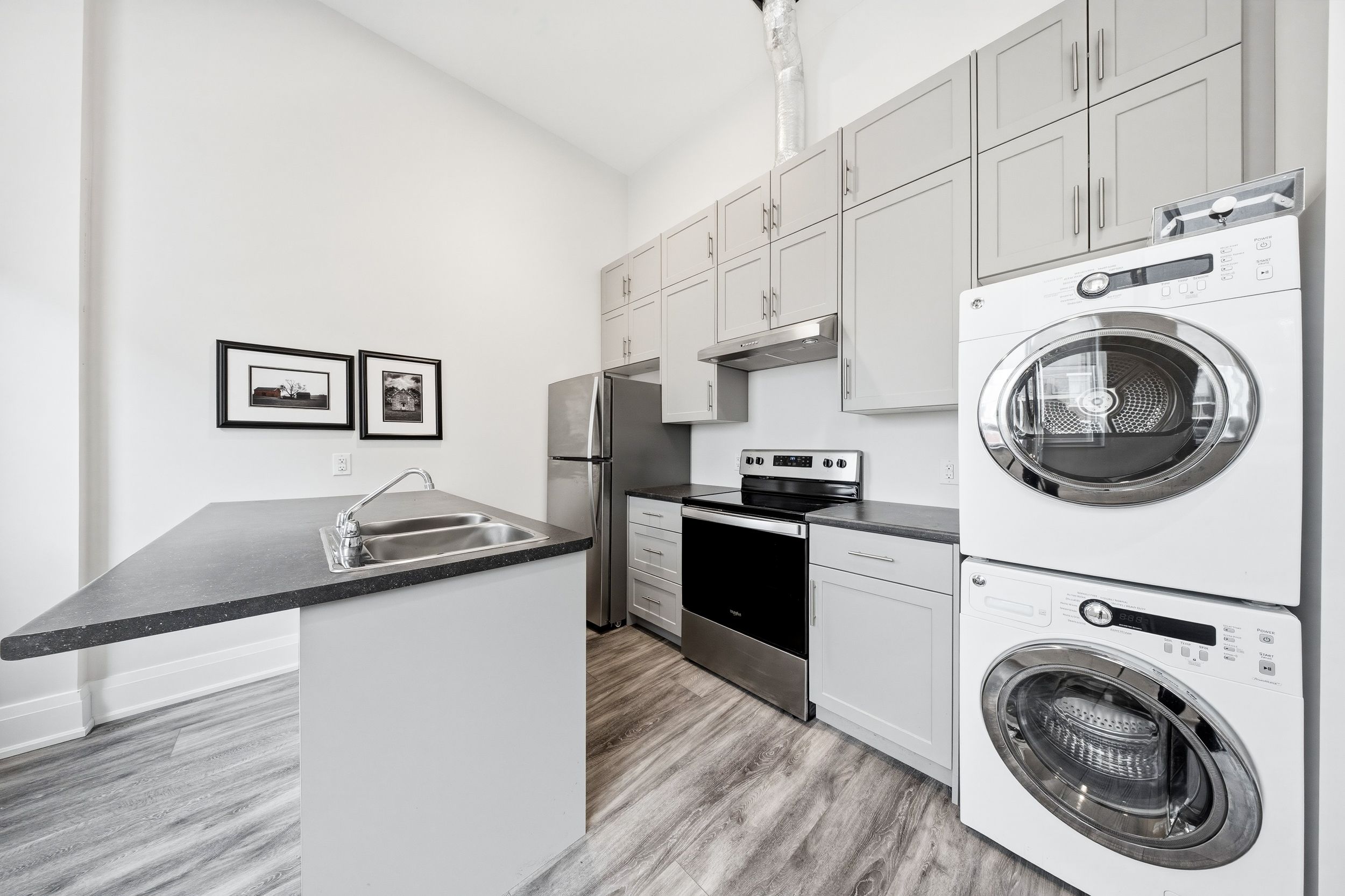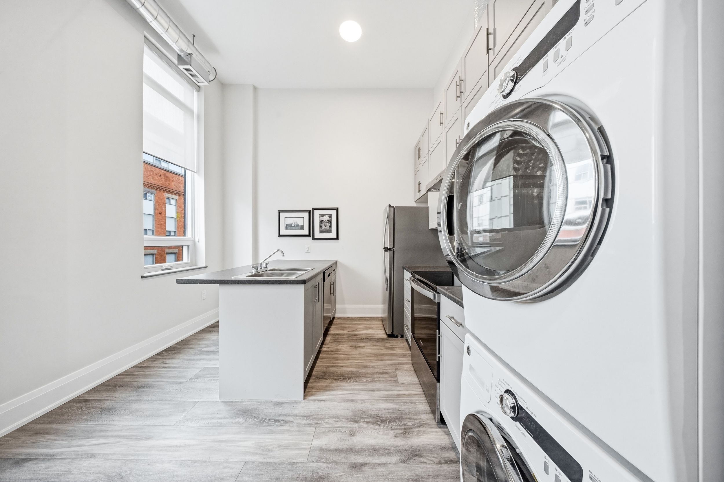 • Stylish kitchen with stainless steel appliances and in-suite laundry.