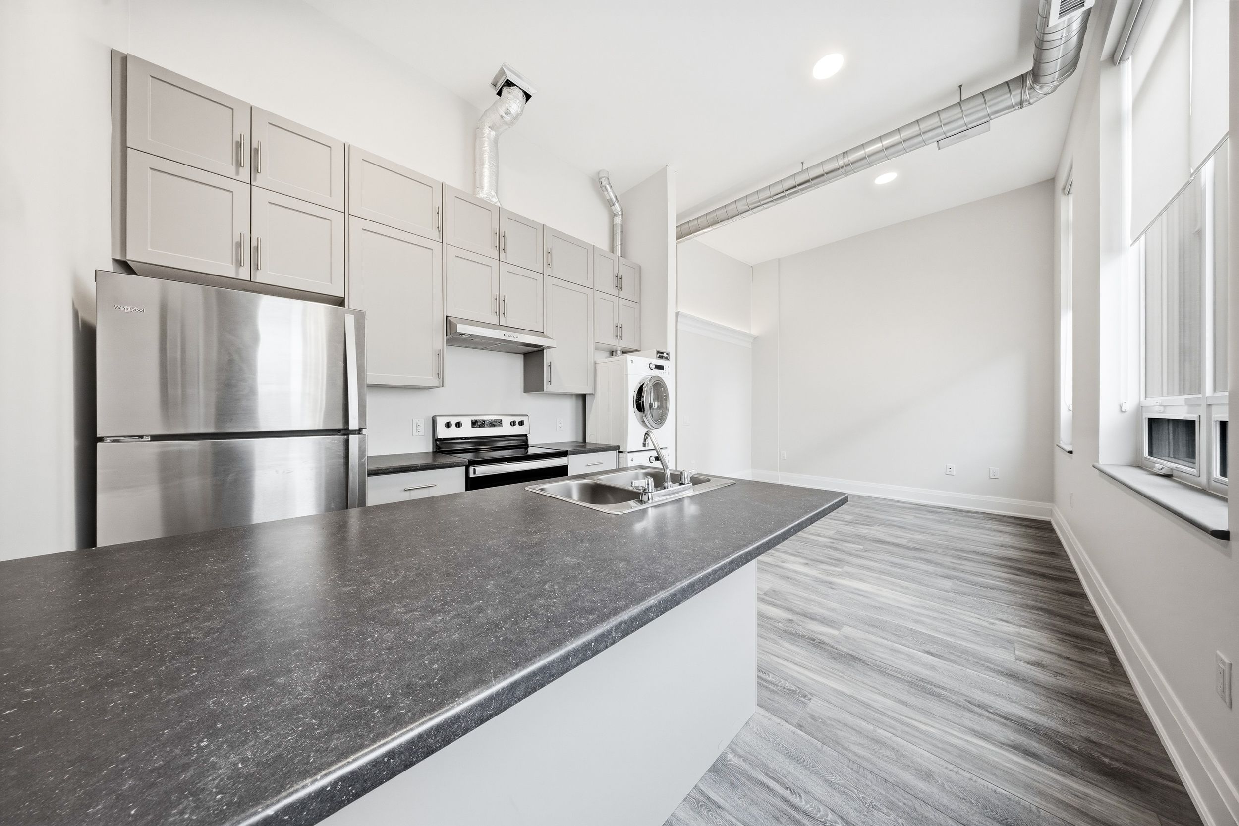 Welcome to 11 queen street - a bright, loft-style 3-bedroom, 1-bathroom residence in the heart of downtown brantford. Located in a fully restored and secure building (completed in 2019), this renovated unit offers modern living with character and style. The open-concept layout is thoughtfully designed to maximize space and natural light, featuring oversized windows, high ceilings, and carpet-free, easy-care laminate flooring throughout. Tasteful upgrades include a sleek, modern bathroom and a practical kitchen equipped with stainless steel appliances, including a fridge, stove, and dishwasher. In-suite laundry adds everyday convenience. The building offers enhanced security with a 24-hour camera system and is ideally situated just steps from the grand river, parks, trails, restaurants, shopping, and entertainment. Wilfrid laurier university and conestoga college are within walking distance, making this an excellent option for students or professionals. Public transit, via rail, go bus service, and quick highway access are all nearby. Water and heat included; tenant pays hydro, internet, and tenant insurance. Street parking or nearby city lot parking available