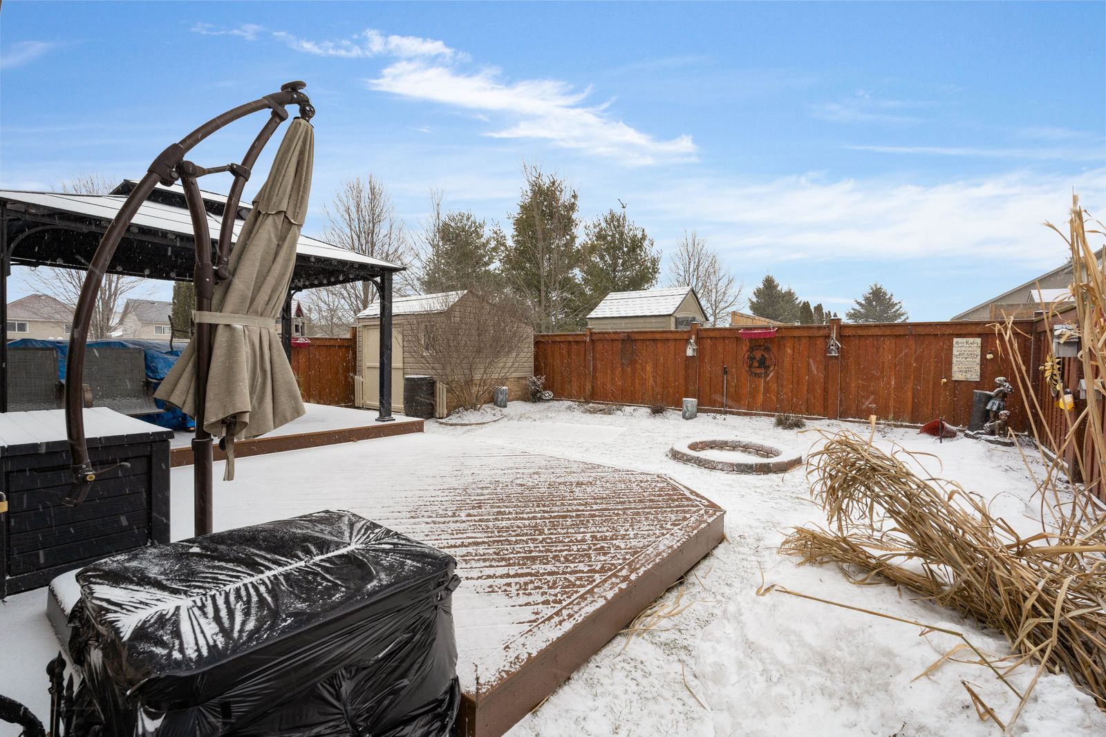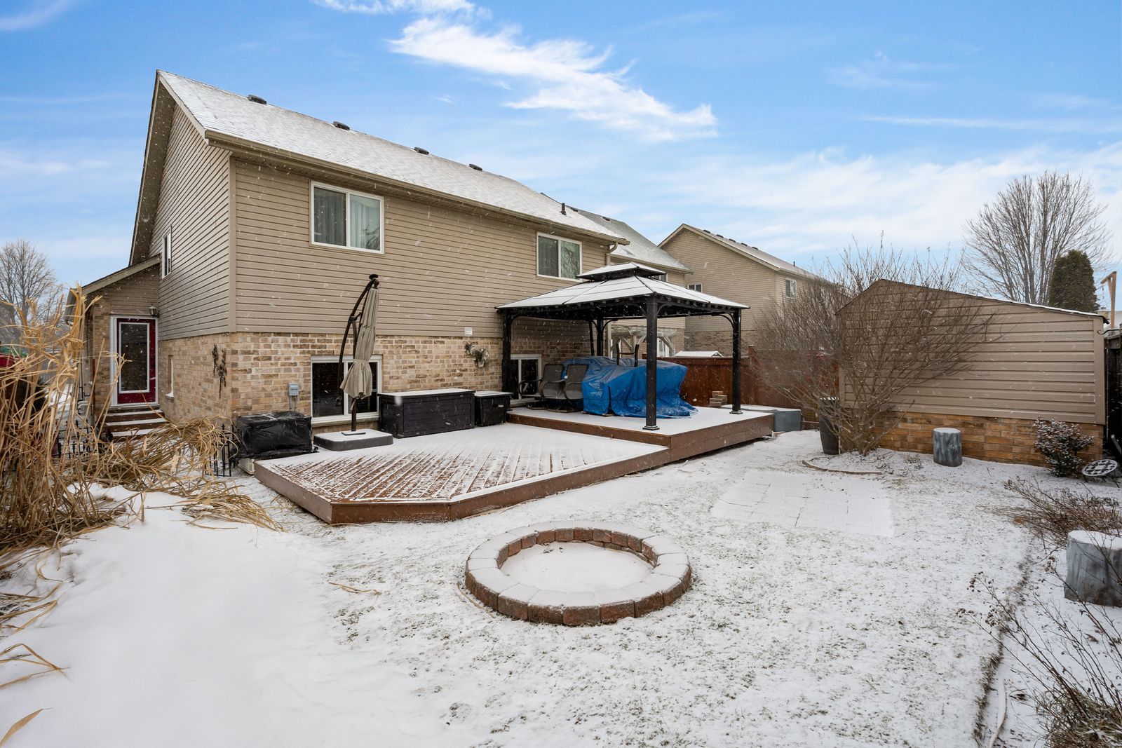 • Beautifully landscaped yard with in-ground irrigation and a metal gazebo.