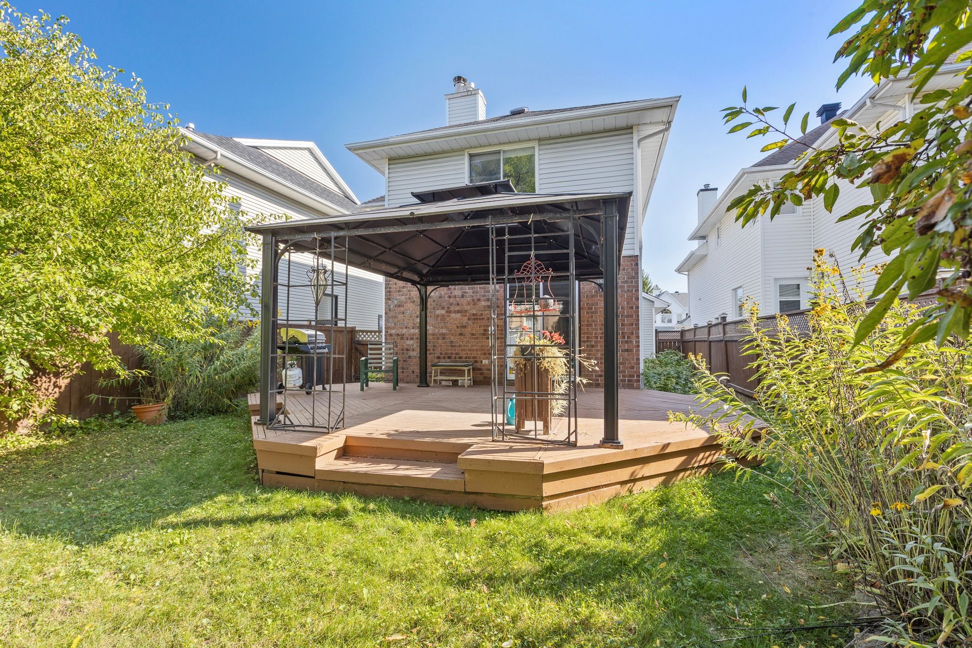 • Expansive backyard features a large deck and gazebo for outdoor enjoyment.