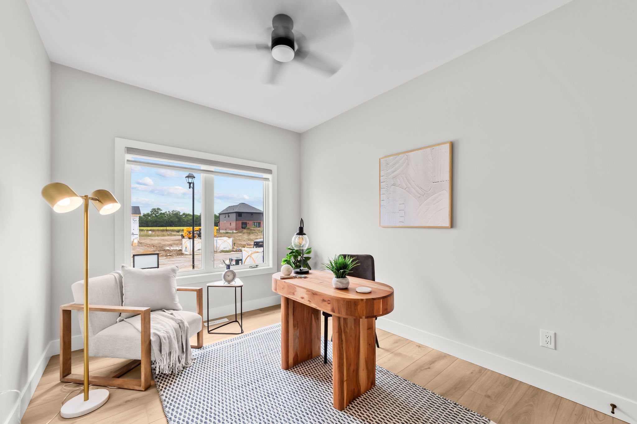 • Light-filled living space with oversized windows and patio door.