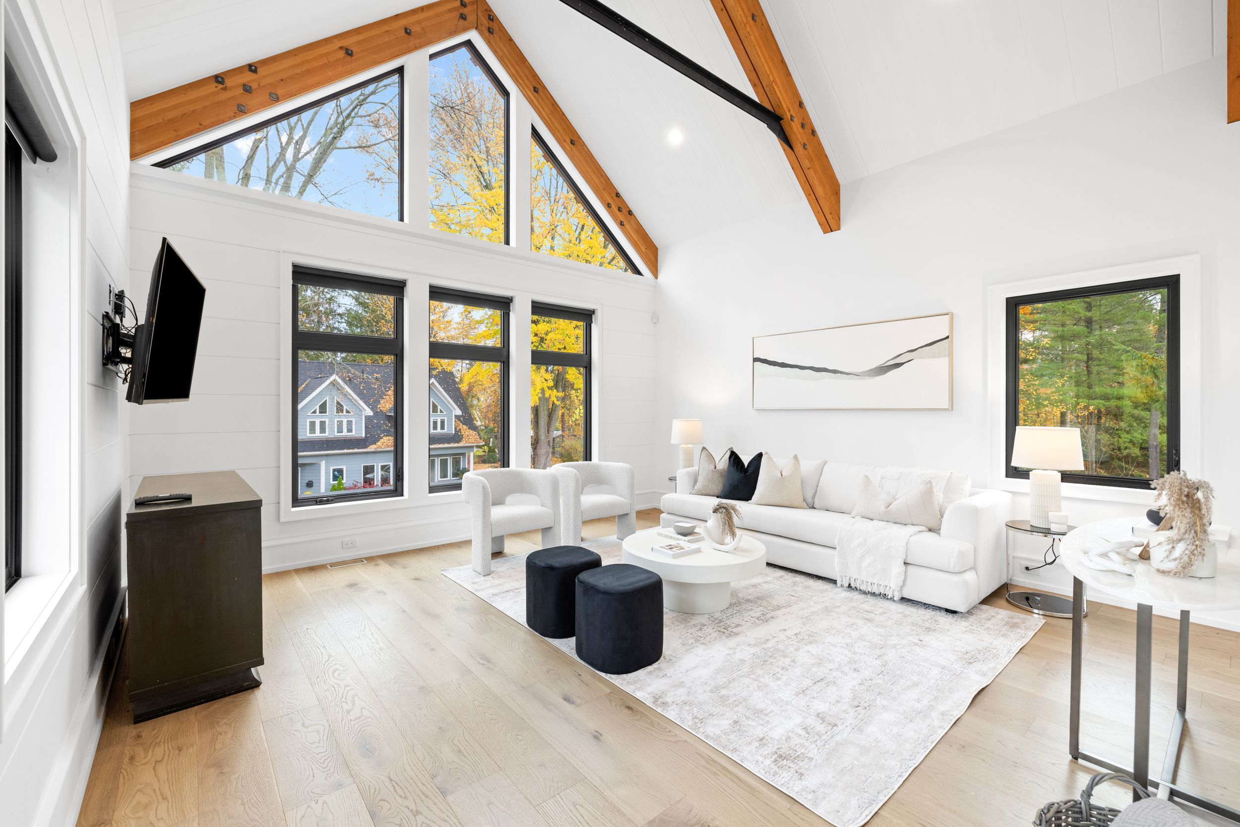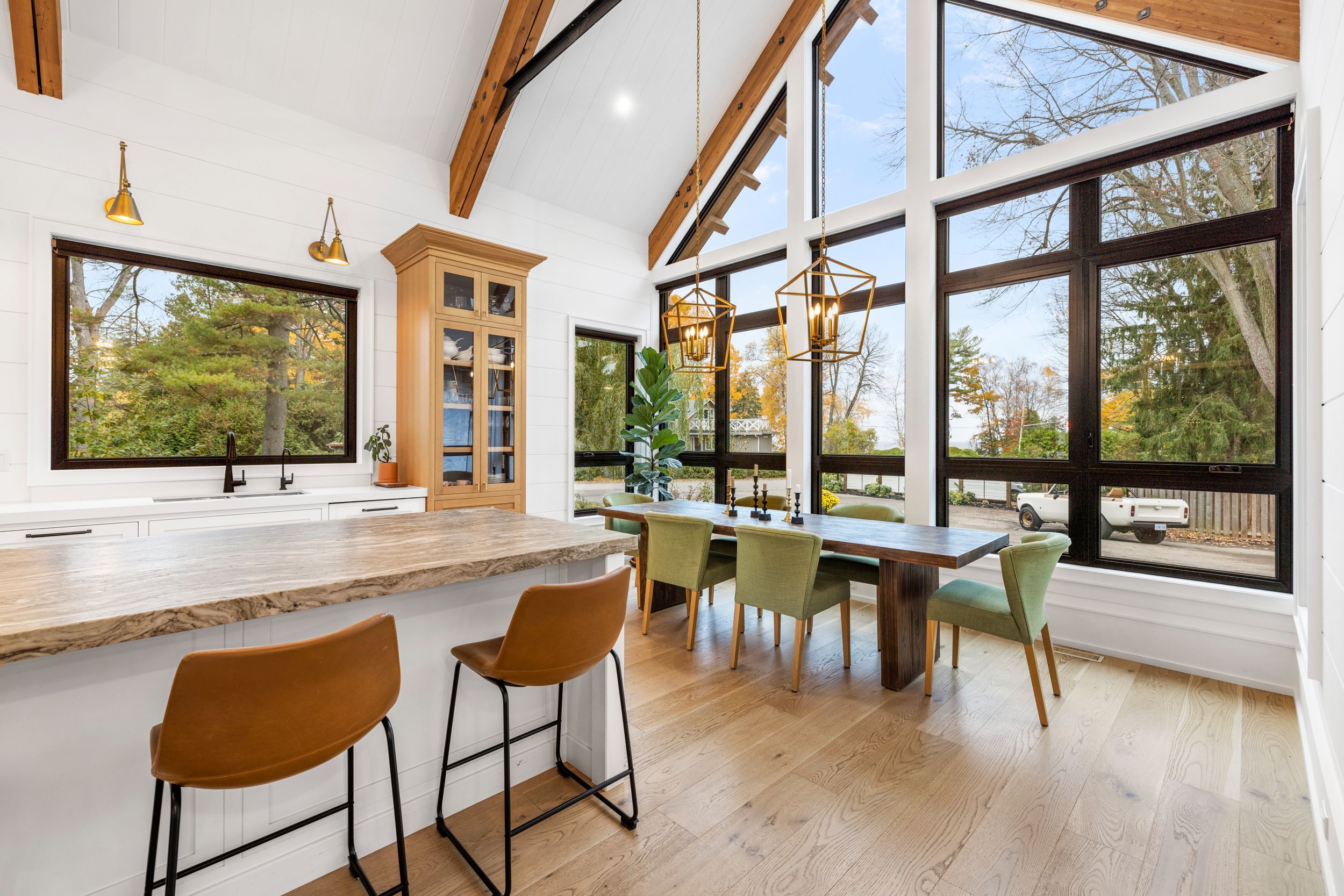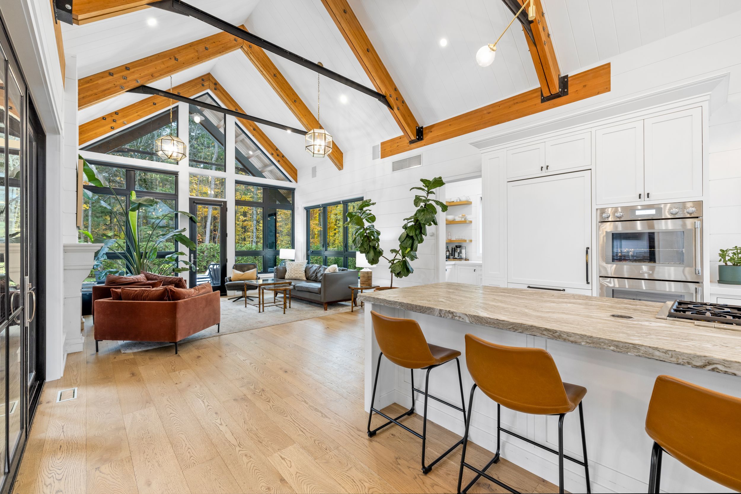 • Bright interior with impressive 20 ft vaulted ceilings and large windows.