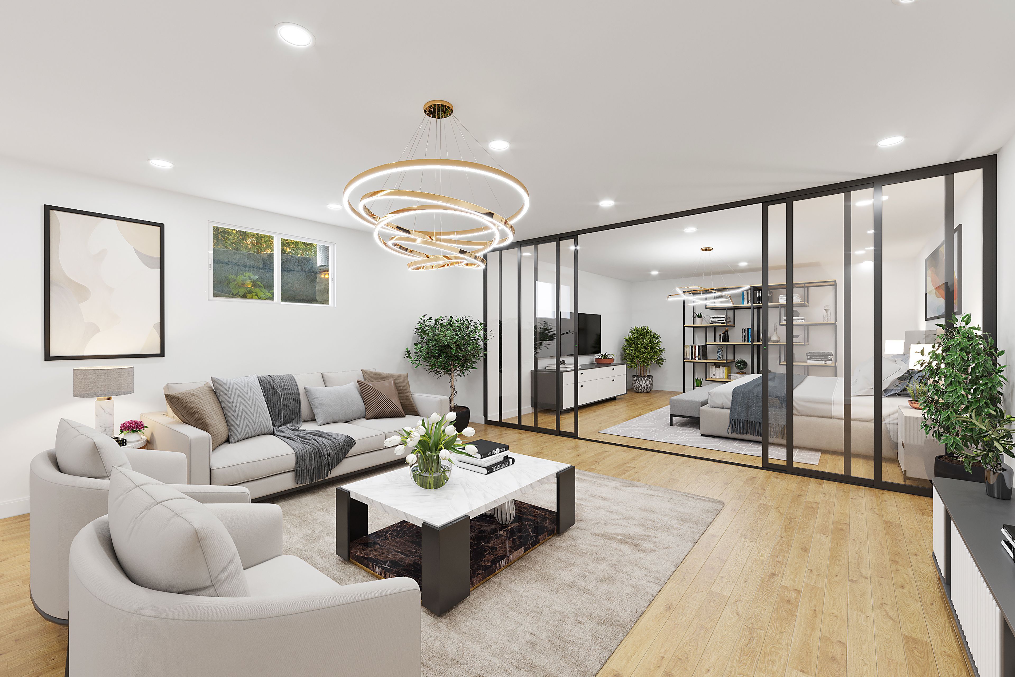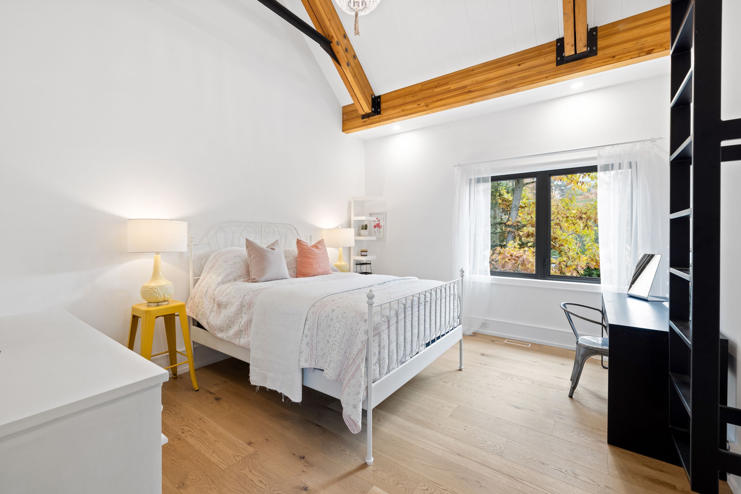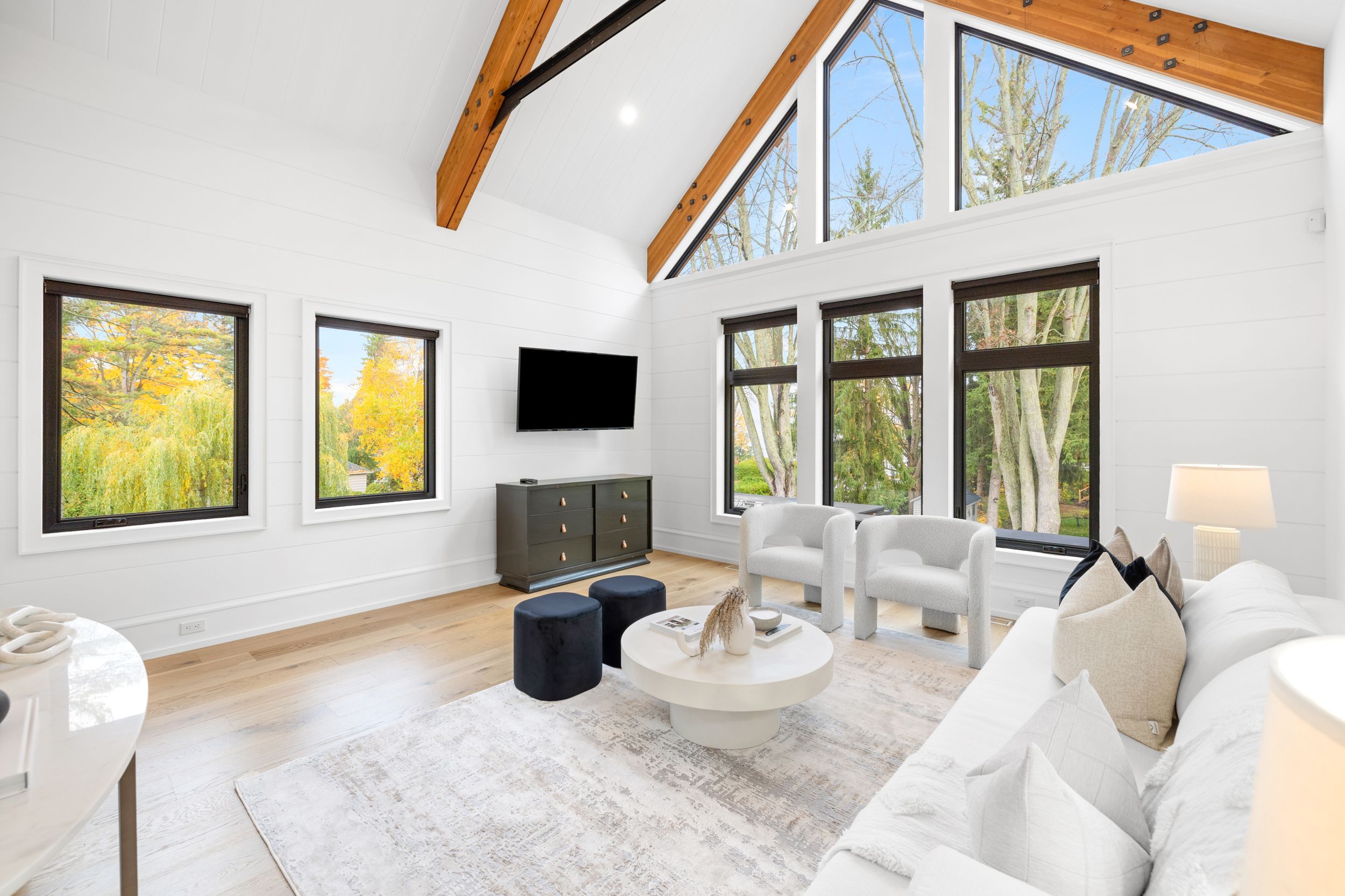 • Bright interior with impressive 20 ft vaulted ceilings and large windows.