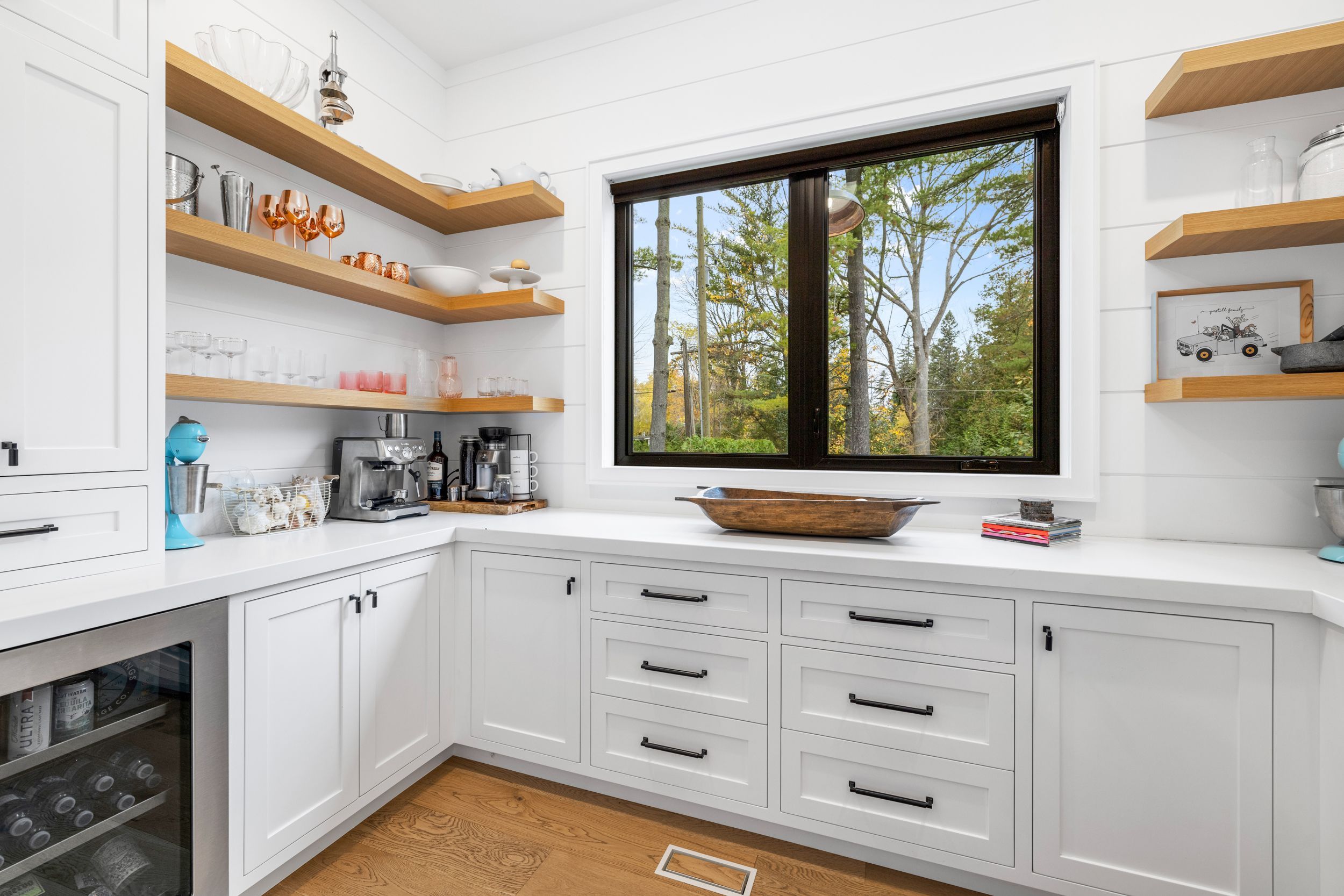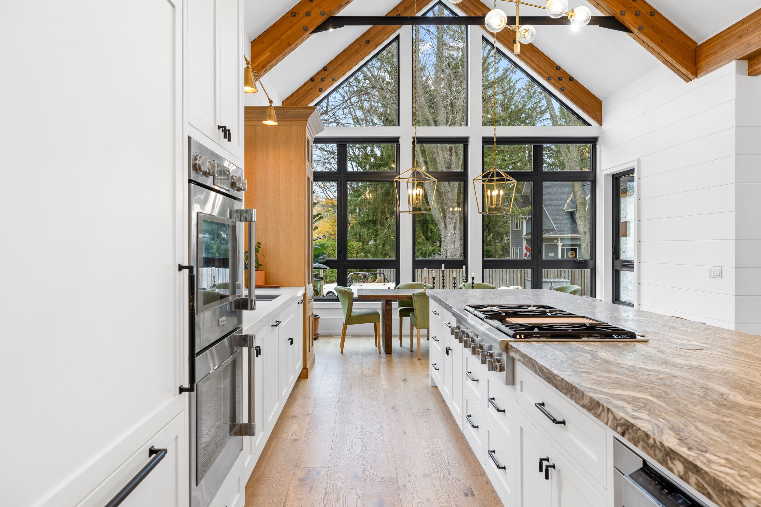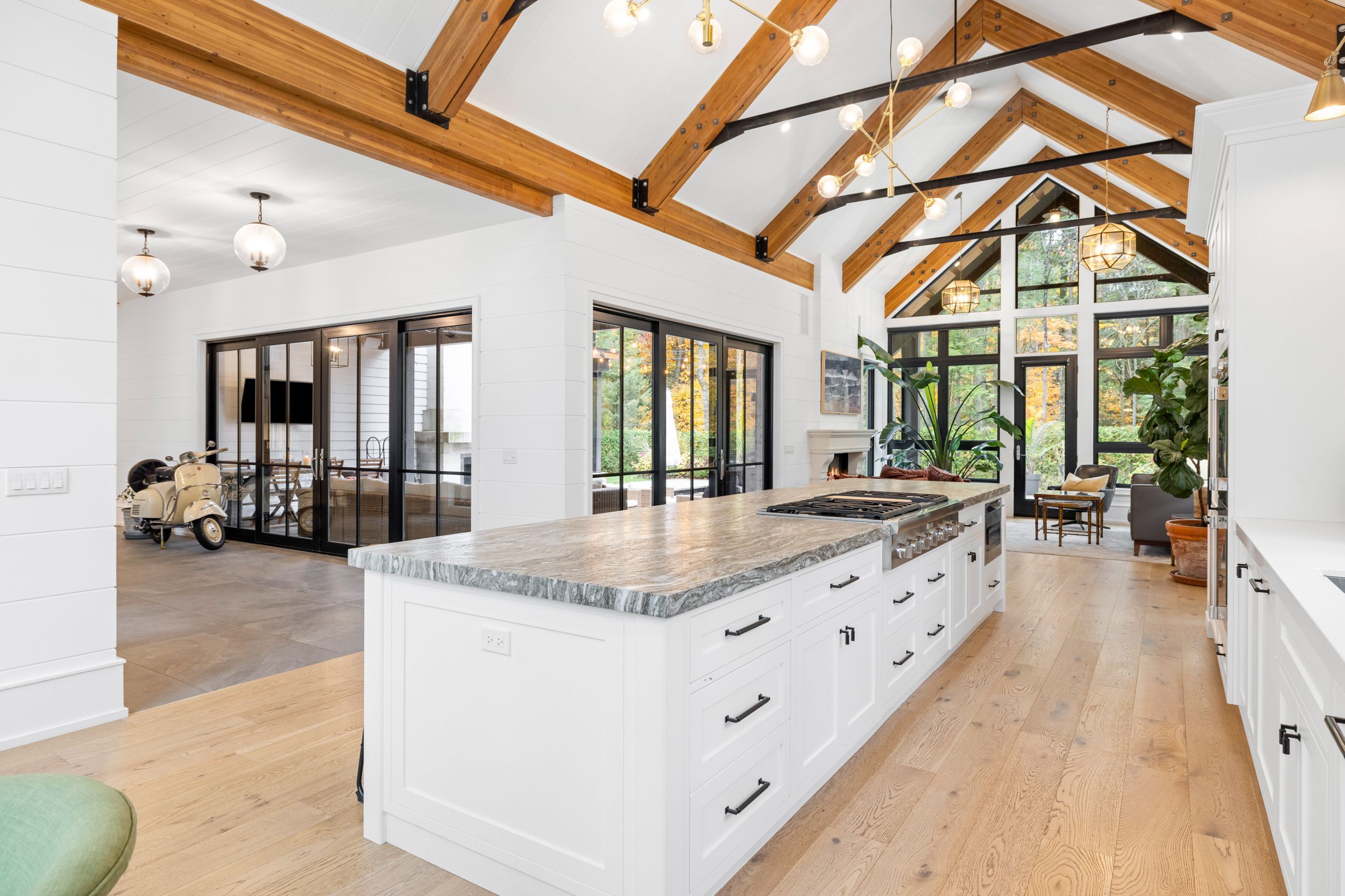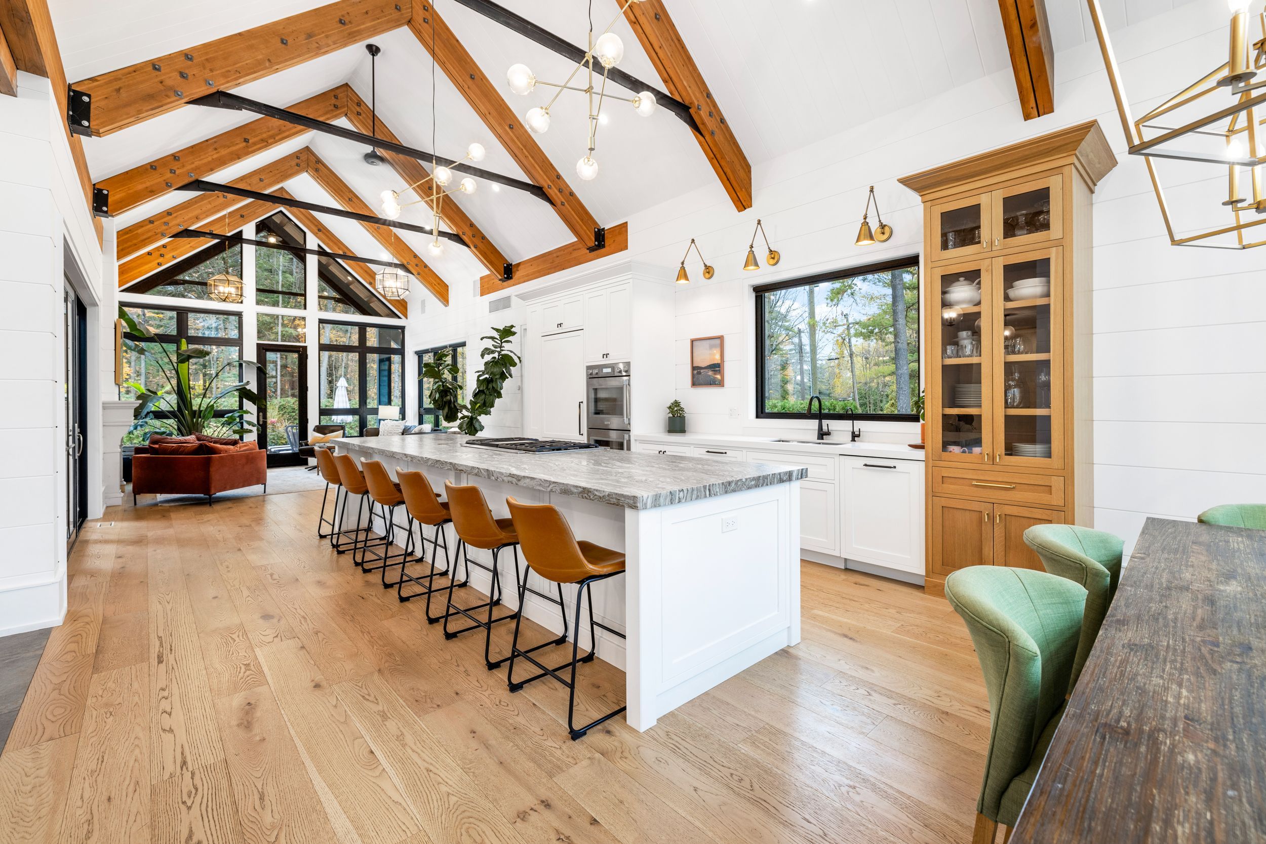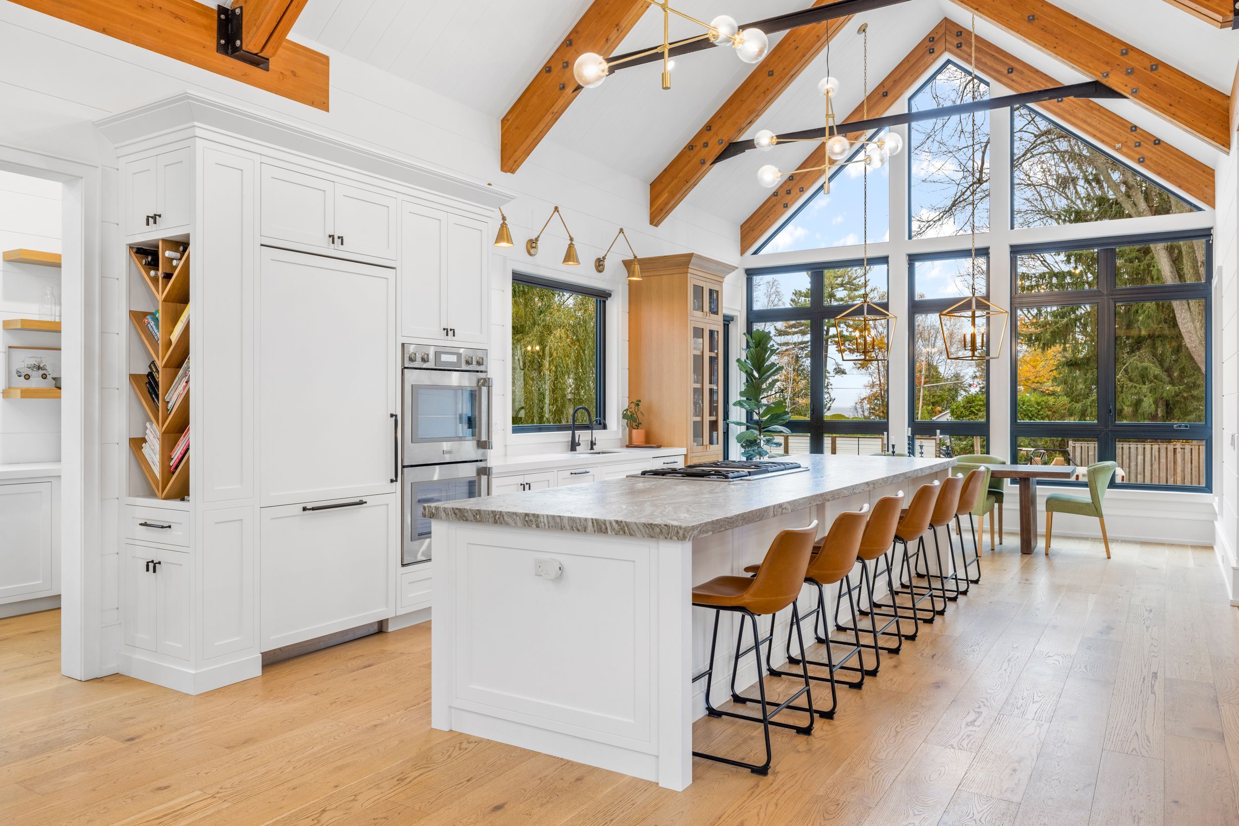 • Spacious chef's kitchen with a 16 ft island and lake views.