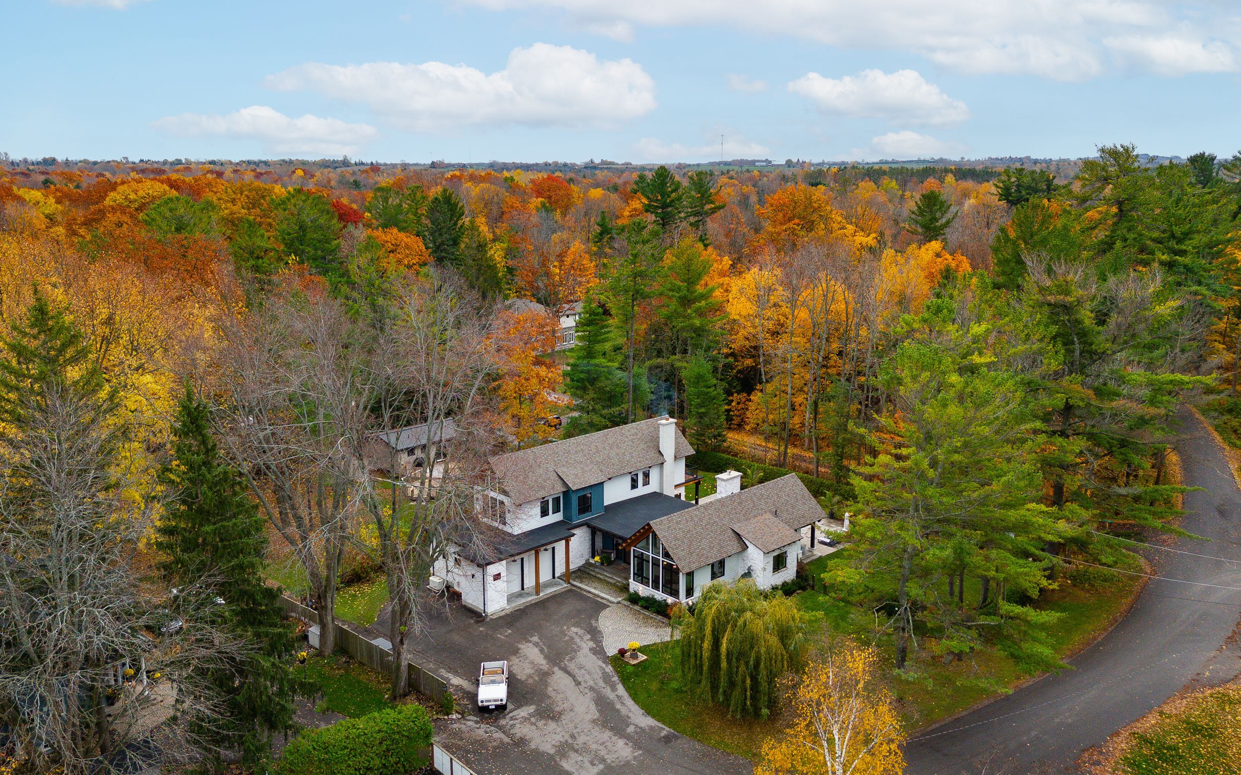 • Unique two-storey home on a large lot surrounded by mature trees.
