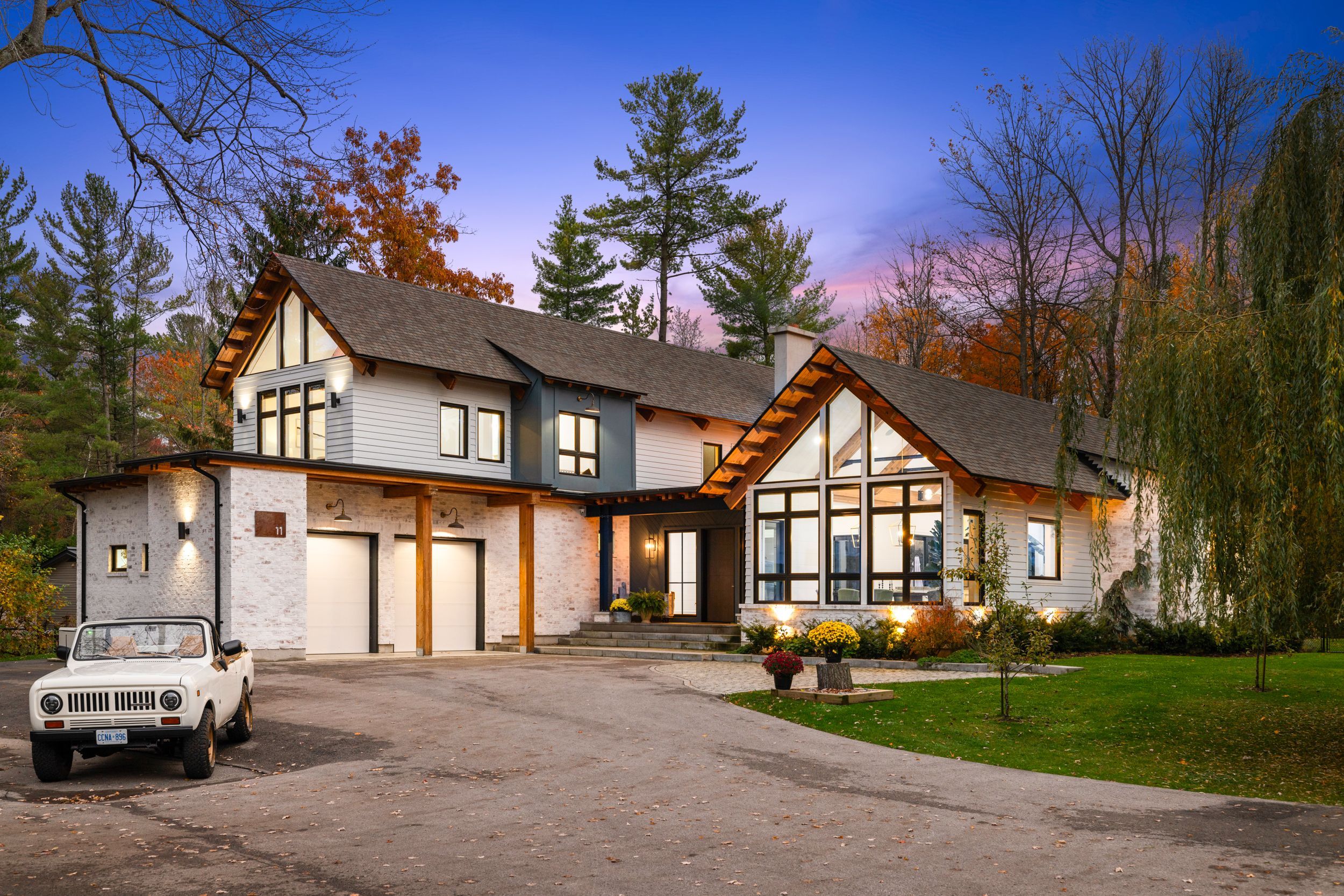 11 sibbald crescent in serene sutton west,on is set on a rare acre lot with mature trees, this architecturally distinct two storey home blends modern design with natural beauty. A grand foyer opens to a light filled interior with 20 ft vaulted ceilings, douglas fir beams, hardwood floors, and dramatic floor to ceiling windows. The living room features a statement fireplace and sleek sliding doors to outdoor living. The chef's kitchen offers a 16 ft island, quartz counters, stainless steel appliances, and views of the lake. Offering 3+1 beds and 4 baths, including a private ground level primary suite with walkout and spa like 5 piece ensuite. Lower level with heated floors, see renderings, to be complete by seller at a cost to be negotiated - la has cost breakdown. Outdoor entertaining with patio, fireplace, and modern in ground pool. Covered, powered boathouse slip available for lease nearby. Fronting on the famous briar's golf club & with private beach access. 1 hr from toronto.