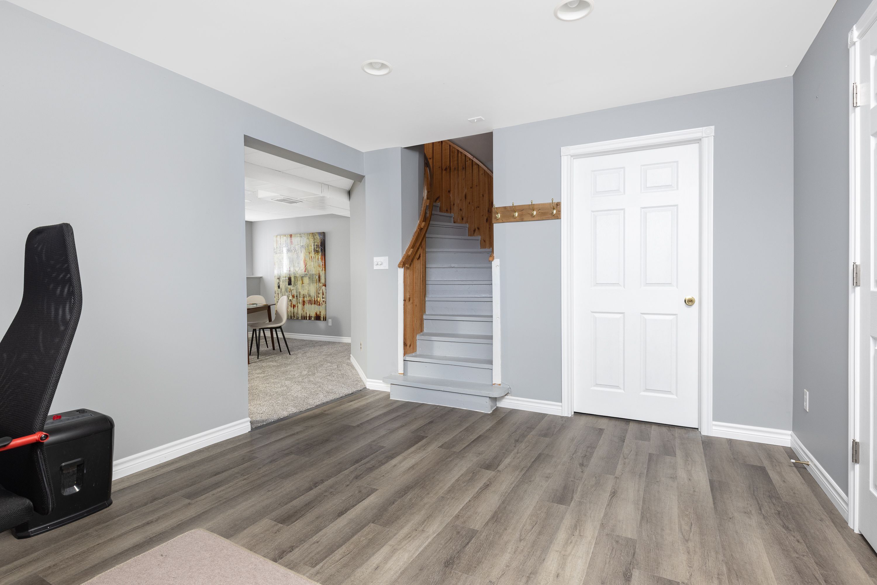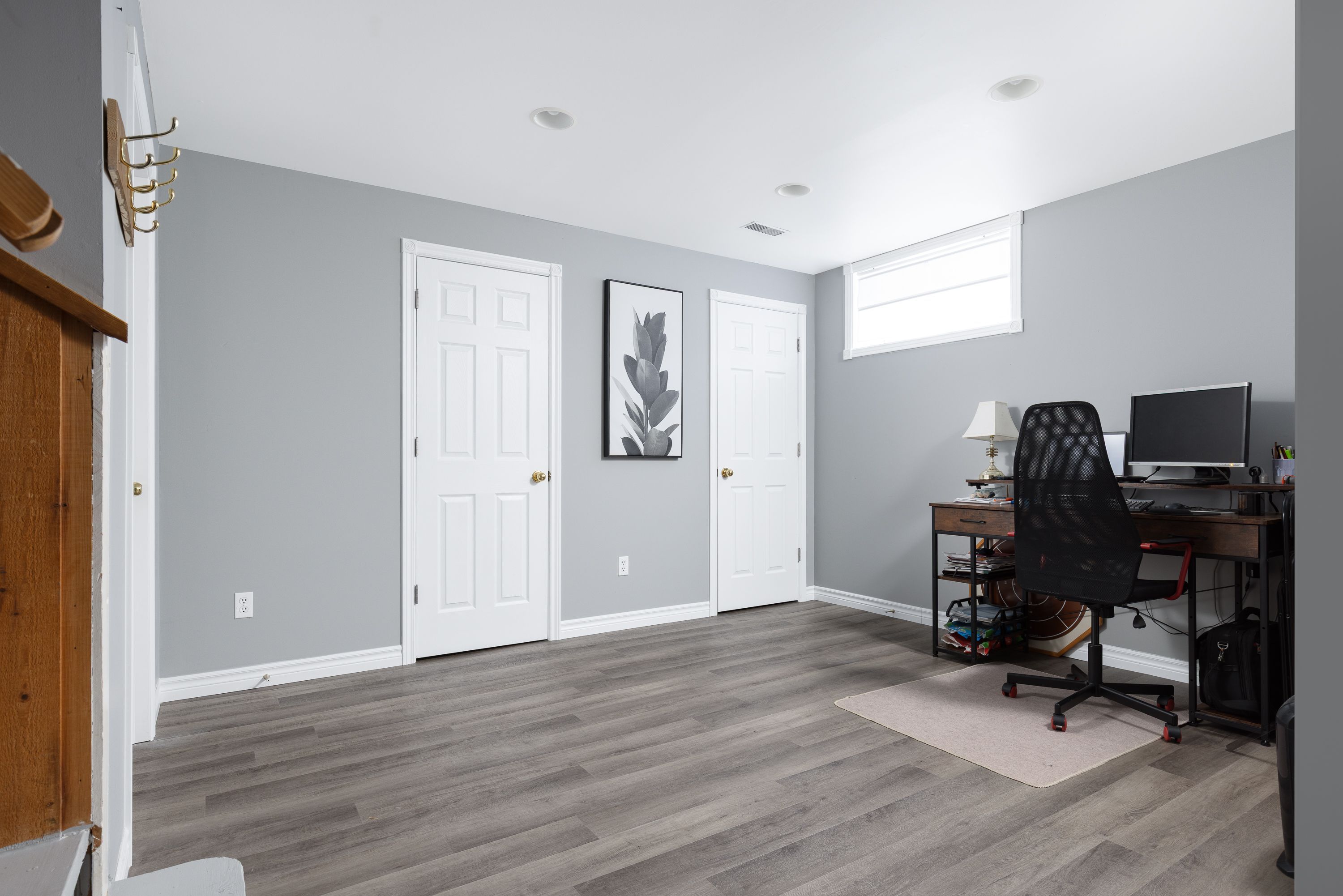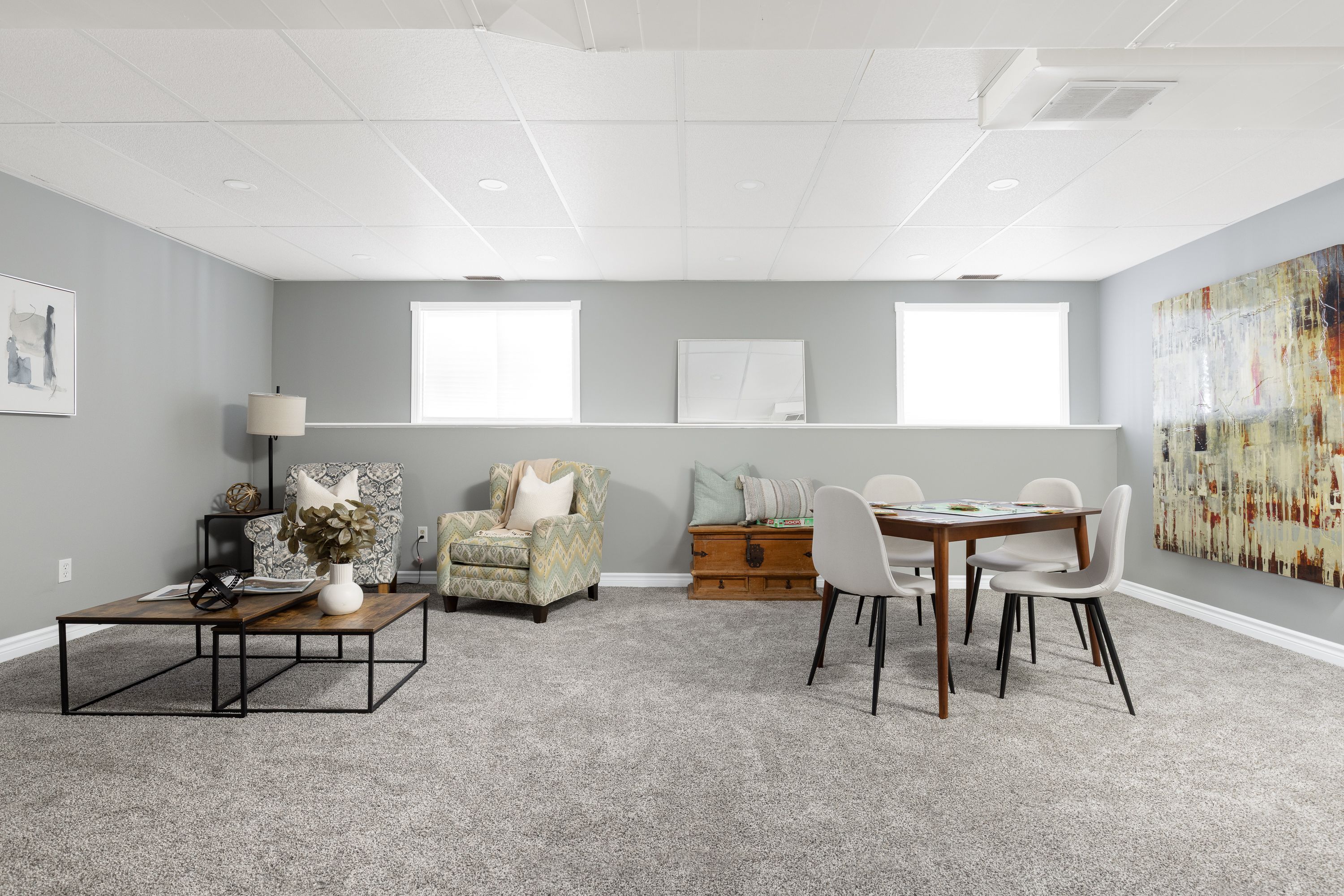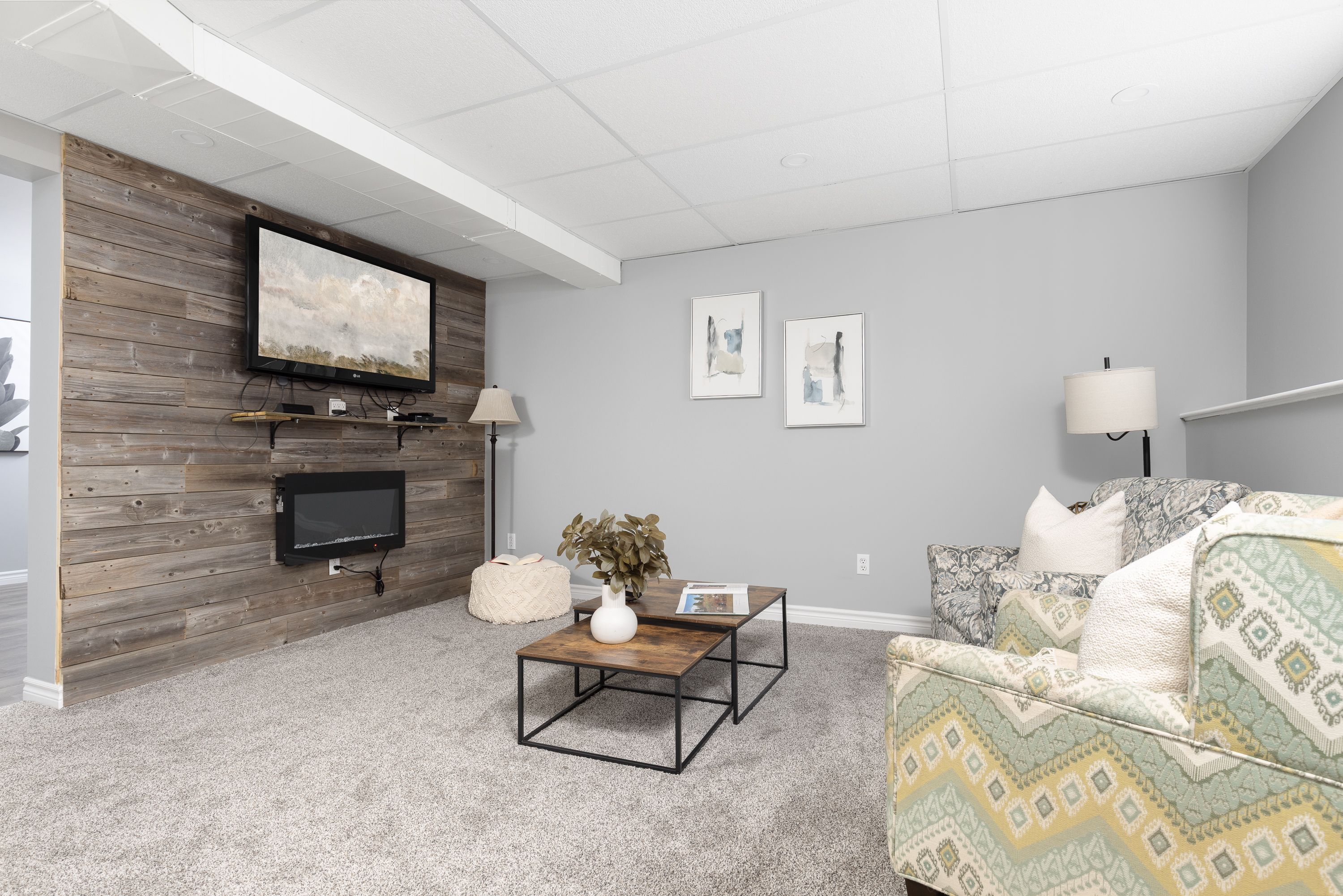 • Flexible lower level can adapt for various uses like movie nights or home gym.