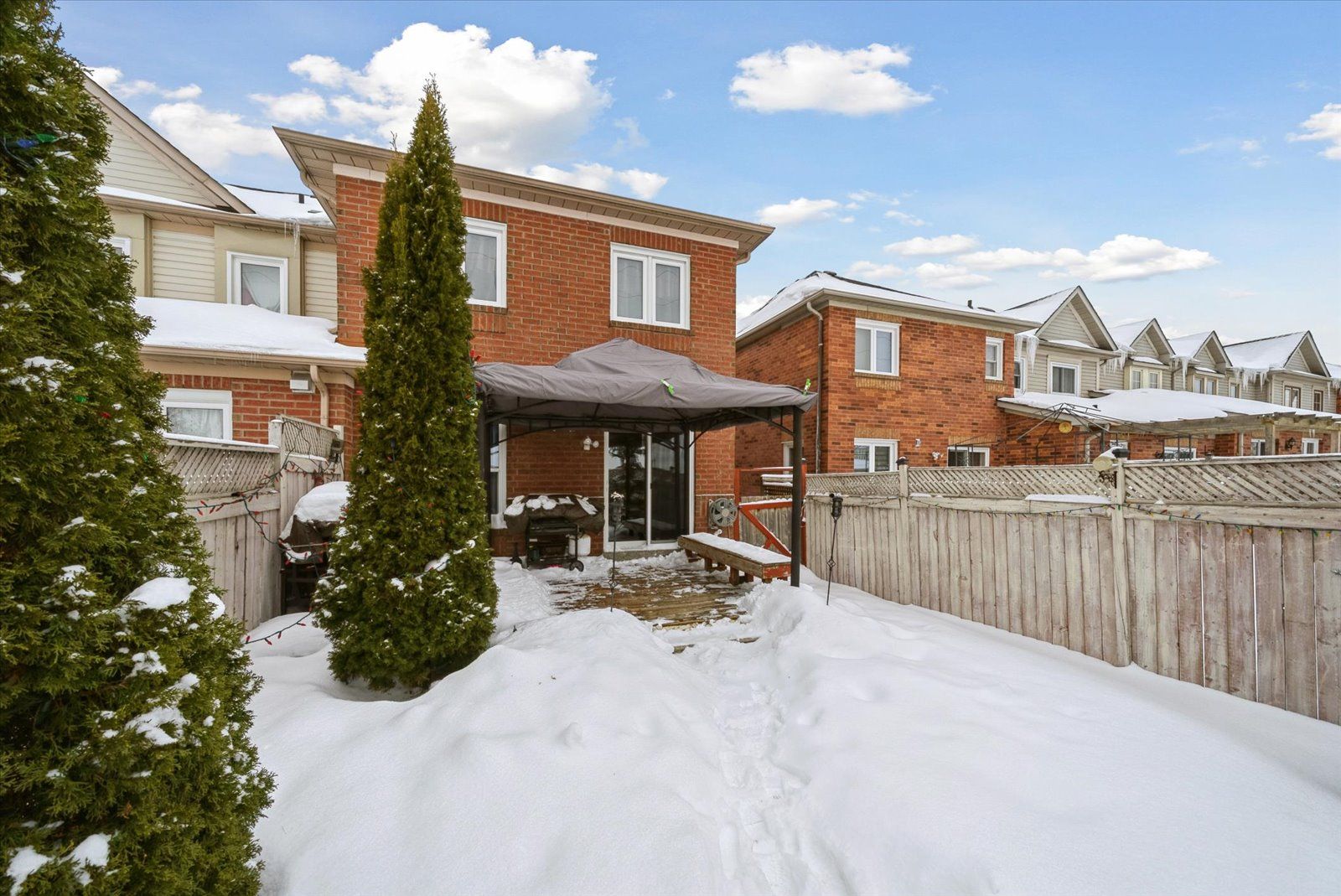 Offers anytime! Your search ends here at 11 snedden ave! A spacious 3-bed, 3-bath end-unit home offering privacy rarely found in townhomes: no neighbours in front or behind! This former model home is a *no-smoking home* meticulously maintained by its original owner, boasting extra-large principal rooms and a thoughtful, functional layout made for first time buyers, growing families and down-sizers. Enjoy peace of mind with updated and well maintained major home systems: roof, windows (2015), furnace (2022), a/c, and water tank are all in excellent working order. New master bath vanity/counter/sink (nov 2025). The spacious kitchen features extensive storage and a breakfast bar, opening seamlessly into the open-concept living/dining area, with a walk-out to the fully fenced backyard. This end-unit home features additional windows, offering the feel of a detached home, and welcomes plenty of natural light with eastern and western exposure. Picture yourself stepping outside to your private oasis with a pergola-covered deck - ideal for morning coffee with the birds, evening bbqs with the family, or simply relaxing with the ultimate privacy. The framed unfinished basement offers room for your tools/workshop, or finish to suit your needs. The extended garage is a rare feature, fitting a full-size suv w/ plenty of shelving for snow tires, lawn mower, xl garbage/recycling bins. Situated on a quiet, family-friendly street, with a quick walk to top-rated schools, daycares, amenities (sobeys, t&t, longos, shoppers drug mart, superstore, canadian tire), restaurants, gyms (goodlife, la fitness, family leisure complex), aurora seniors centre, cineplex odeon, and the aurora arboretum which offers stunning walking trails, beach volleyball courts, soccer pitches, and baseball diamonds. Commuting is a breeze with access to go transit, bus routes, and highway 404. Move-in ready, and full of potential - don't miss your chance to own one of the most desirable units in the neighbourhood!