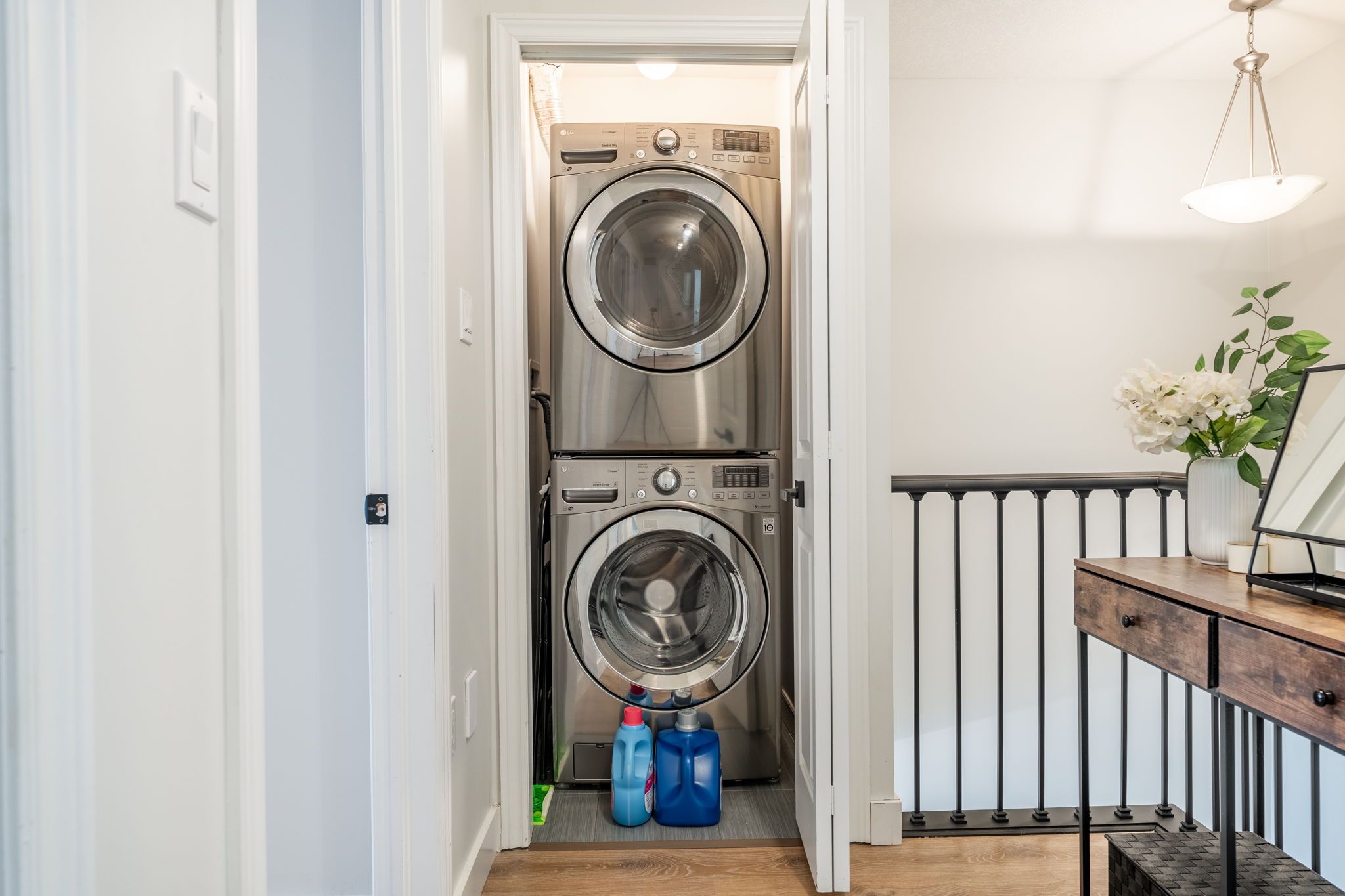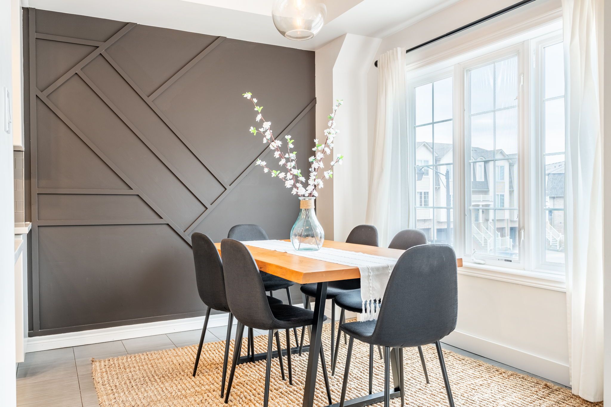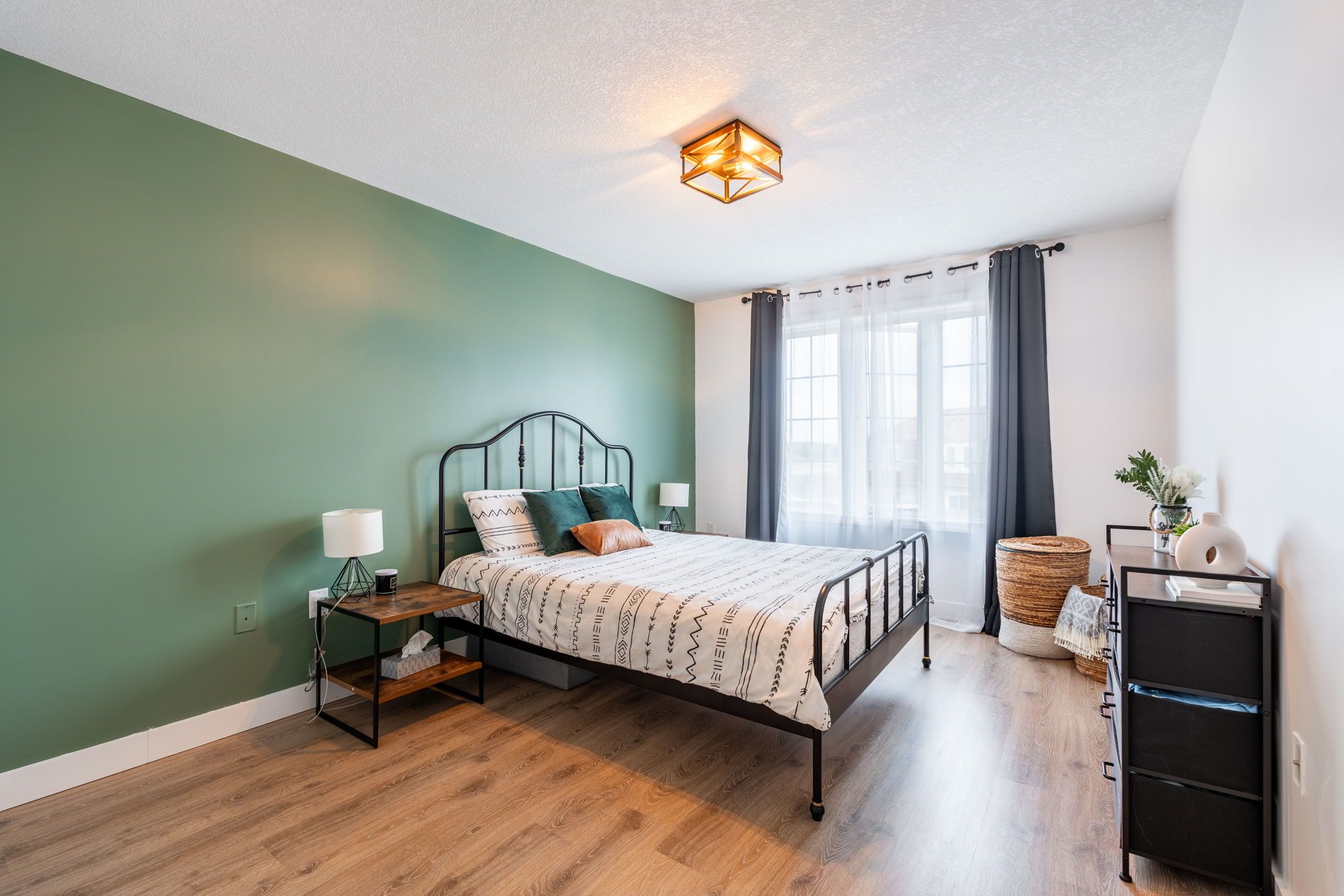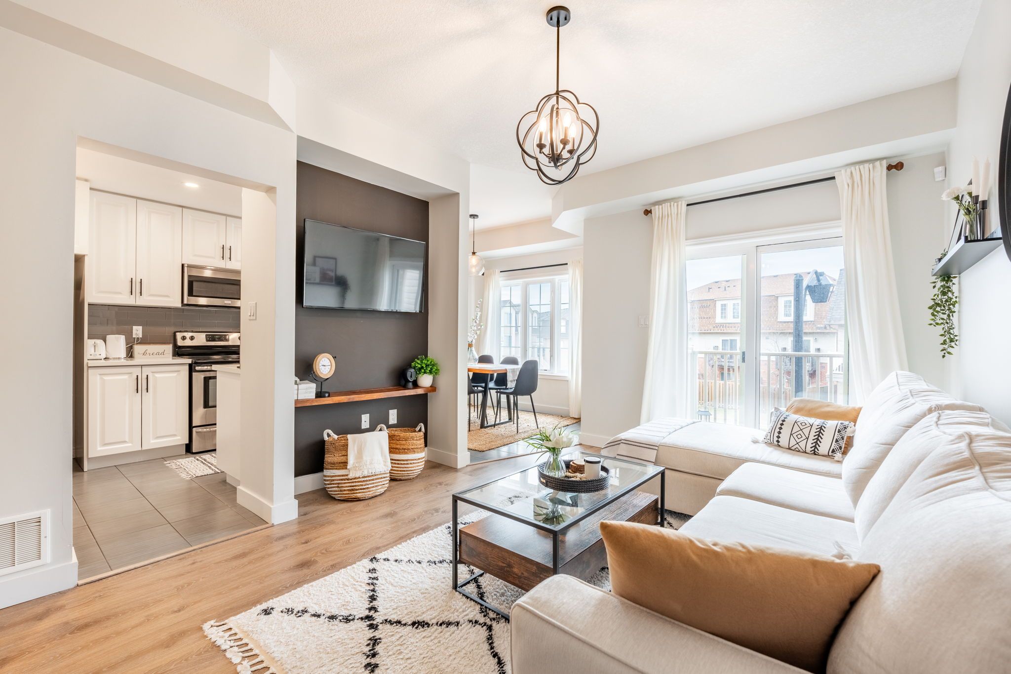 Feel immediately at home. This thoughtfully designed entryway sets the tone with its charcoal accent wall and bright natural light streaming through flanking windows. Cool-toned tile flooring flows underfoot, while a built-in nook offers the perfect spot to drop your keys and settle in. Every detail speaks to the care and attention invested in this stoney creek gem. Laminate floors stretch across this sun-filled living space, creating an open canvas for your daily life. The built-in media niche with its contrasting accent wall becomes a natural gathering point, while sculptural pendant lighting adds character overhead. Balcony access invites fresh air and natural light to flow freely, making this the kind of space where you'll actually want to spend your evenings unwinding. The dining room transforms ordinary meals into occasions worth savouring. The accent wall with geometric panelling creates an intimate backdrop, while expansive windows frame neighbourhood views and flood the space with daylight. Positioned perfectly between kitchen and windows, this spot becomes the heart of your home-where morning coffee tastes better and dinner conversations last longer. Stunning kitchen delivers everything you need without the fuss. Crisp white shaker cabinets pair with stainless steel appliances and gleaming quartz countertops, while grey subway tile backsplash adds subtle sophistication. Modern black hardware and thoughtful recessed lighting make meal prep a pleasure, and the open connection to your dining area means you're never cooking alone. Your primary bedroom wraps you in calm with its soothing sage green accent wall and warm laminate underfoot. The walk-in closet keeps everything organized and out of sight, while layered window treatments let you control the light exactly how you want it. Clean, functional, and thoughtfully updated bathrooms make daily routines feel less like chores. This one stands out from the rest - not to be overlooked!