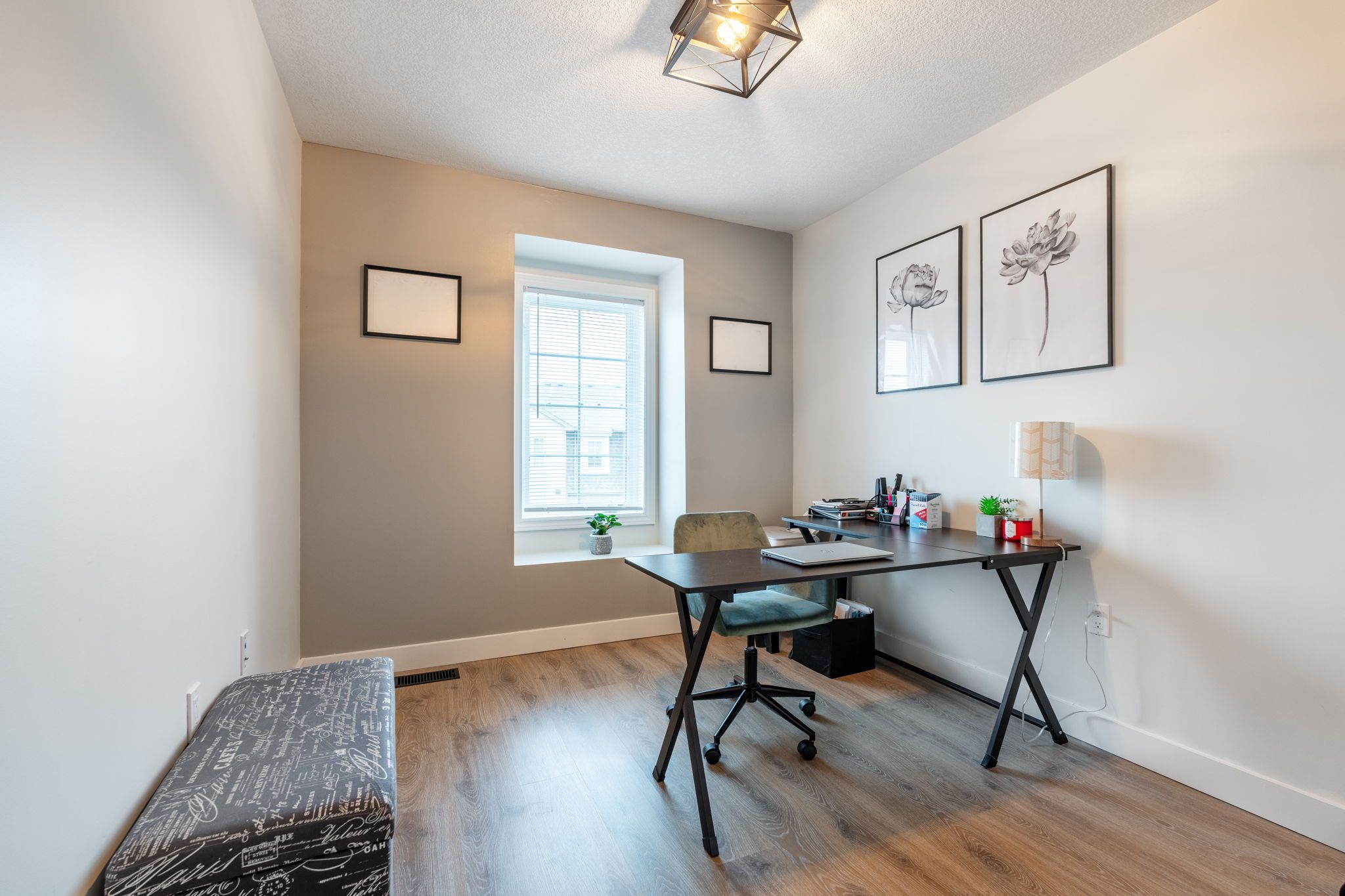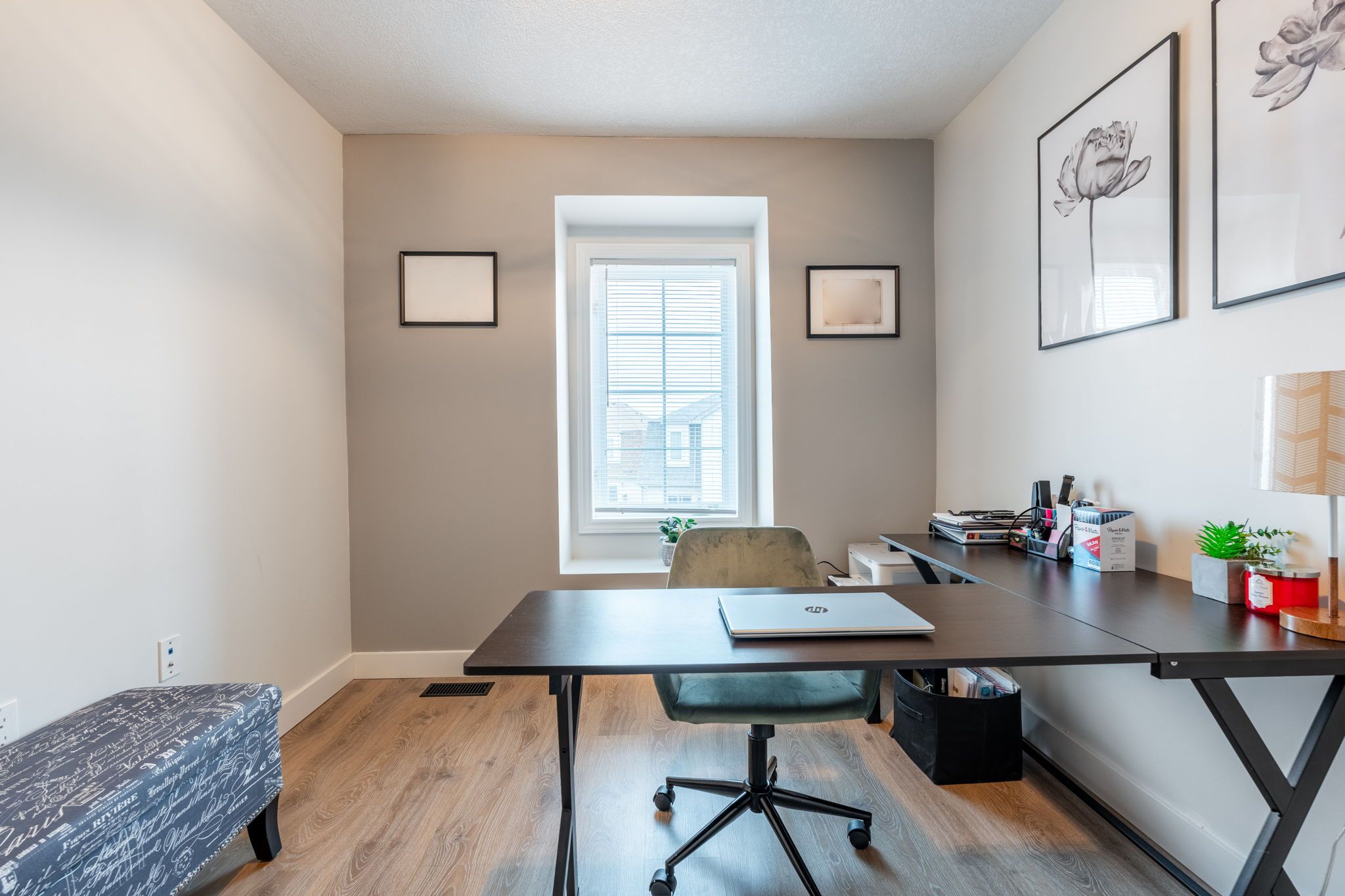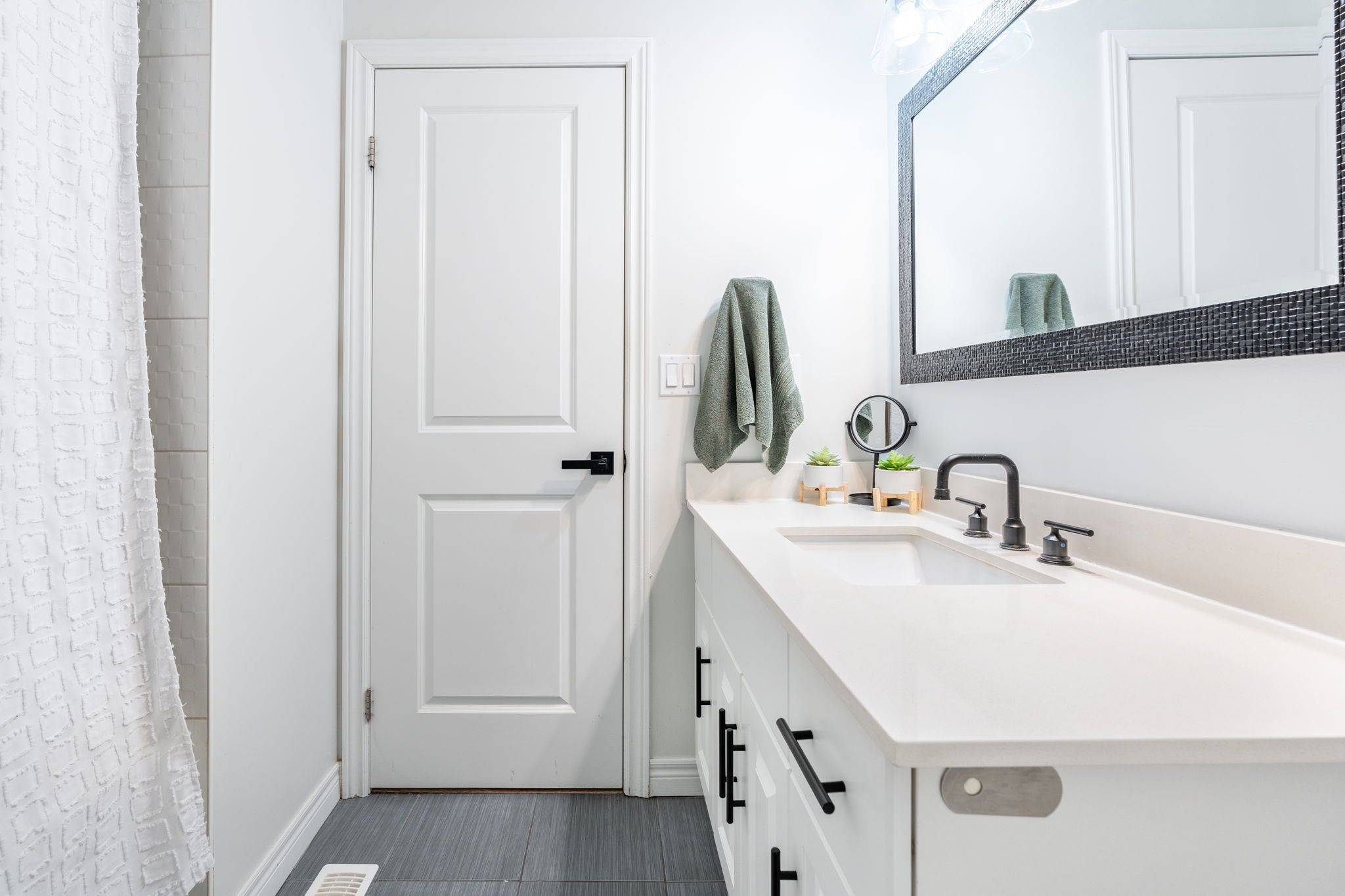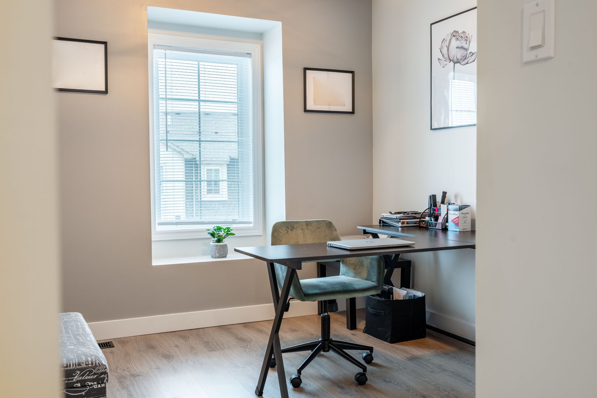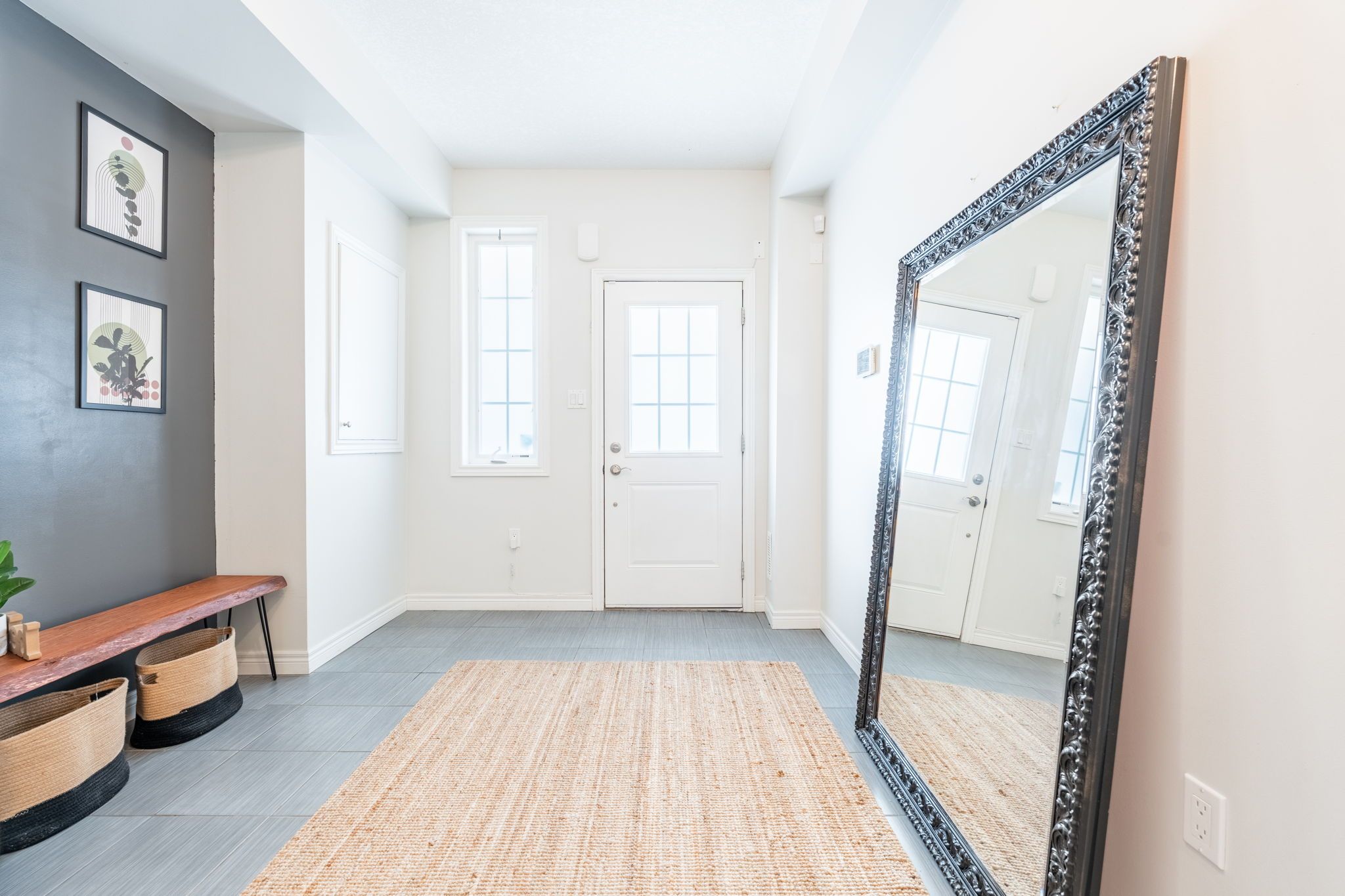 Feel immediately at home. This thoughtfully designed entryway sets the tone with its charcoal accent wall and bright natural light streaming through flanking windows. Cool-toned tile flooring flows underfoot, while a built-in nook offers the perfect spot to drop your keys and settle in. Every detail speaks to the care and attention invested in this stoney creek gem. Laminate floors stretch across this sun-filled living space, creating an open canvas for your daily life. The built-in media niche with its contrasting accent wall becomes a natural gathering point, while sculptural pendant lighting adds character overhead. Balcony access invites fresh air and natural light to flow freely, making this the kind of space where you'll actually want to spend your evenings unwinding. The dining room transforms ordinary meals into occasions worth savouring. The accent wall with geometric panelling creates an intimate backdrop, while expansive windows frame neighbourhood views and flood the space with daylight. Positioned perfectly between kitchen and windows, this spot becomes the heart of your home-where morning coffee tastes better and dinner conversations last longer. Stunning kitchen delivers everything you need without the fuss. Crisp white shaker cabinets pair with stainless steel appliances and gleaming quartz countertops, while grey subway tile backsplash adds subtle sophistication. Modern black hardware and thoughtful recessed lighting make meal prep a pleasure, and the open connection to your dining area means you're never cooking alone. Your primary bedroom wraps you in calm with its soothing sage green accent wall and warm laminate underfoot. The walk-in closet keeps everything organized and out of sight, while layered window treatments let you control the light exactly how you want it. Clean, functional, and thoughtfully updated bathrooms make daily routines feel less like chores. This one stands out from the rest - not to be overlooked!