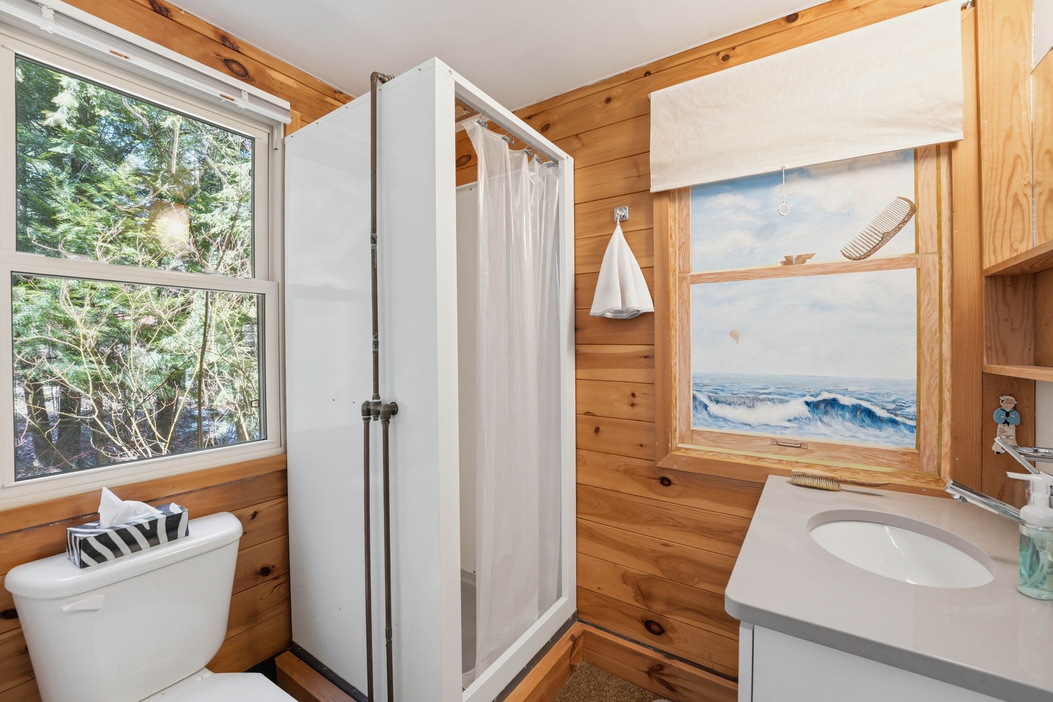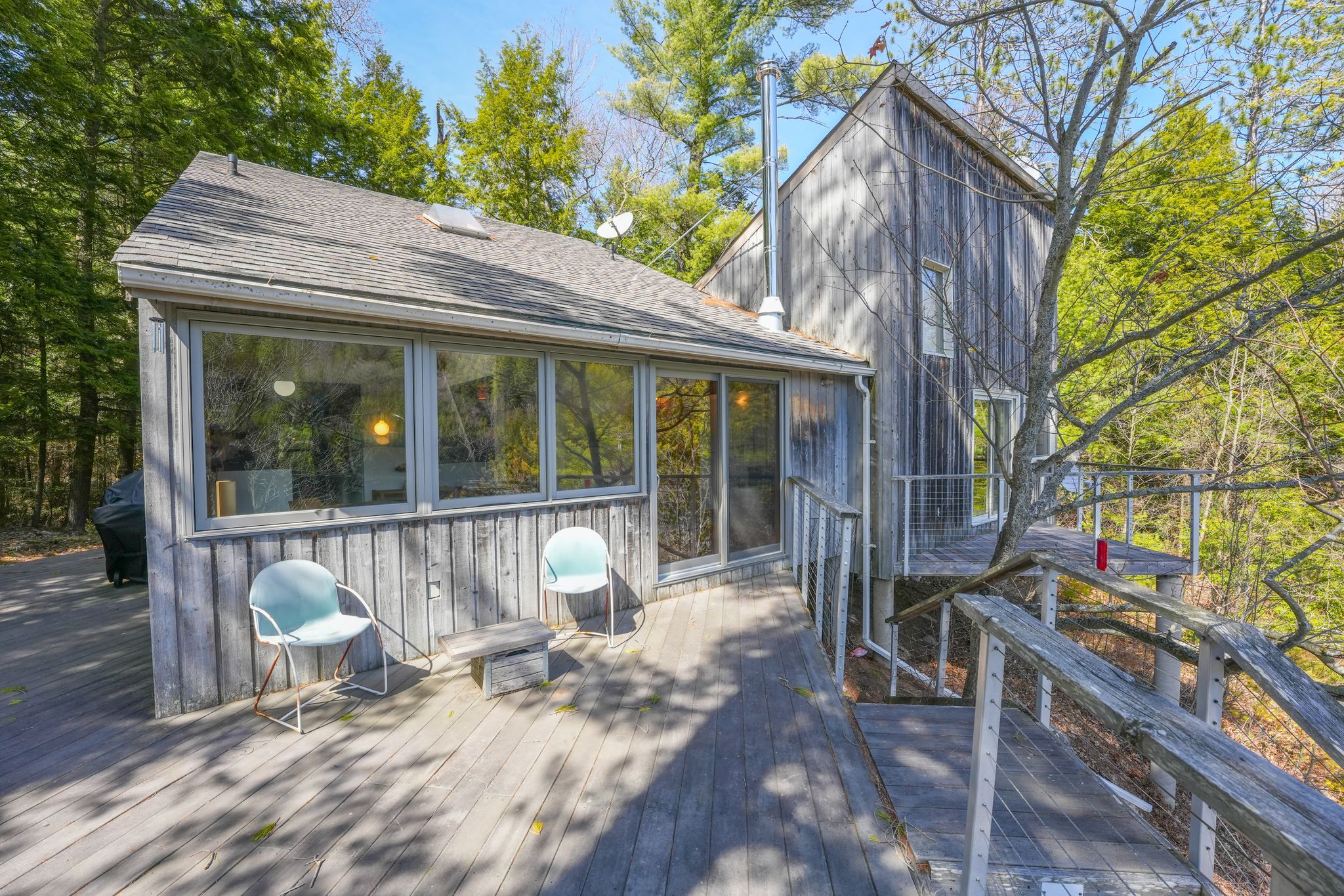 • Cottage features three bedrooms, two bathrooms, and multiple outdoor spaces to relax.