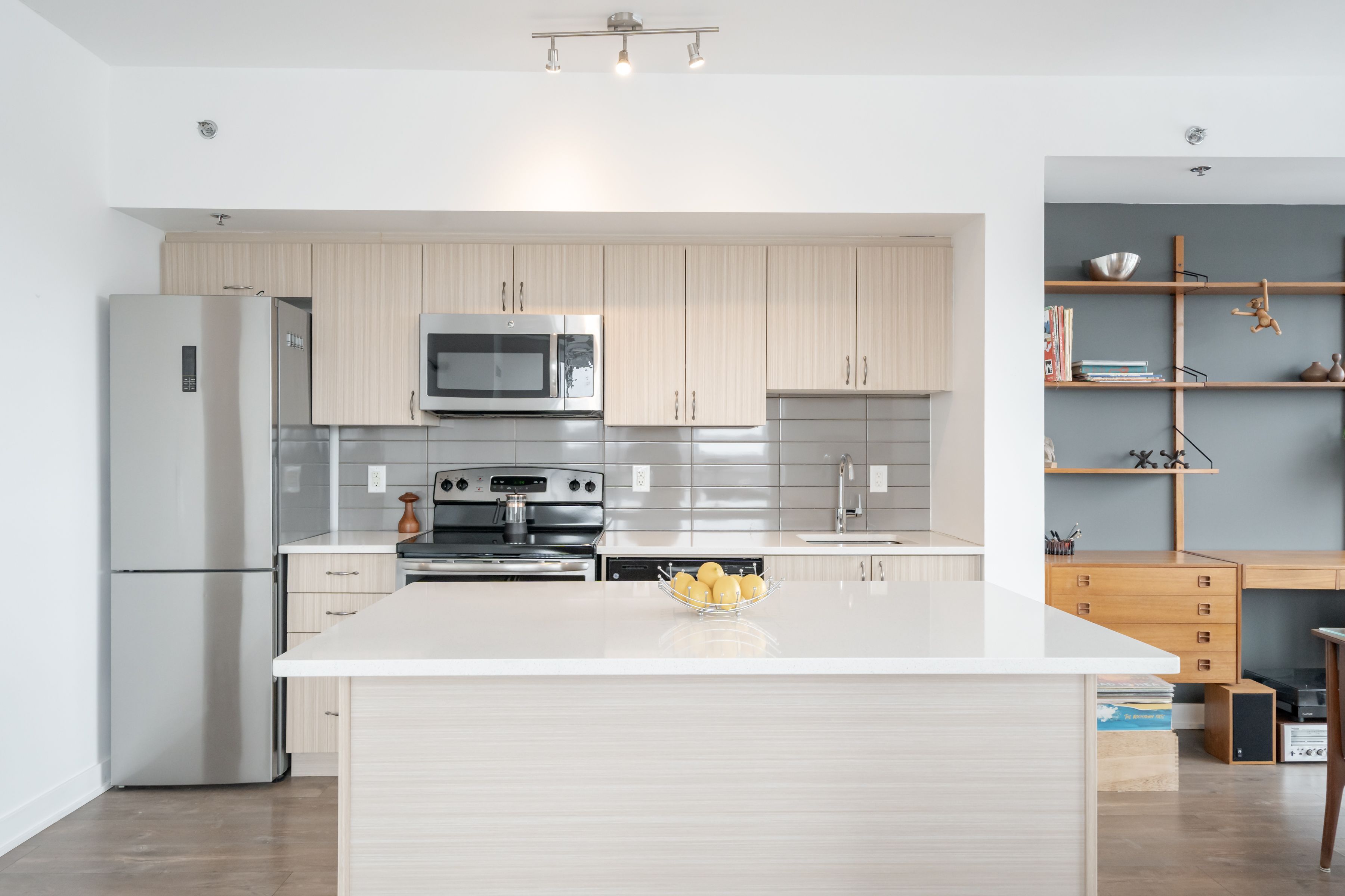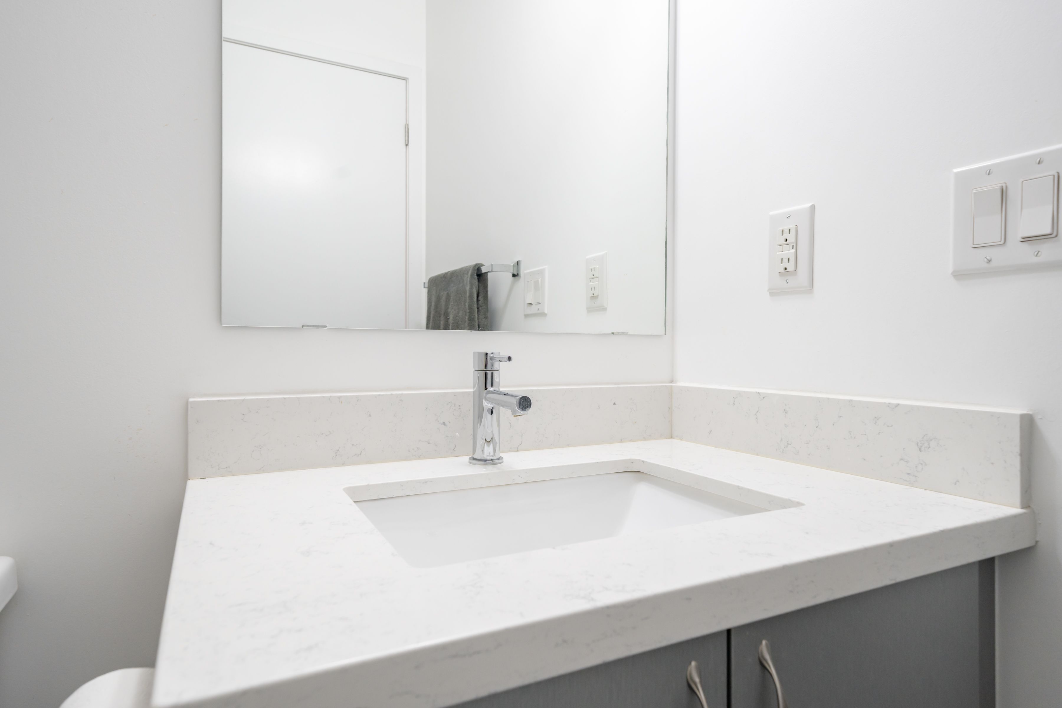 • Luxury upgrades including quartz counters and oversized kitchen island.