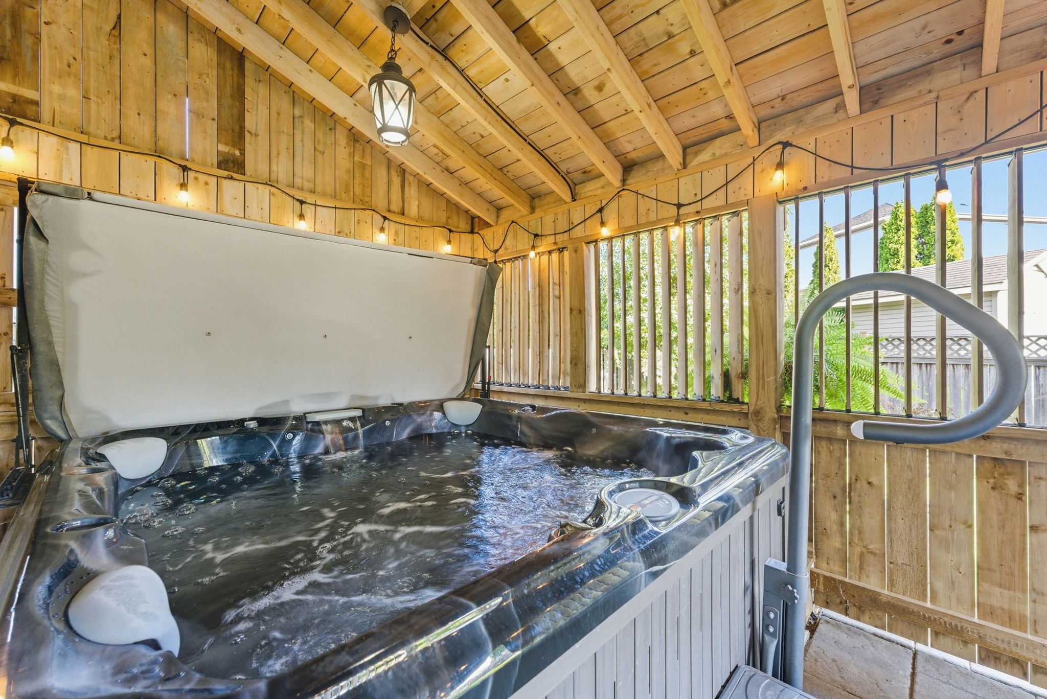 • Versatile walk-out basement with kitchenette and covered deck with hot tub.