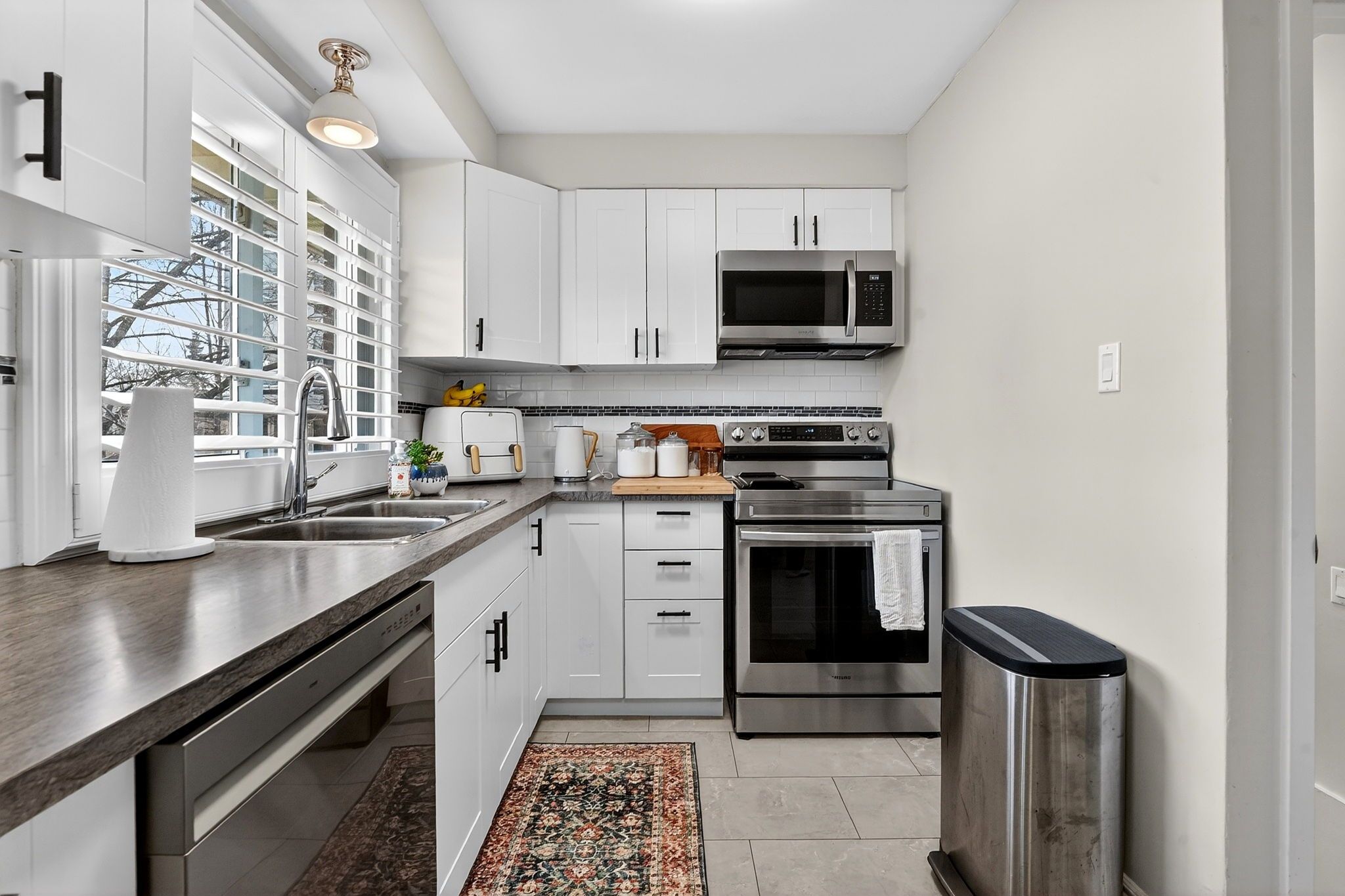 • Updated kitchen, hardwood flooring, and functional living space throughout.