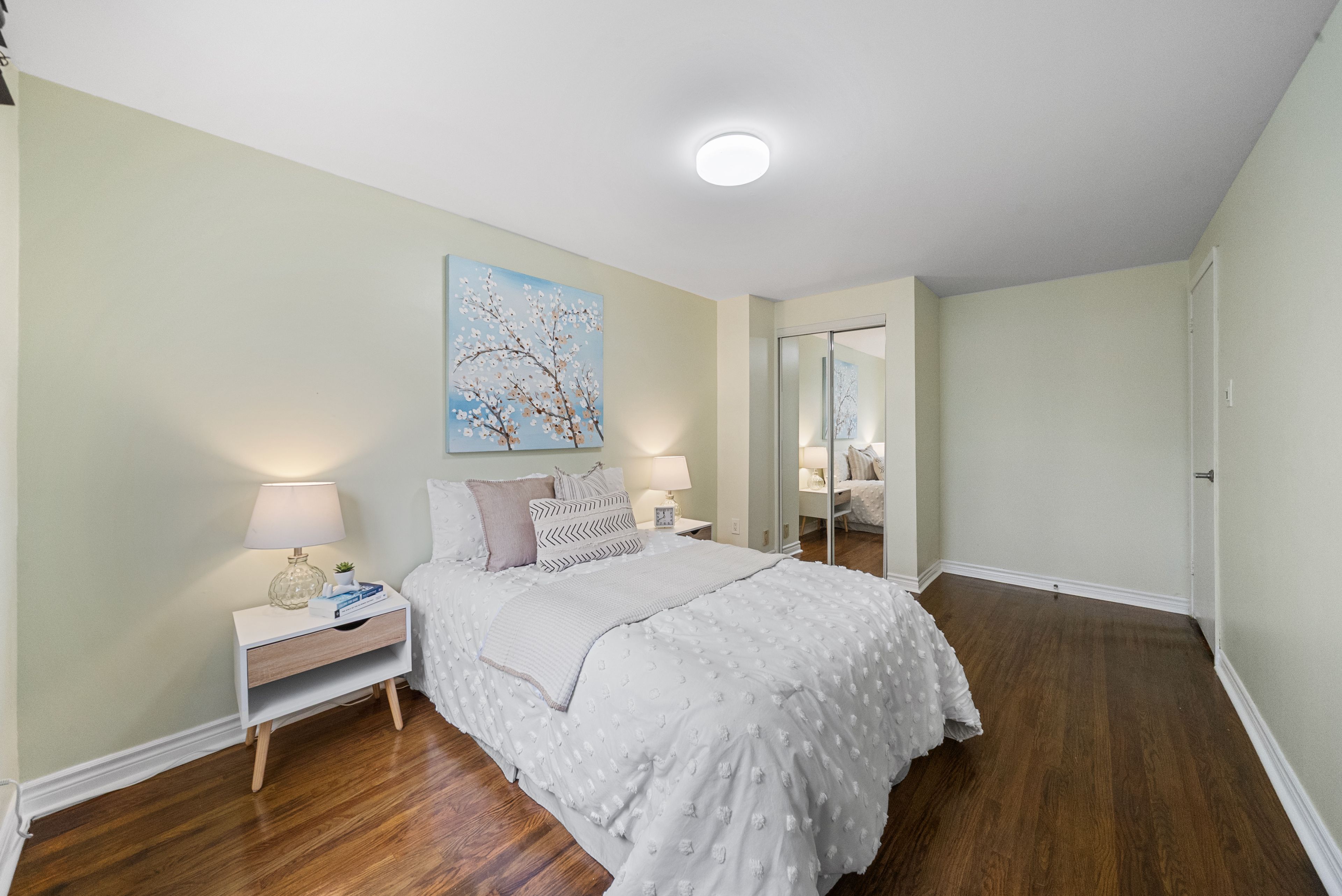 • Spacious primary bedroom with wall-to-wall closet and custom organizers.