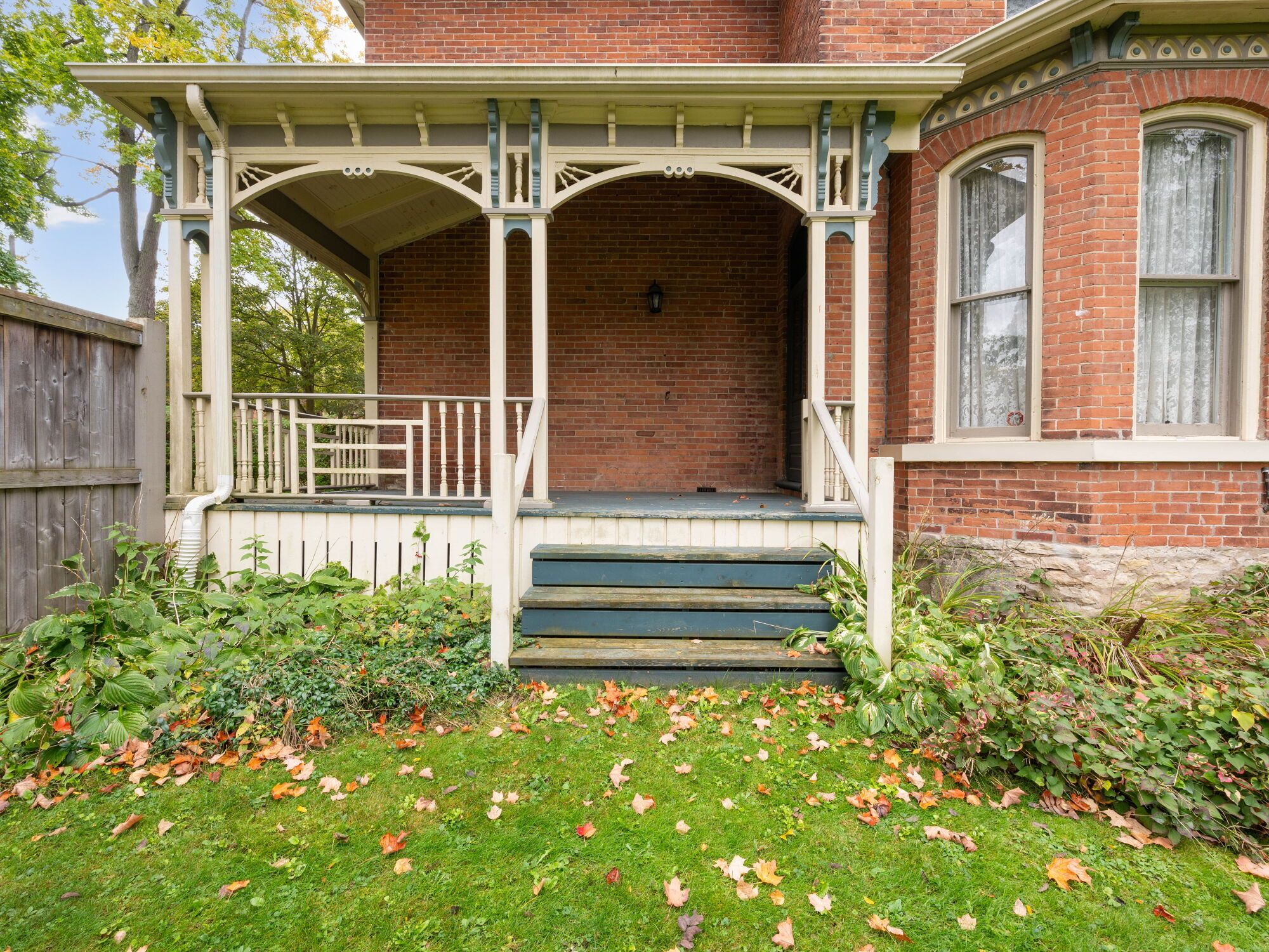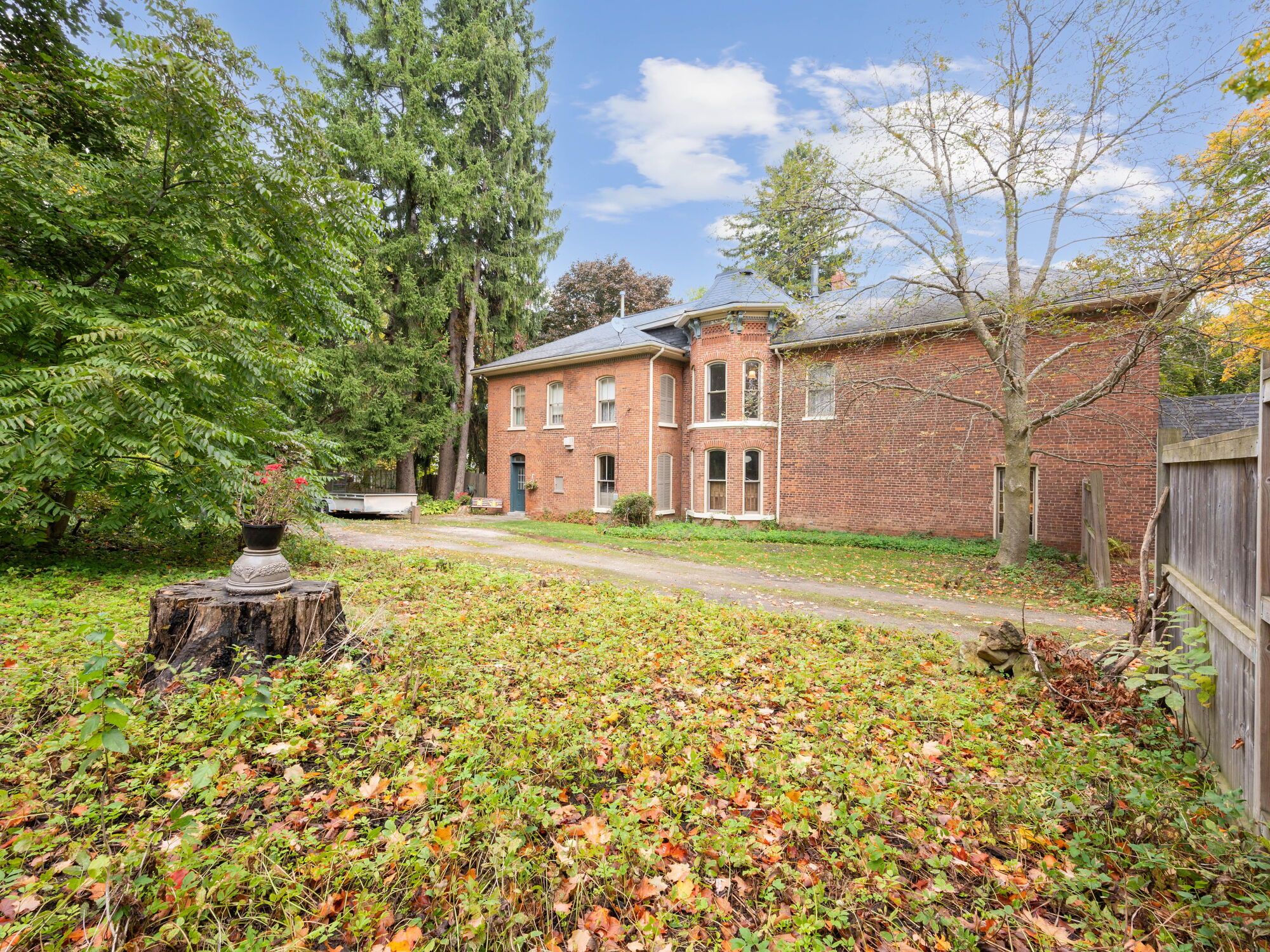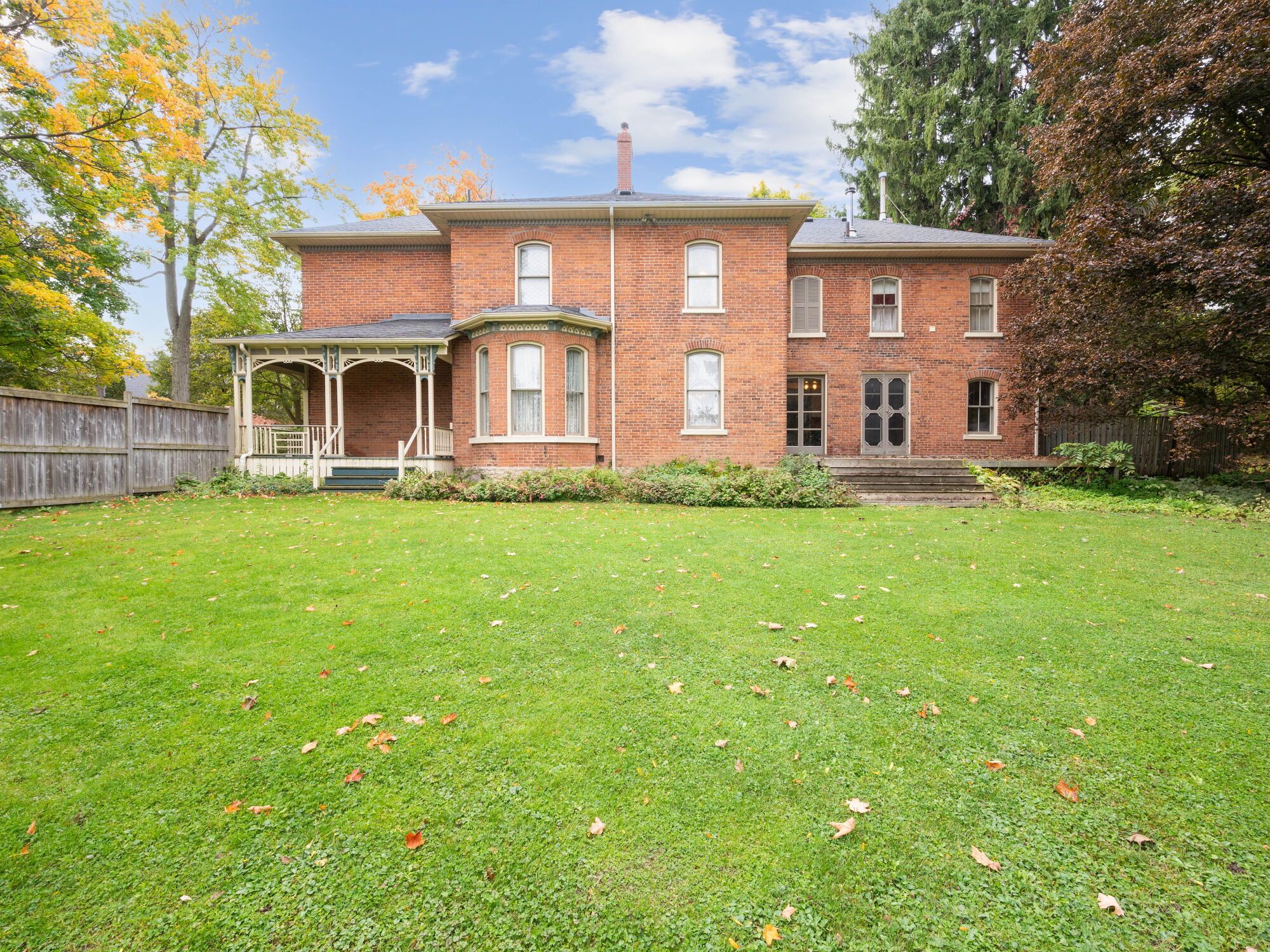 Admired for over 140 years, this sprawling & stately home is a must see. A unique property with endless possibility located in the heart of town. Timeless, quality construction & details thru out including original doors, trim, floors & staircases, spacious principal rooms & ceiling height, multiple walkouts from the main level to mature and private lot- 164 ft. X 187 ft., approximately . 70 acre with the house sited in centre of lot. Enjoy a grand foyer & front hall, dedicated library, formal living room with original fireplace and walkout to covered side porch. Enjoy entertaining in an expansive dining room with 2nd original fireplace or retreat to read a book in the cozy den. The kitchen offers lots of space for preparing meals & a large breakfast area with glass walkout door to side patio. The rear main floor laundry room offers a private 2 piece powder room and walkout to yard. The elegant front staircase leads to an open landing area and primary bedroom with walk-in closet & 3 piece ensuite bath, as well as main bath with whirlpool tub & additional bedrooms. The 2nd or rear staircase leads to a charming suite with bright & spacious living/dining room, kitchen, 4th bedroom and full bath - an ideal space for guests or extended family & can be closed off from the rest of the 2nd floor space. Outside you find lots of parking area, an enormous yard with mature trees and rear storage/driveshed. Rare opportunity for a property of this size in a downtown orangeville location.