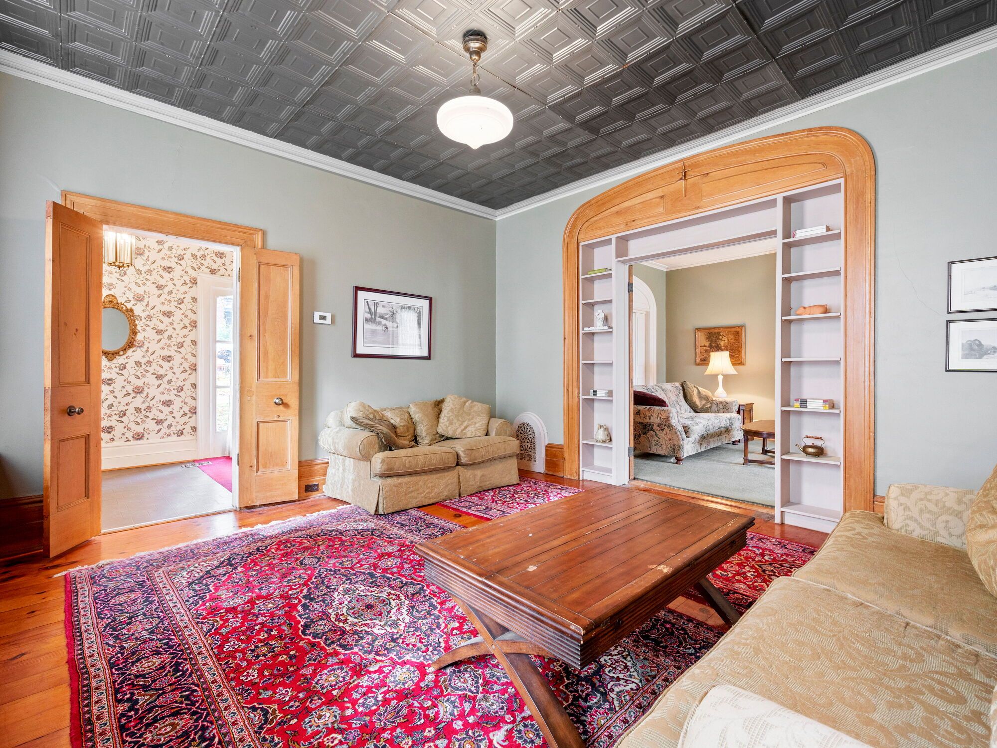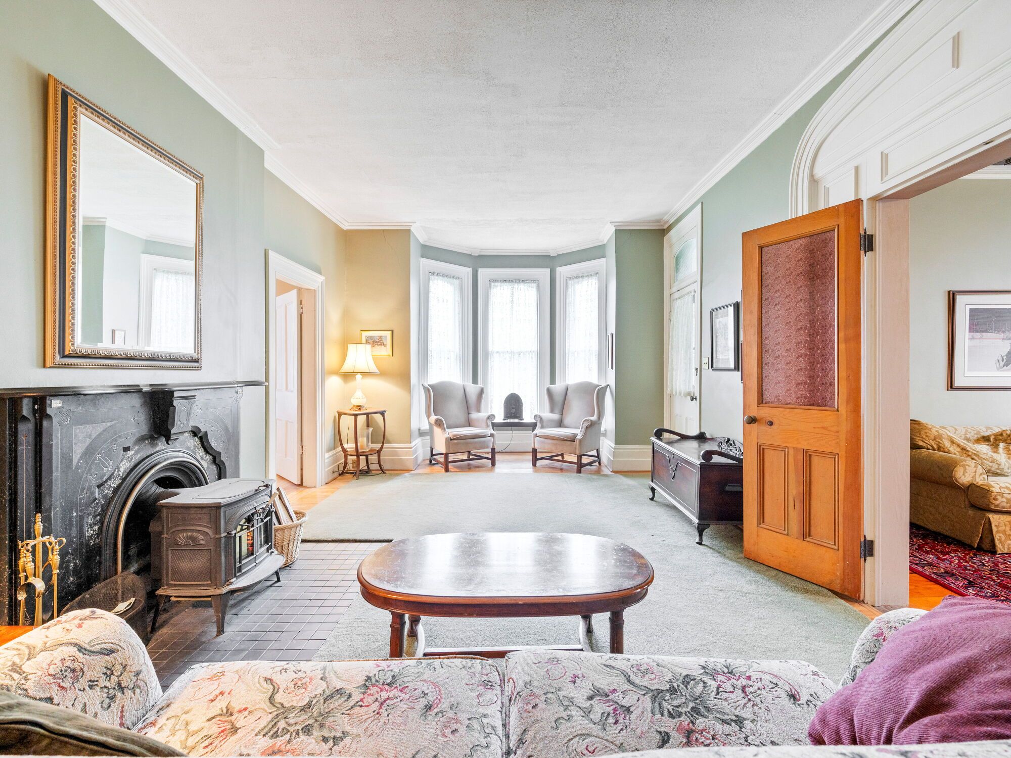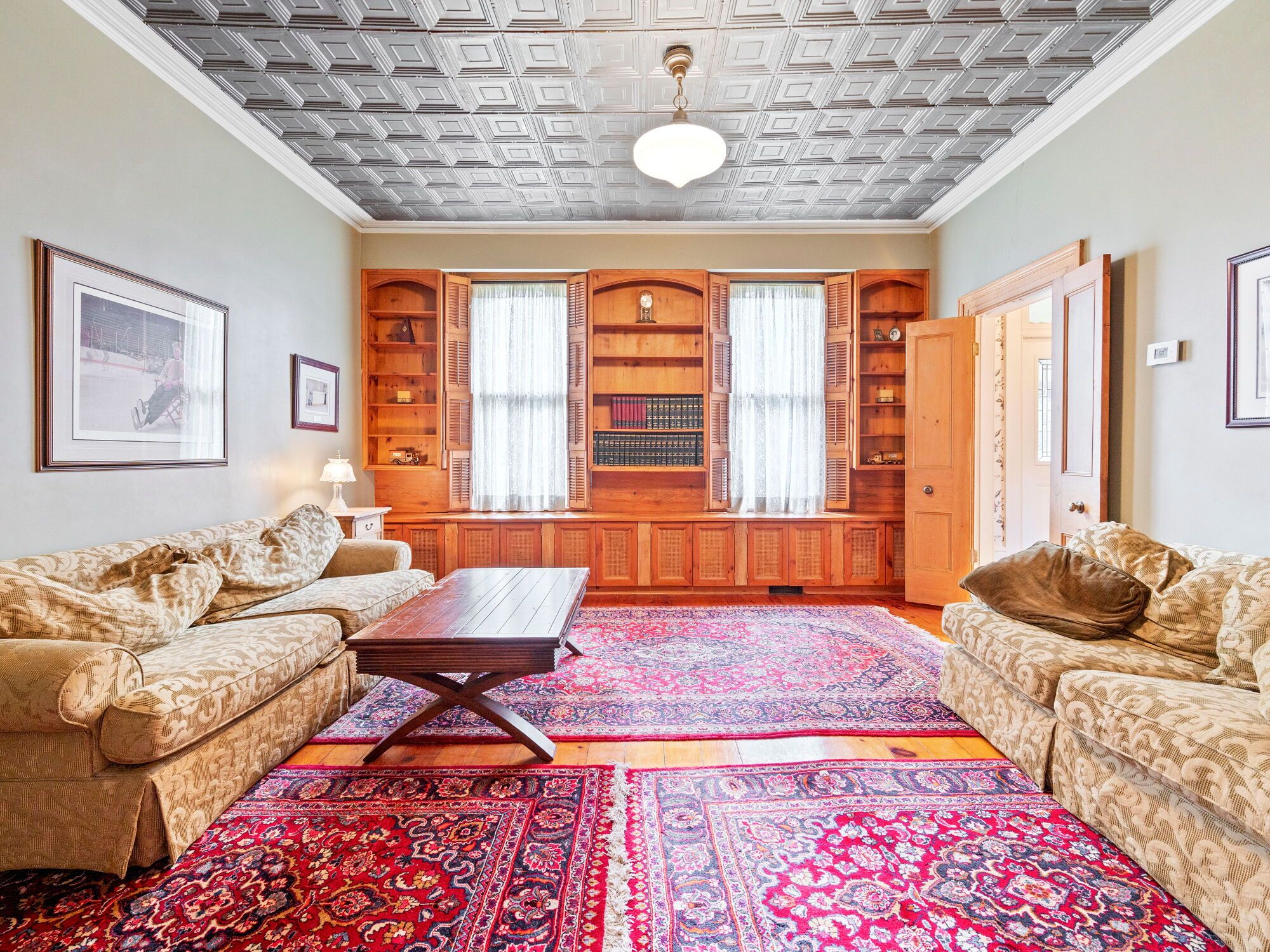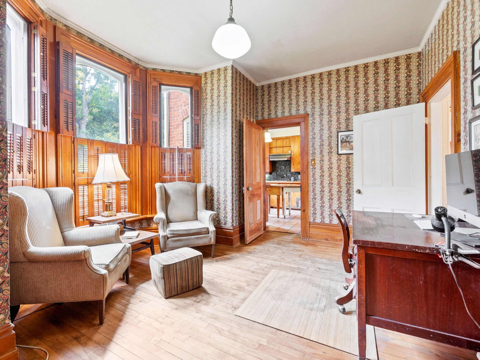 Admired for over 140 years, this sprawling & stately home is a must see. A unique property with endless possibility located in the heart of town. Timeless, quality construction & details thru out including original doors, trim, floors & staircases, spacious principal rooms & ceiling height, multiple walkouts from the main level to mature and private lot- 164 ft. X 187 ft., approximately . 70 acre with the house sited in centre of lot. Enjoy a grand foyer & front hall, dedicated library, formal living room with original fireplace and walkout to covered side porch. Enjoy entertaining in an expansive dining room with 2nd original fireplace or retreat to read a book in the cozy den. The kitchen offers lots of space for preparing meals & a large breakfast area with glass walkout door to side patio. The rear main floor laundry room offers a private 2 piece powder room and walkout to yard. The elegant front staircase leads to an open landing area and primary bedroom with walk-in closet & 3 piece ensuite bath, as well as main bath with whirlpool tub & additional bedrooms. The 2nd or rear staircase leads to a charming suite with bright & spacious living/dining room, kitchen, 4th bedroom and full bath - an ideal space for guests or extended family & can be closed off from the rest of the 2nd floor space. Outside you find lots of parking area, an enormous yard with mature trees and rear storage/driveshed. Rare opportunity for a property of this size in a downtown orangeville location.