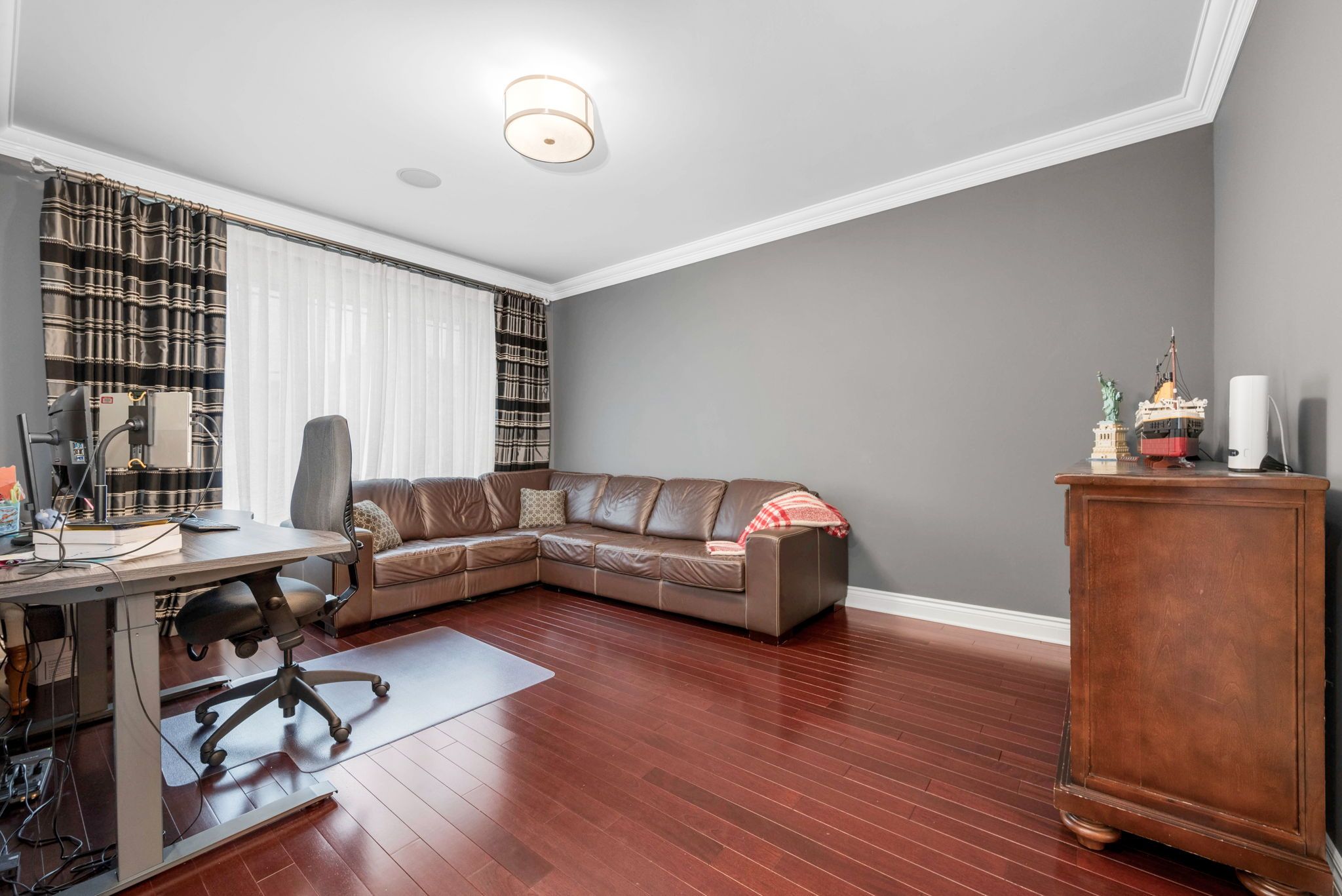 • Elegant design with Brazilian Cherry hardwood and detailed ceilings.