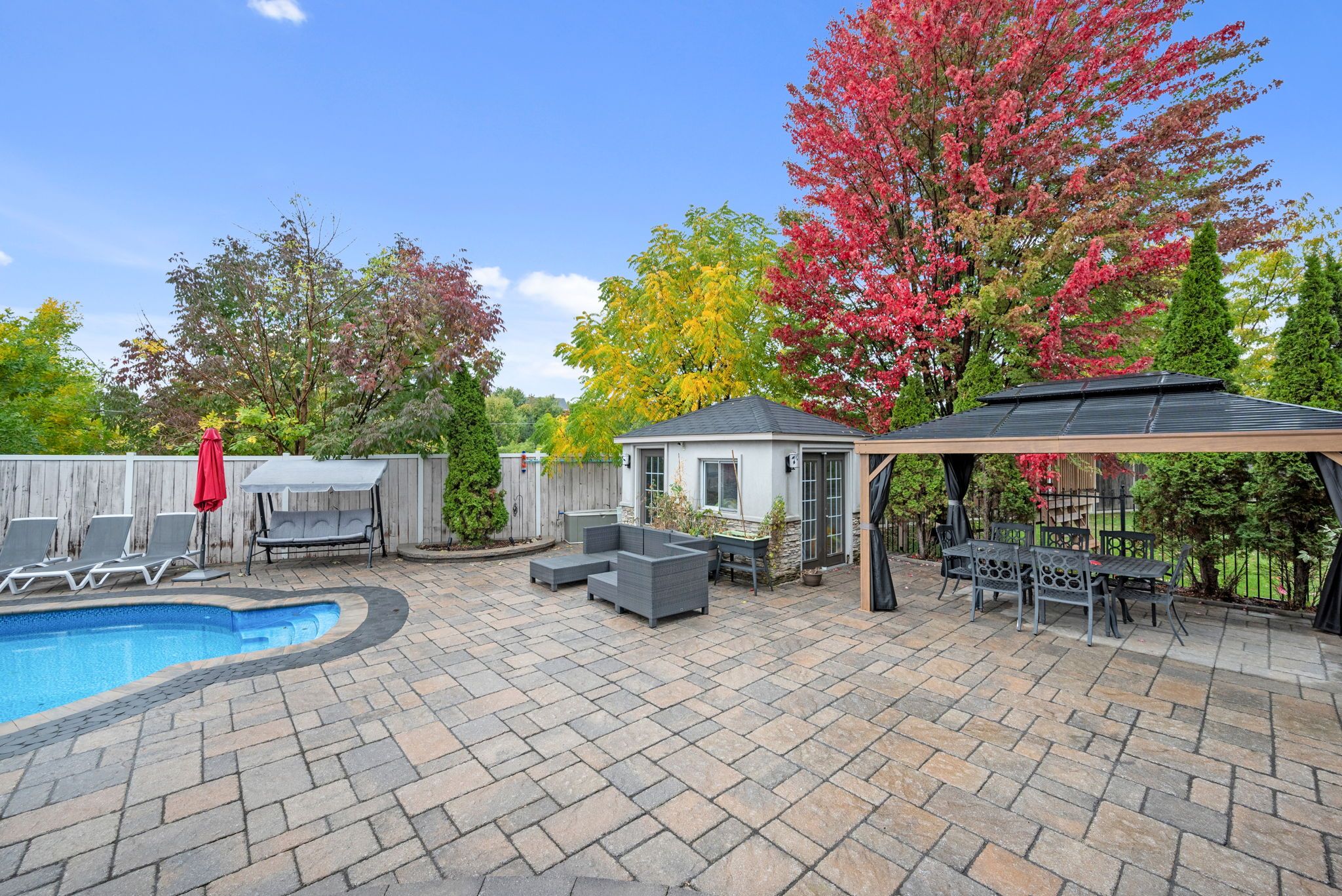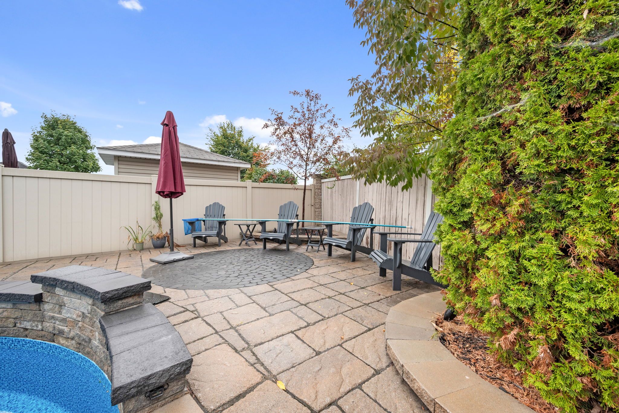 • Backyard oasis featuring a large inground pool for summer fun.