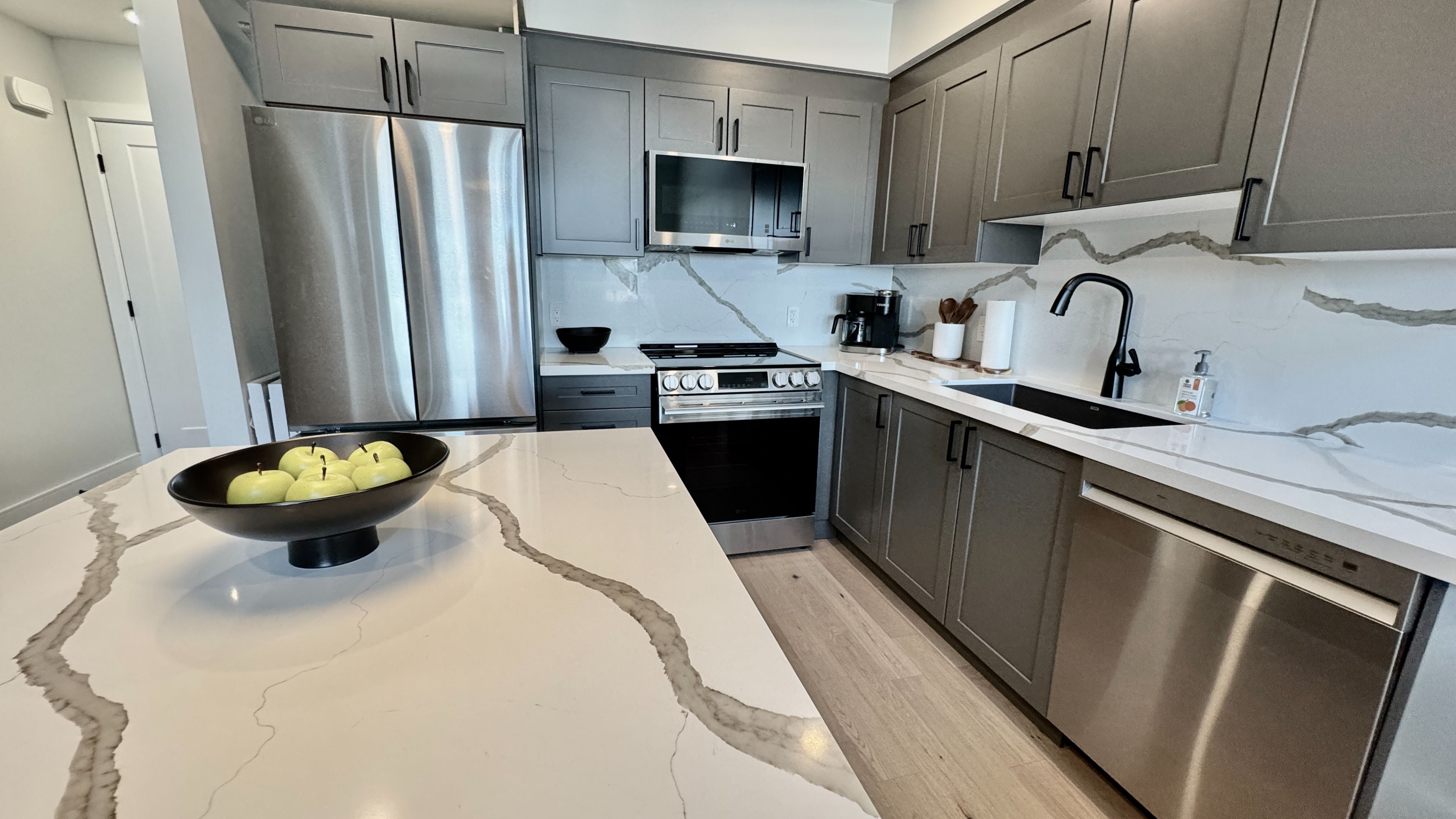 The view is spectacular! Brand new, never lived in loft condo available for lease directly across from deerhurst resort. Three bedrooms/three bathrooms in 1400 spacious square feet. Top floor with soaring ceiling in livingroom. Fully furnished with quality furnishings. Every detail well thought through for your comfort and enjoyment. Live edge head boards beds with new kingsdown mattresses and high end linens. Custom built-in closets. Sit by the fire and enjoy the breathtaking views of penn lake and the surrounding property and hillsides a 50 kms distance away on the horizon. Gourmet kitchen is fully equipped with everything including new lg appliances, custom cabinetry, granite countertops , large blanco sink, and island with stools. Radiant floor heating makes it so cozy in the morning. Enjoy bbqing on the large open deck bathed in afternoon sun or step across the street to taste the culinary delights of the many deerhurst resort restaurants. Deerhurst also offers copious amenities for your enjoyment including a spa, gym, indoor pool, climbing wall among other challenges together with the world-class deerhurst highlands golf course. For a quick entertaining game, try the deerhurst lakeside executive 9-hole course. Right next door to you is the hidden valley highlands ski area for a great day on the slopes for all ages and skiing levels. In the summer, relax on the private hidden valley beach on the shores of penn lake. In autumn, the spectacular fall colours viewed from your own private condo deck will mesmerize. Close to town and amenities but surrounded by lakes, rocks and trees. Take a walk along the many area tree-shrouded trails enjoying the perfect peace and quiet of nature. This unique condo is your amazing introduction to all the magic that muskoka offers. Perfect opportunity to "try out" the cottage life or live the dream.