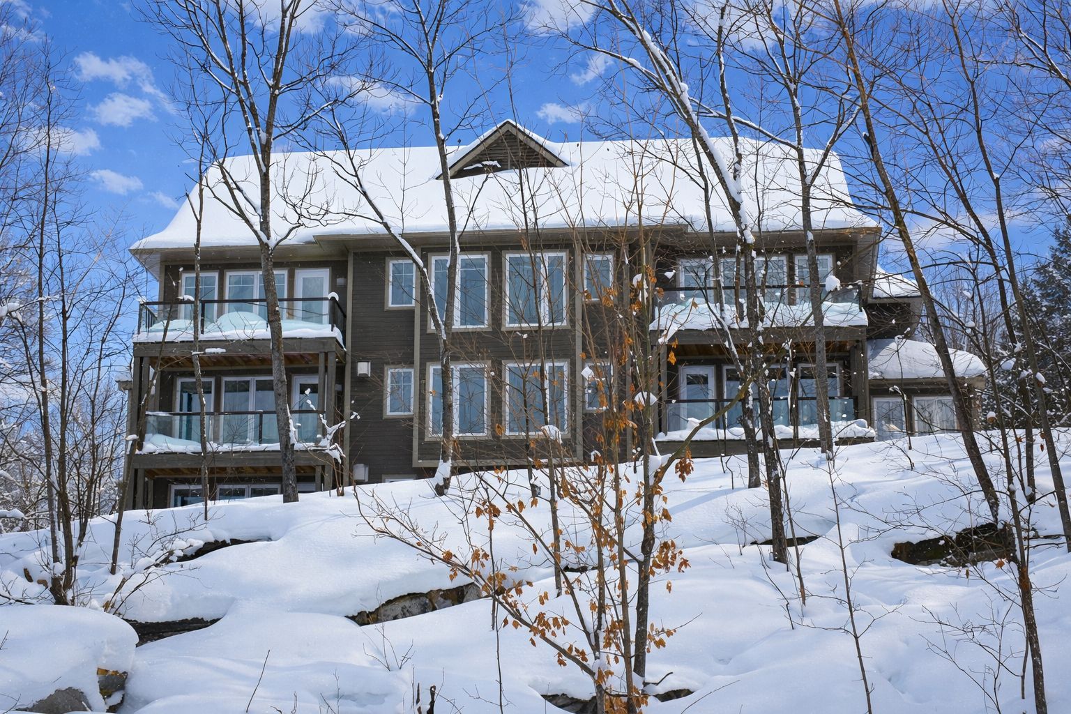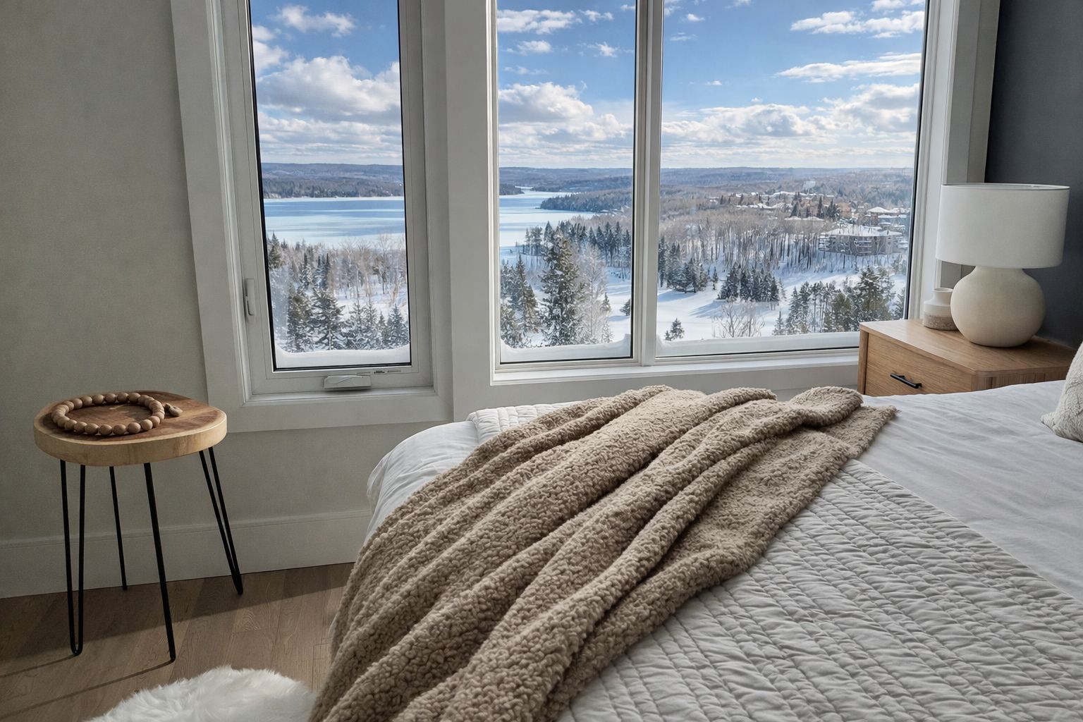 "brand new and never lived in" this stunning loft-style condo is available for lease across the road from world renowned deerhurst resort. Offering approximately 1,400 sq. Ft. Of beautifully designed living space, this top-floor residence features soaring ceilings in the living room and breathtaking panoramic views over penn lake and rolling hills stretching nearly 50 km to the horizon. Fully furnished with quality, designer-selected pieces, every detail has been thoughtfully curated for comfort and enjoyment. Live-edge headboard beds are paired with new kingsdown mattresses and premium linens. Custom built-in closets provide both convenience and function. Relax fireside while taking in the view, entertain on the spacious open deck bathed in afternoon sun, or stroll across the street to enjoy the exceptional dining experiences at deerhurst resort or their many amenities, including a spa, fitness centre, indoor pool, climbing wall, and the world-class deerhurst highlands golf course. Nearby golf options also include grandview golf club, huntsville downs golf club, and north granite ridge golf club. Right next door is hidden valley highlands ski area for winter days on the slopes, while summer invites you to unwind at the private hidden valley beach on penn lake. Autumn delivers breathtaking muskoka colour from your own private deck, and year-round trails offer peaceful walks through nature. Experience four-season muskoka living at its finest. A carefree alternative to cottage ownership, this exceptional condo is ideal for those new to the area, professionals seeking a luxury rental, or anyone wishing to "try out" the muskoka lifestyle before purchasing. Come take a look - you may never want to leave.