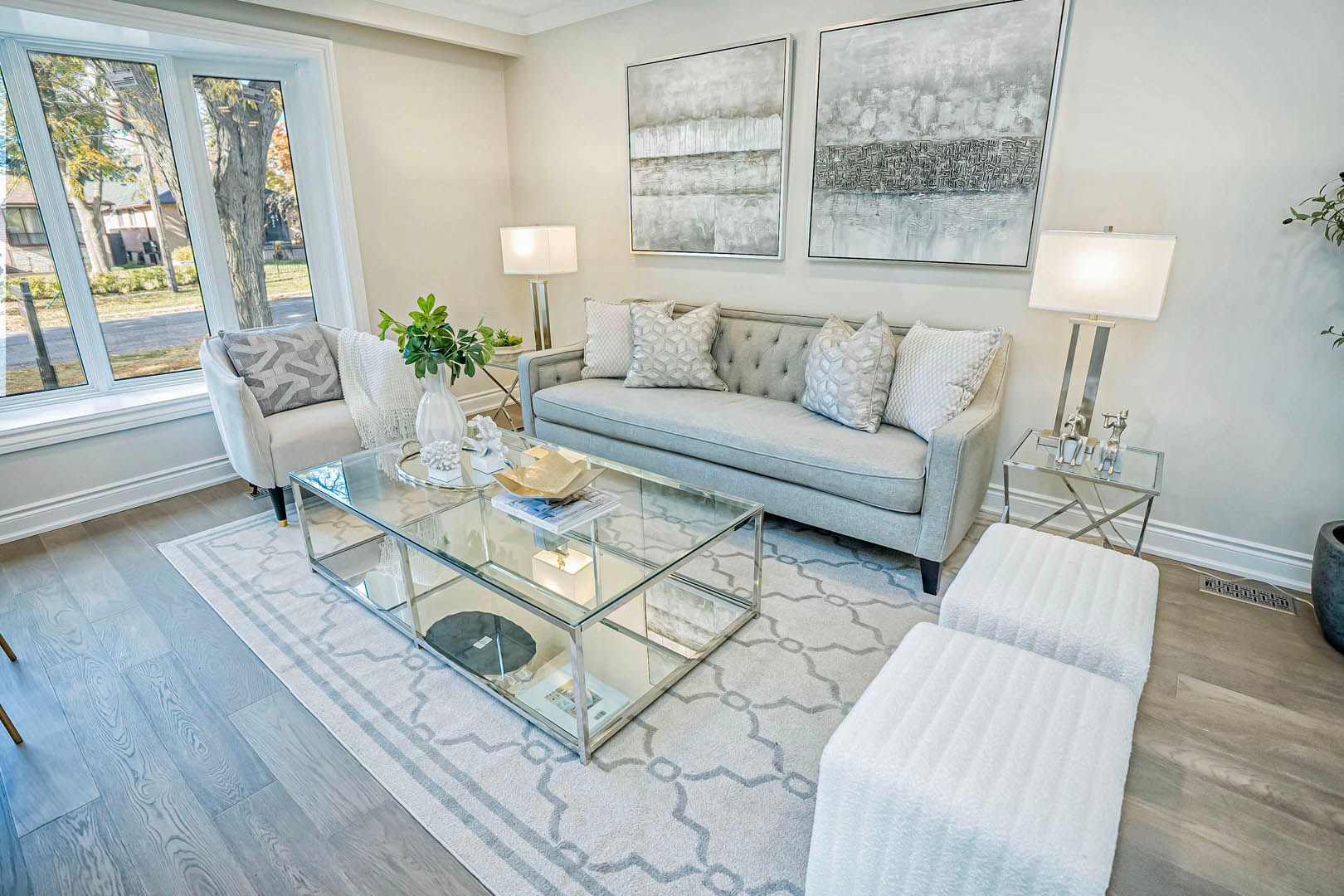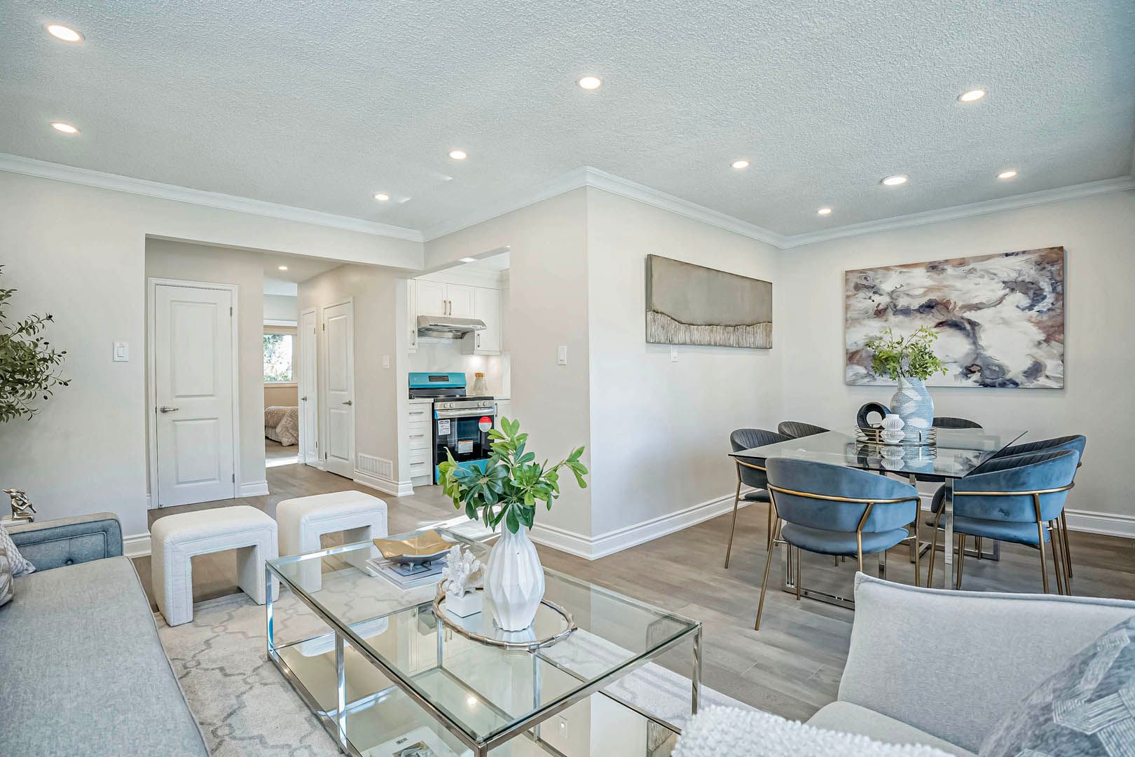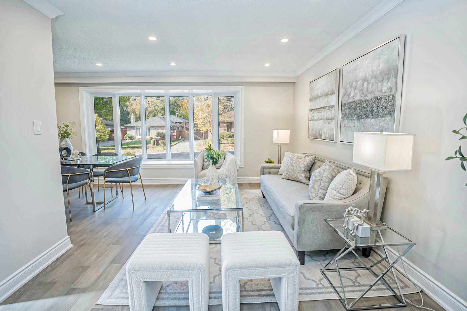 • Bright open concept living space with large front bow window.