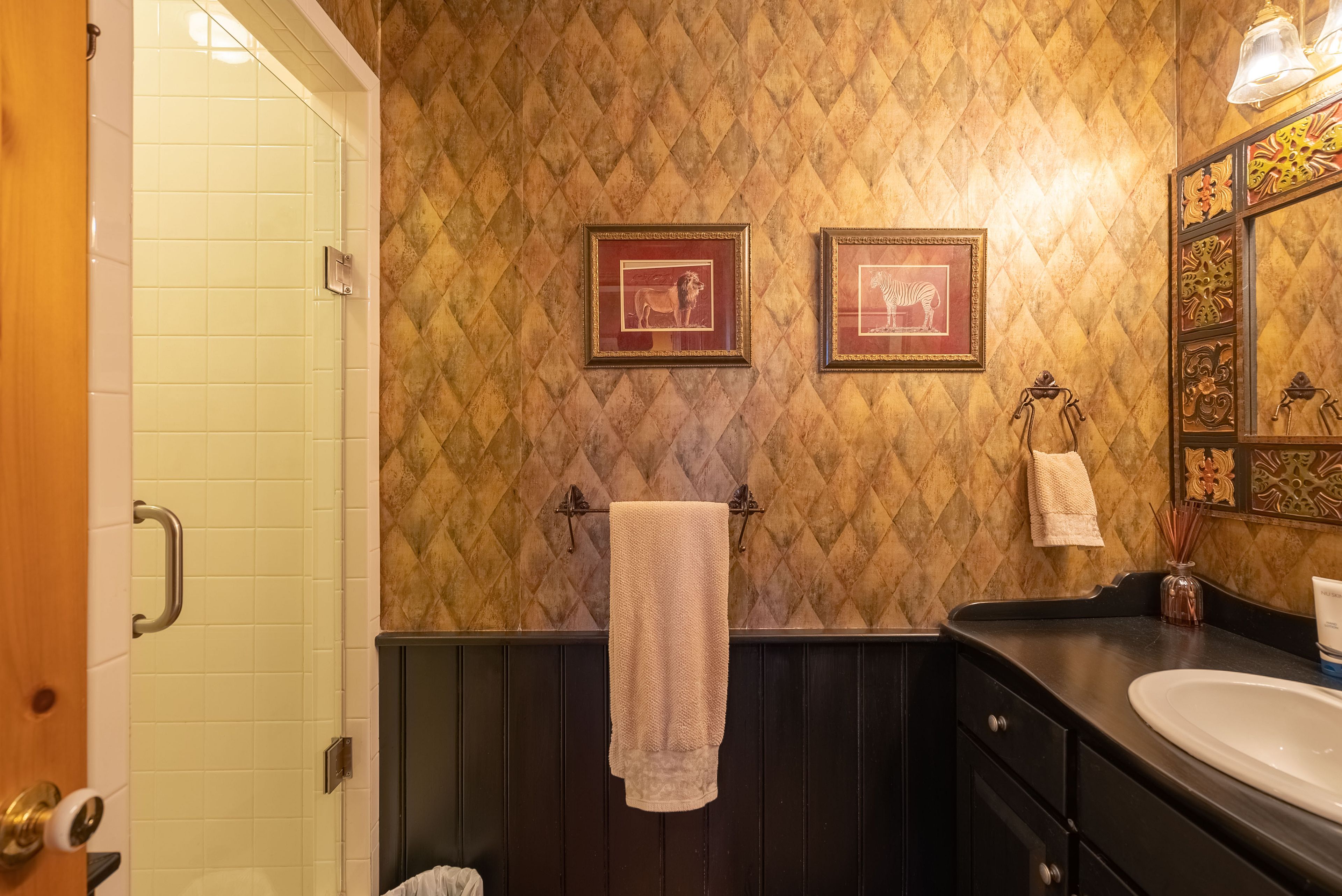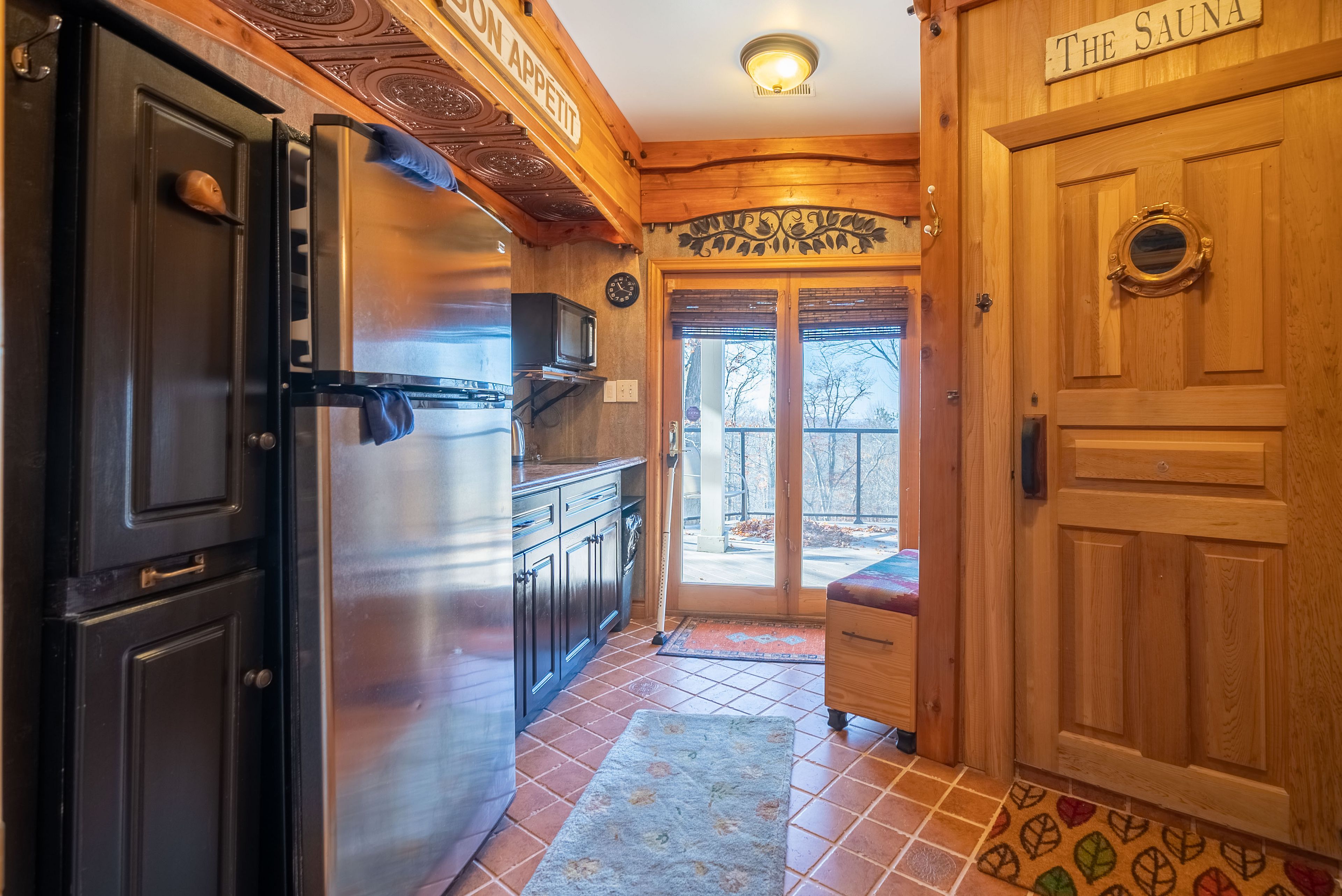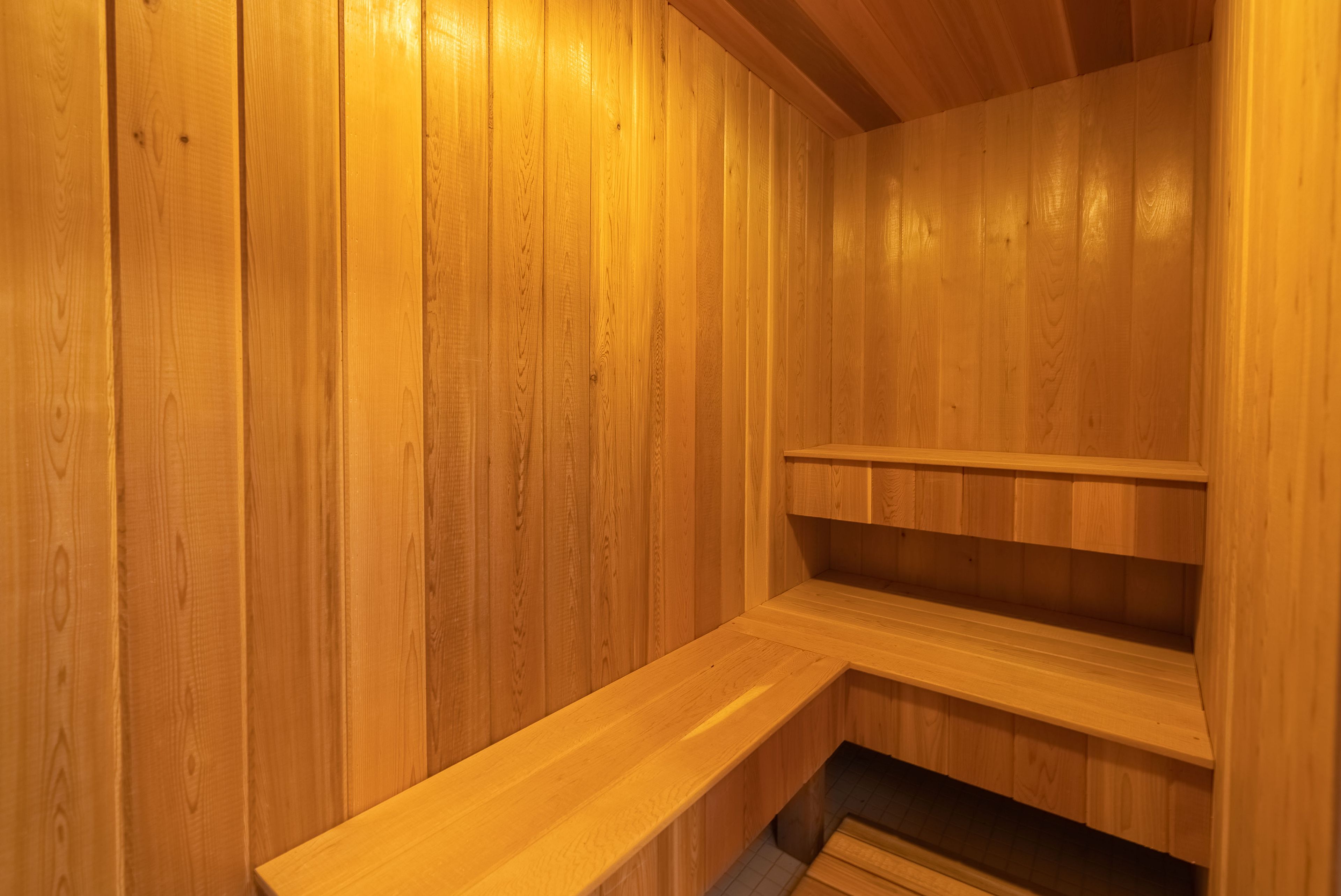 • Lower level includes family room, kitchenette, and sauna for relaxation.