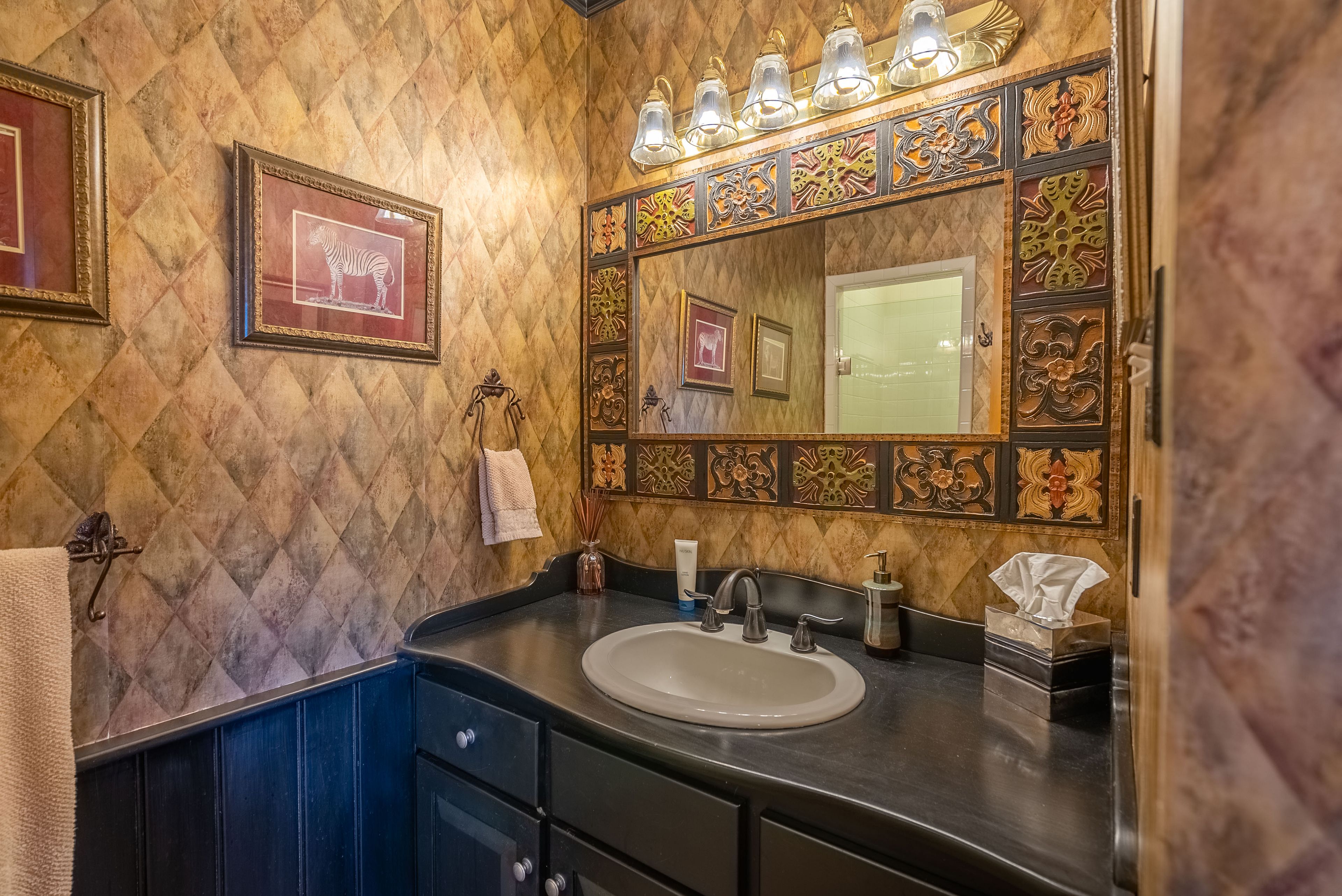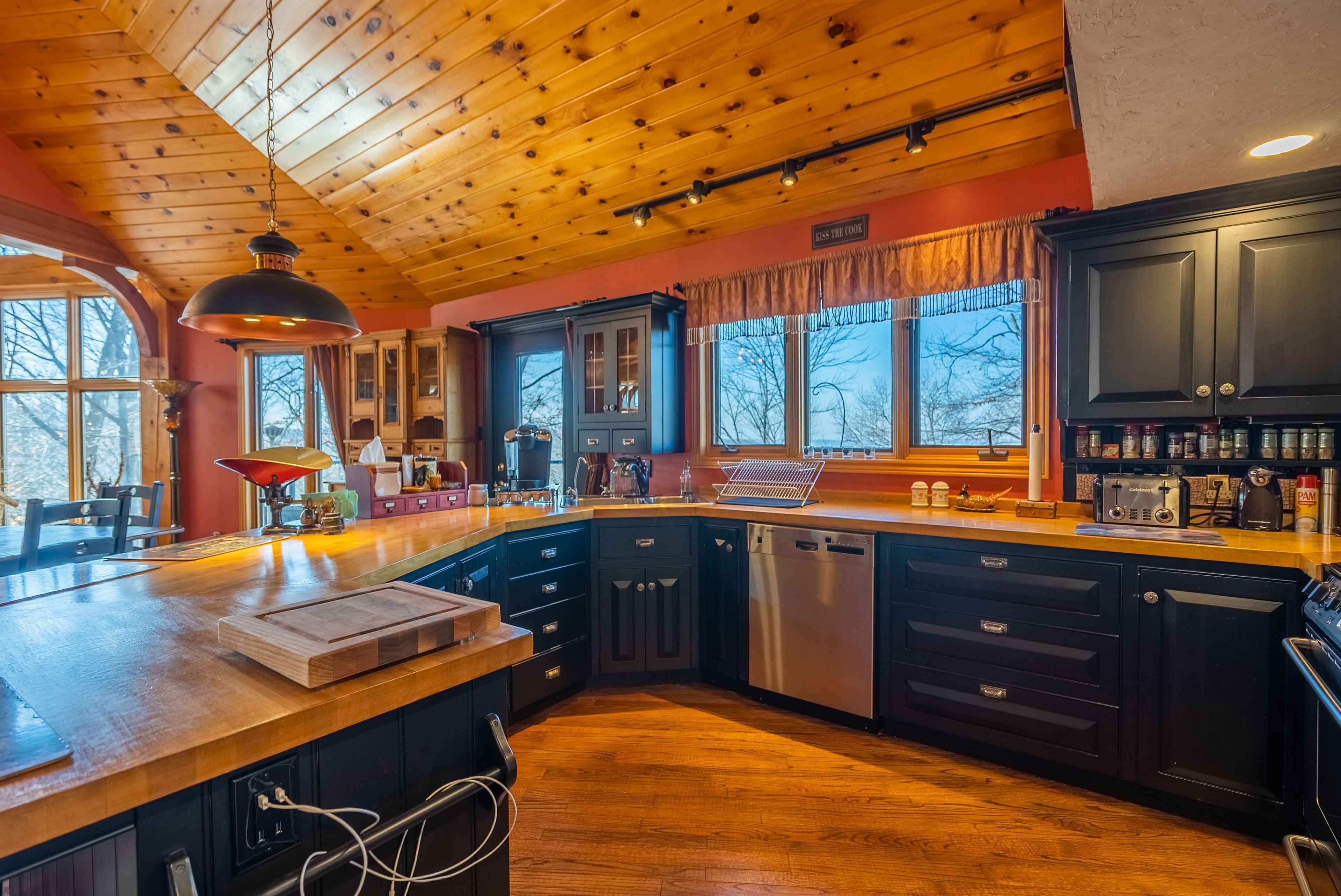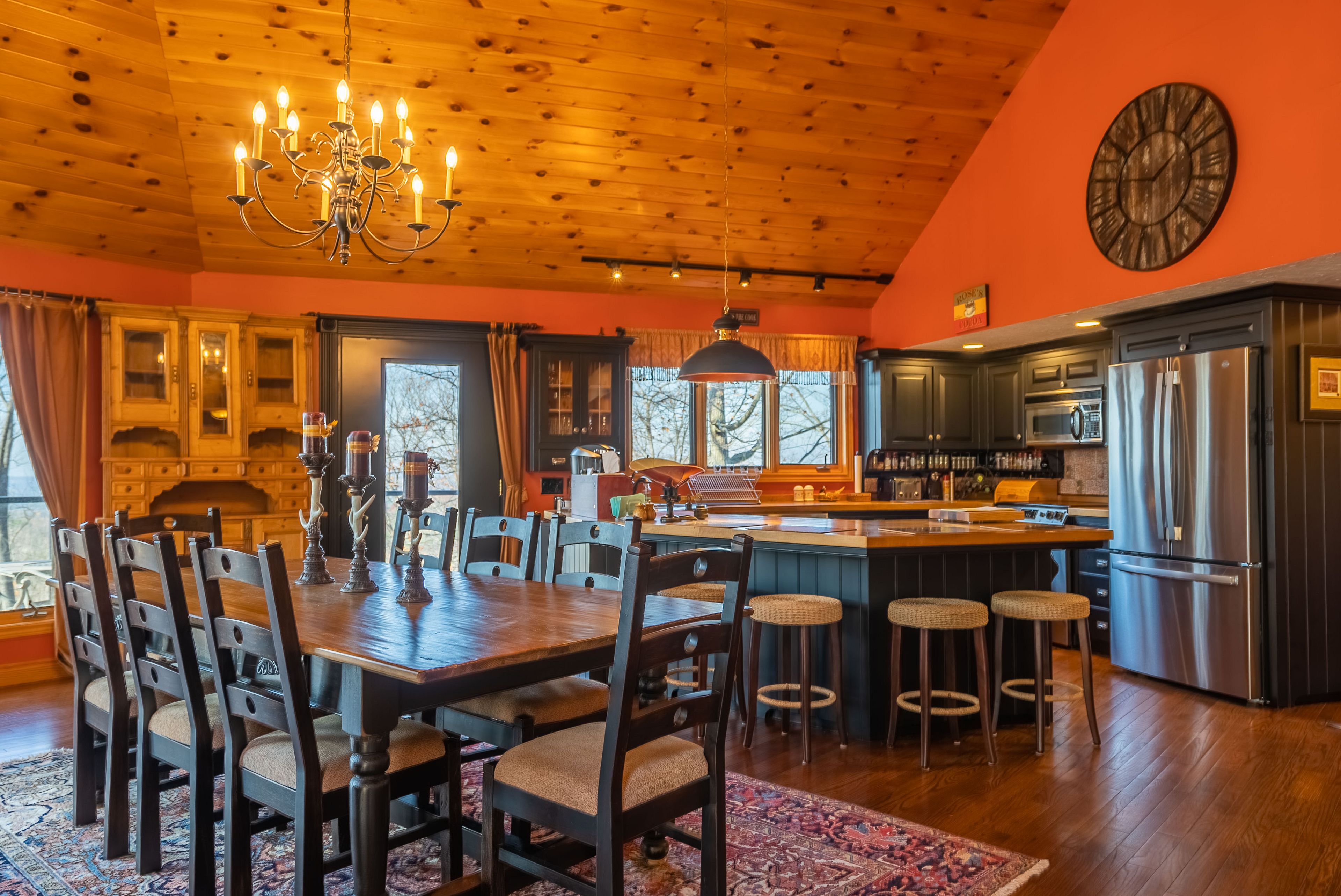• Lower level includes family room, kitchenette, and sauna for relaxation.