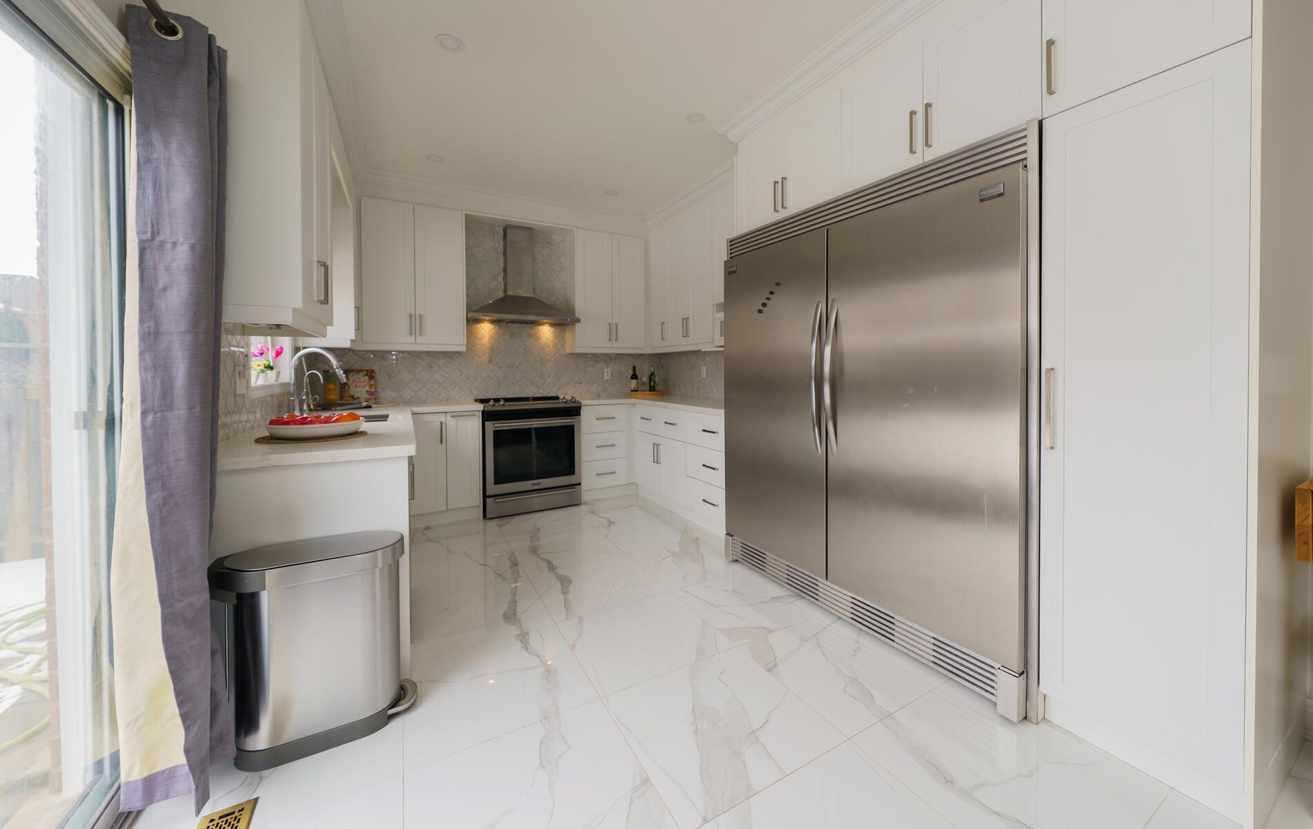 • Modern kitchen with high-end stainless steel appliances and custom cabinetry.