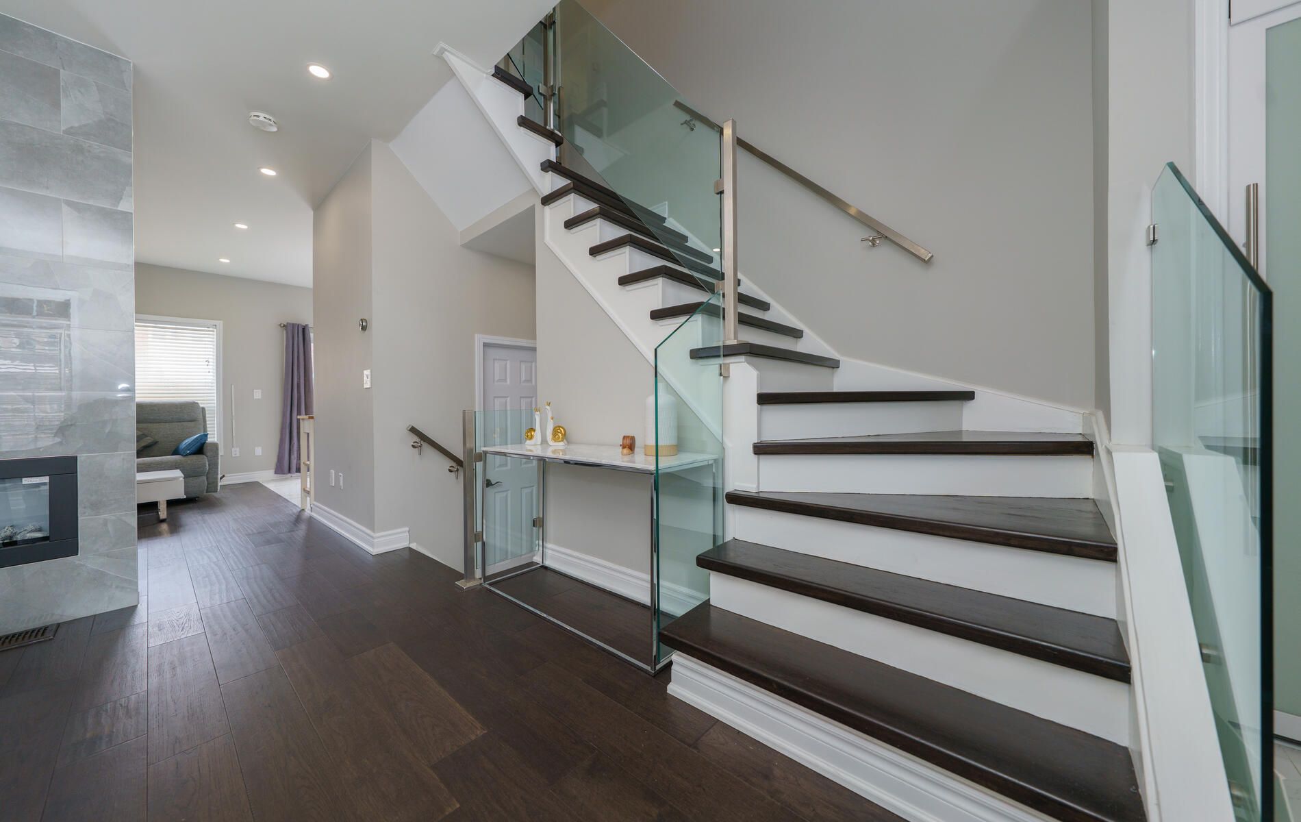 An exceptional residence in the highly sought-after wismer community. This beautifully renovated detached home showcases a full transformation, offering a curated selection of premium upgrades throughout. The outstanding features include elegant glass stair railings, a custom-designed built-in 2-way electric fireplace, and 9-ft smooth ceilings on both the main and second levels. The modern custom kitchen is a true centrepiece, featuring a 66" professional stainless steel fridge and freezer combo, artisan backsplash, and thoughtfully redesigned cabinetry. Recent updates provide peace of mind, including roof (2019), central air conditioning and furnace (2020), front interlock (2020), water system (2019), google nest thermostat, ring doorbell and security system. Stainless steel appliances (2019) and pot lights throughout the home. The spacious primary bedroom boasts a walk-in closet and a fully remodelled 4-piece ensuite with double sinks and a sleek, modern glass shower. The main bath and the powder room were also updated. The finished lower level offers a bright recreation room, ideal for entertaining or a home office, and a generously sized laundry area. The garage is equipped with a newer electric vehicle charger (2023). Ideally located just a short walk to roy walker park and minutes to both public and catholic schools, this stunning home combines thoughtful design, luxury upgrades, and functionality, delivering comfort, style, and a true sense of home.