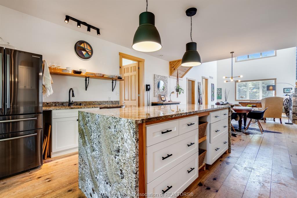 Welcome to this stunning, custom home on nearly an acre! Featuring 2 bedrooms plus a versatile loft/3rd bedroom, 2 full bathrooms including a luxurious ensuite with walk-in closet, this home offers style and comfort throughout. Soaring ceilings and an open-concept layout create a bright, inviting space highlighted by pine floors, granite countertops, a large kitchen island, and a cozy gas fireplace with a custom mantel. Step outside to enjoy a large covered patio for lounging, a private hot tub retreat off the primary bedroom, and a beautifully landscaped yard with no immediate neighbours. An attached insulated 3-car garage plus a detached 2-car insulated garage/workshop provide ample space for vehicles, hobbies, and storage. Truly a dream lifestyle property—peace, privacy, and modern comfort all in one. Main floor laundry. Are you ready to start living the dream in beautiful shrewsbury?