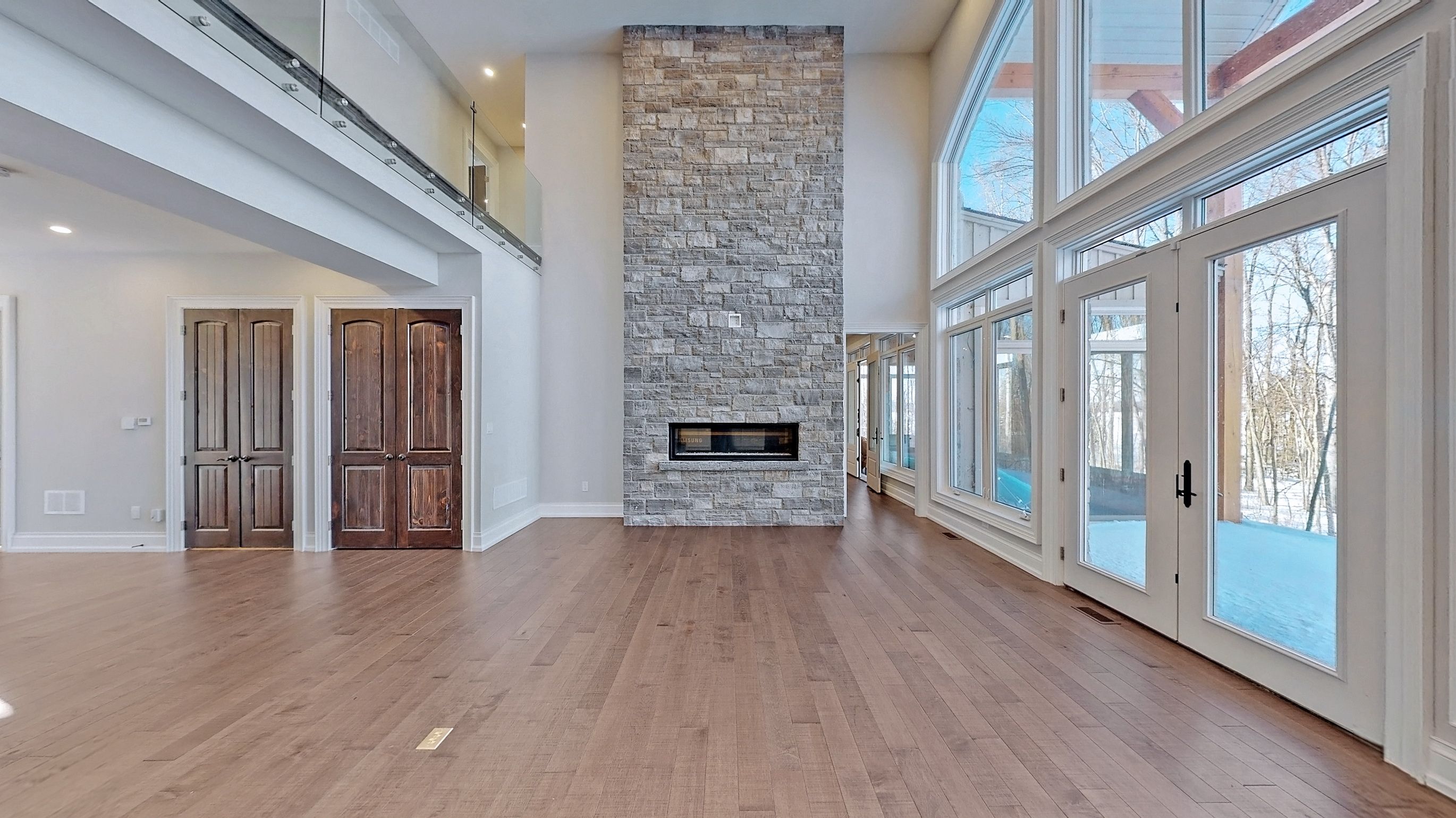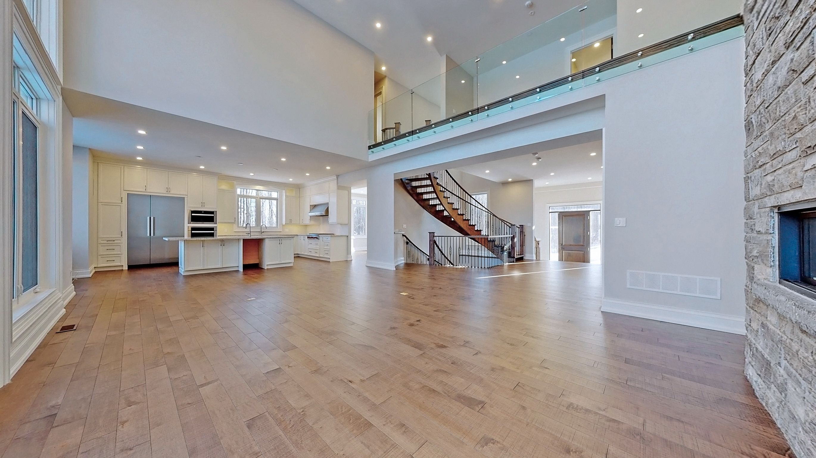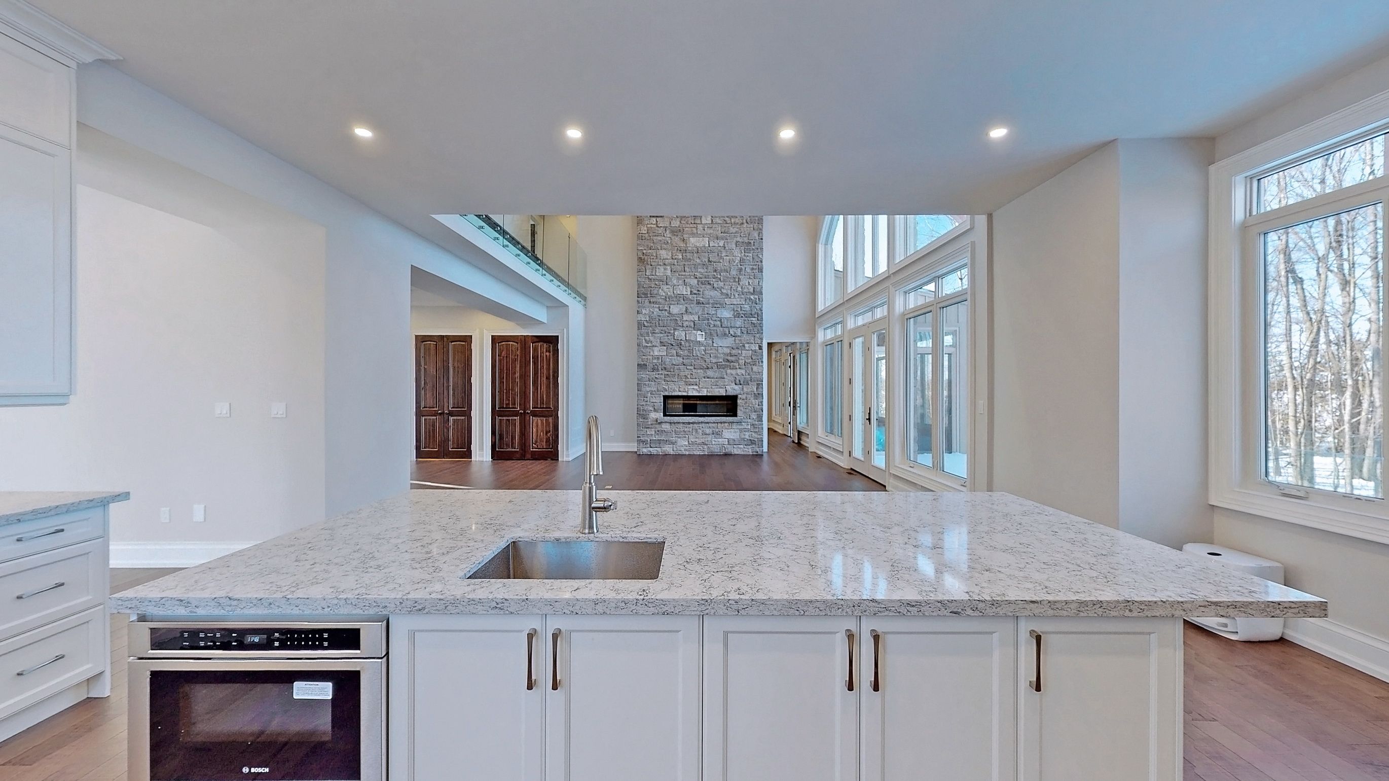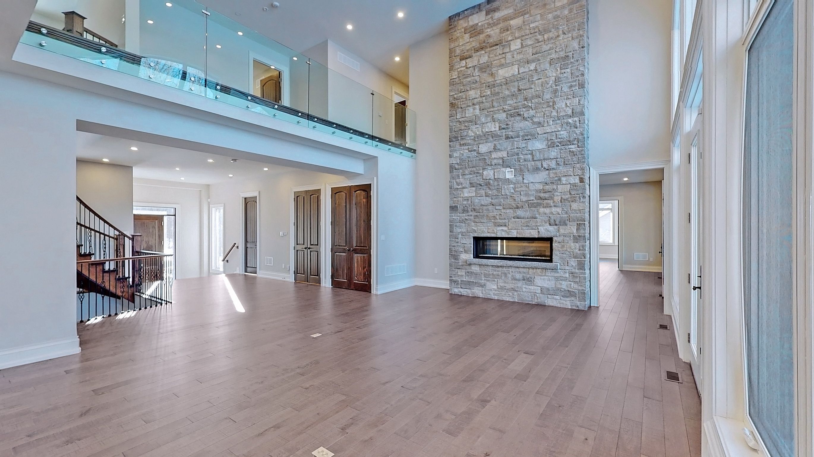 • Gorgeous family room with a 20 ft ceiling and double view fireplace.