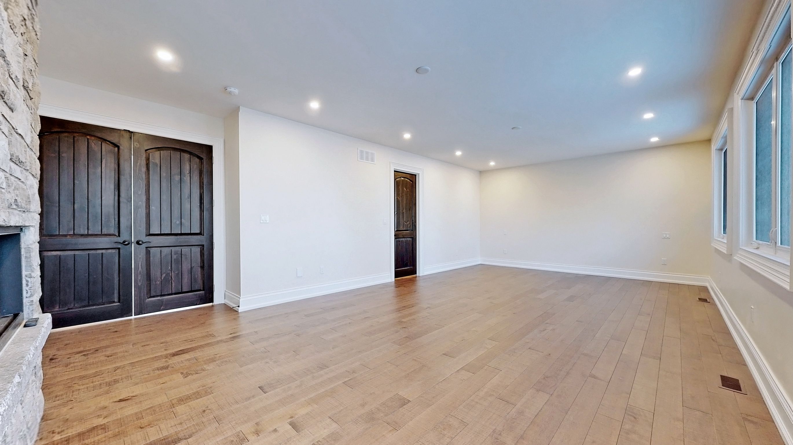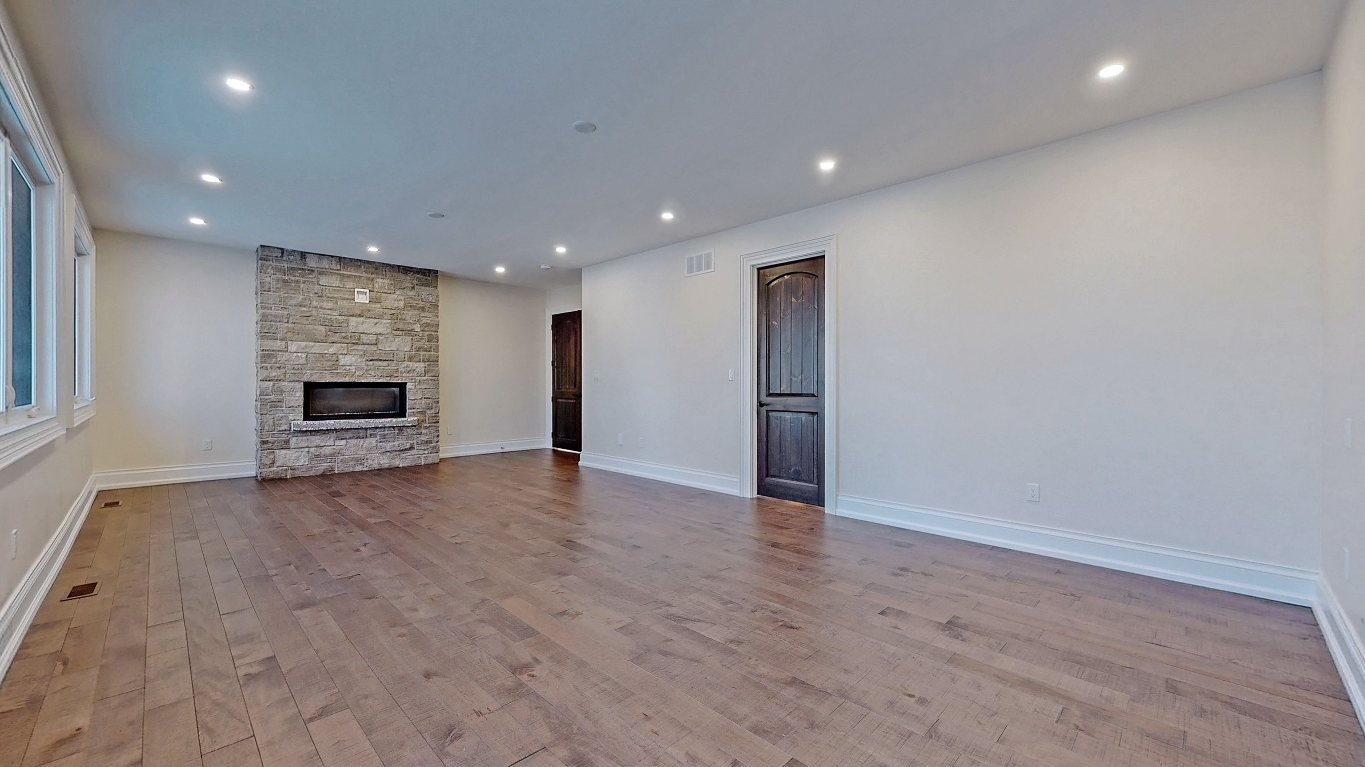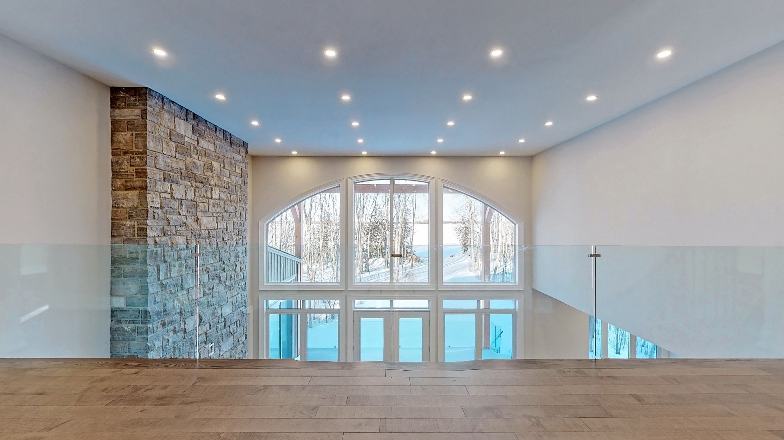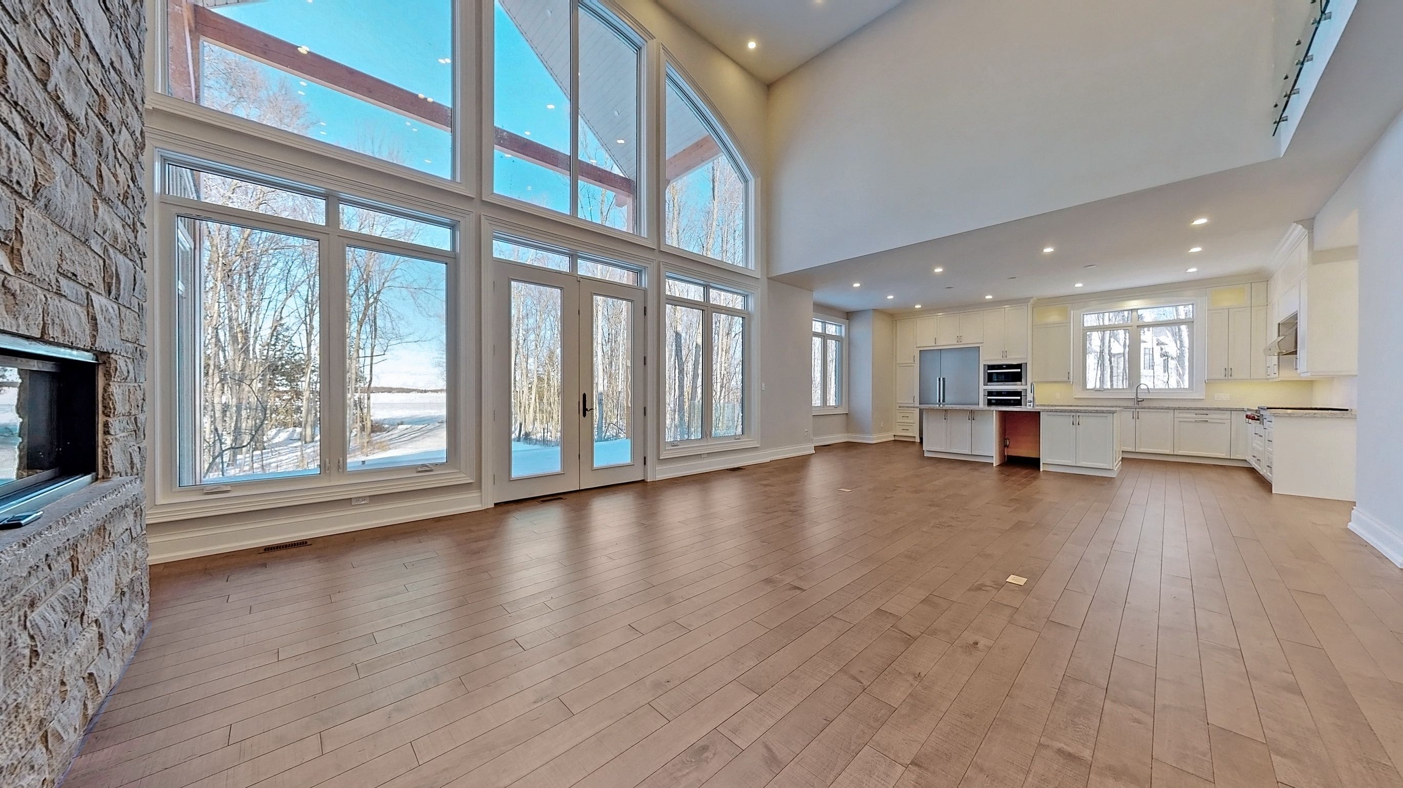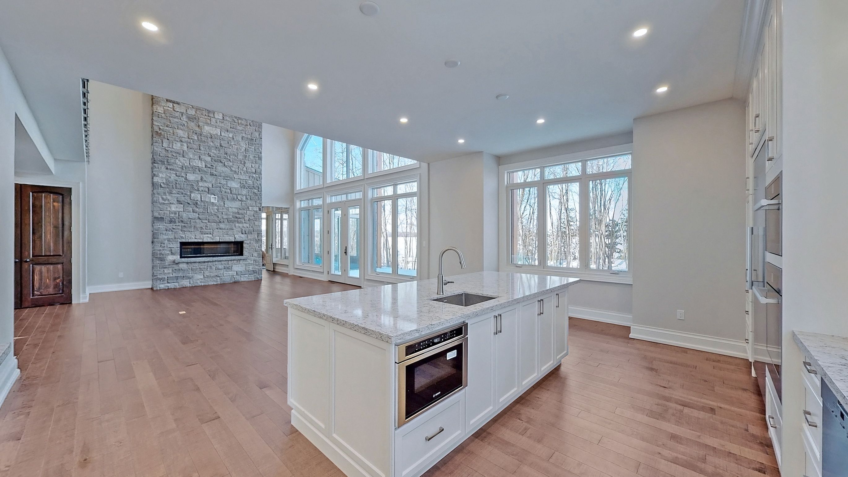 • Gorgeous family room with a 20 ft ceiling and double view fireplace.