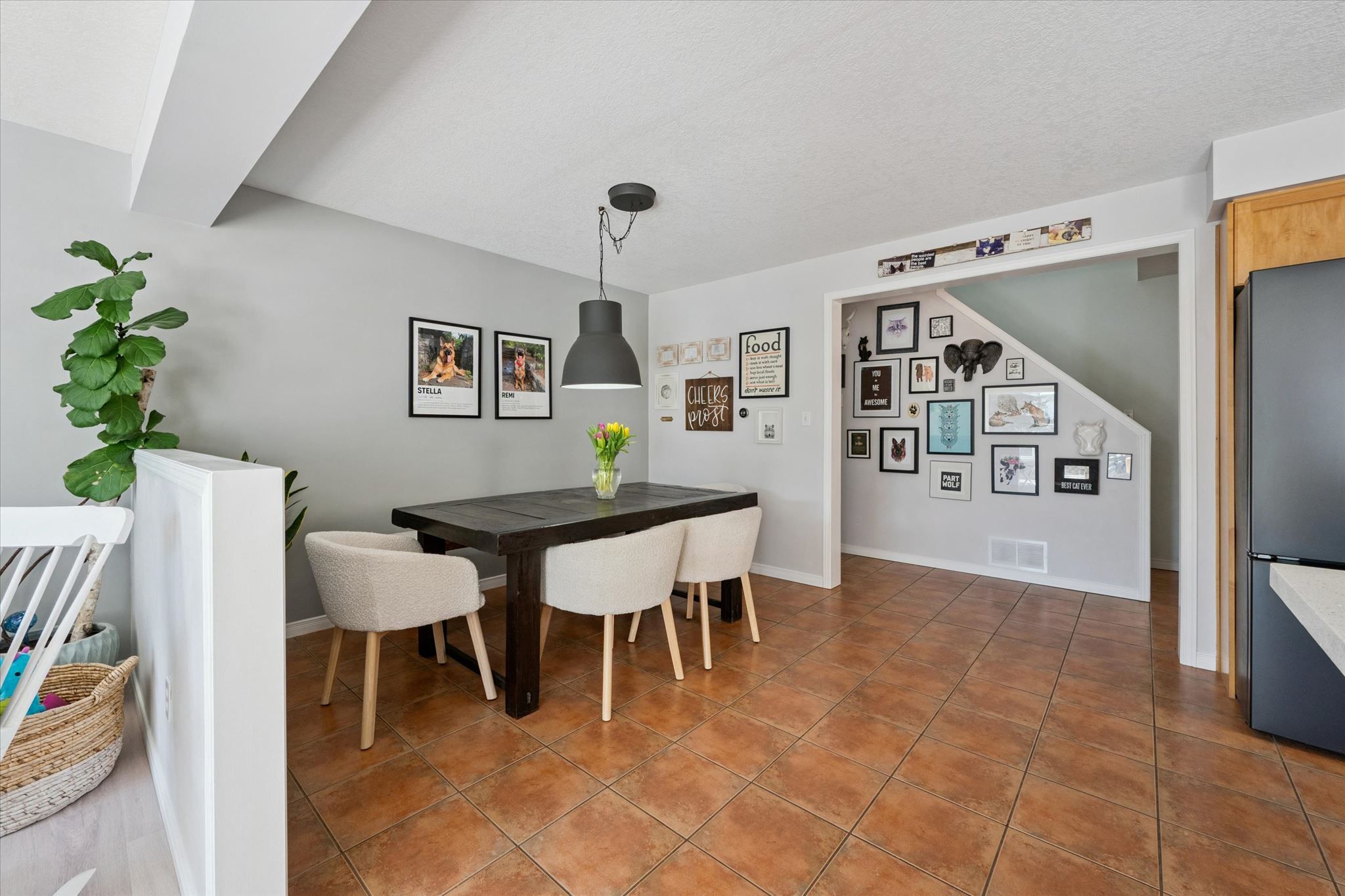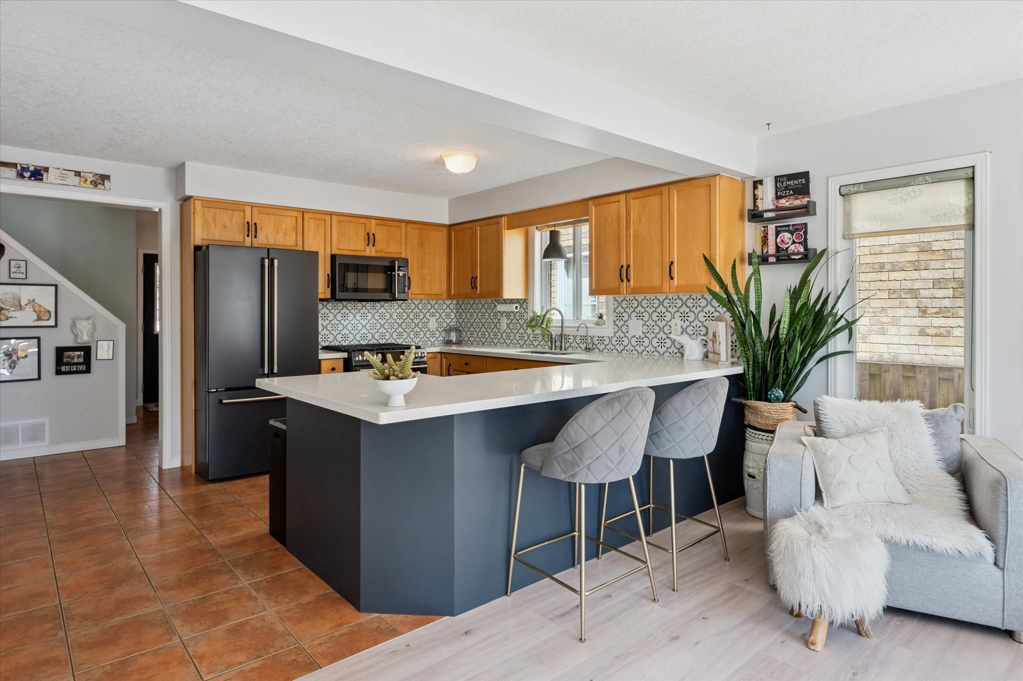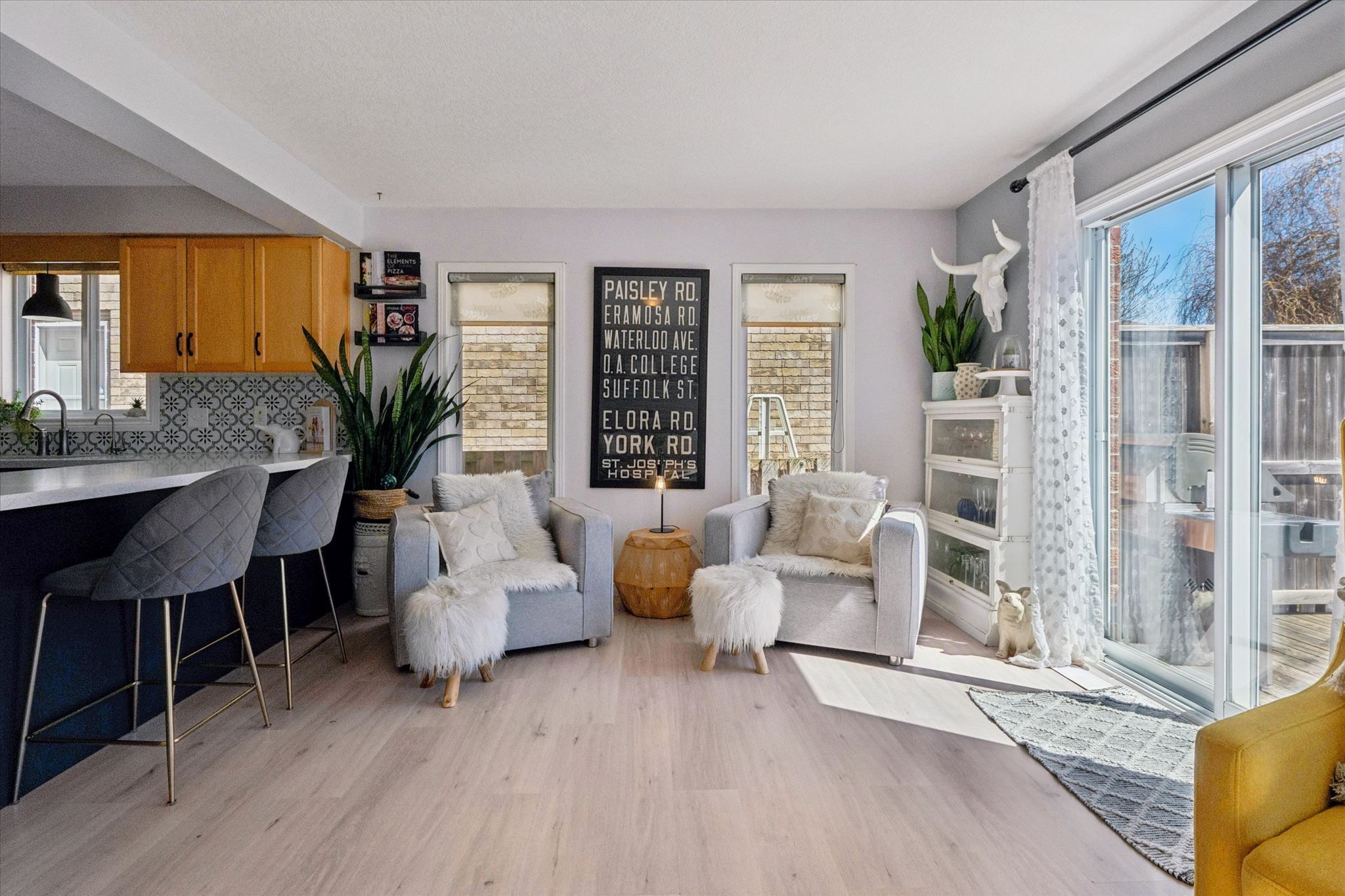 Modern elegance meets family functionality in guelph's east end. Step into over 2,500 sq. Ft. Of masterfully designed living space in the heart of grange hill east. This 3-bedroom, 4-bathroom gem welcomes you with a sun-drenched, open-concept main floor, perfect for seamless entertaining and getting family tasks done. The chef-inspired kitchen is a true standout, featuring premium ge café brushed black appliances (gas stove included!), elegant stone countertops, and a stylish backsplash. Head upstairs to find a massive, cozy family room - currently a media hub, but easily convertible into a large 4th bedroom. The primary retreat overlooks the rear yard and boasts a spacious walk-in closet and a private 4pc ensuite. Two additional bedrooms and a convenient 2nd-floor laundry room complete this level. The wide-open, barrier-free basement is currently set up as a billiards room with a wet bar and a 2pc bath (with shower rough-in). Whether you envision a home gym, professional office, or the ultimate games room, this space adapts to your needs. Enjoy a private double driveway and an oversized 1. 5 car garage with a convenient man-door. Nestled on a quiet, low-traffic side street, you are just minutes from eastview community park's splash pads, bike tracks and trails, and a short drive to the natural beauty of guelph lake conservation area. Experience a relaxed pace of life with easy access to the gta via the scenic guelph line. Your east end dream home is waiting!