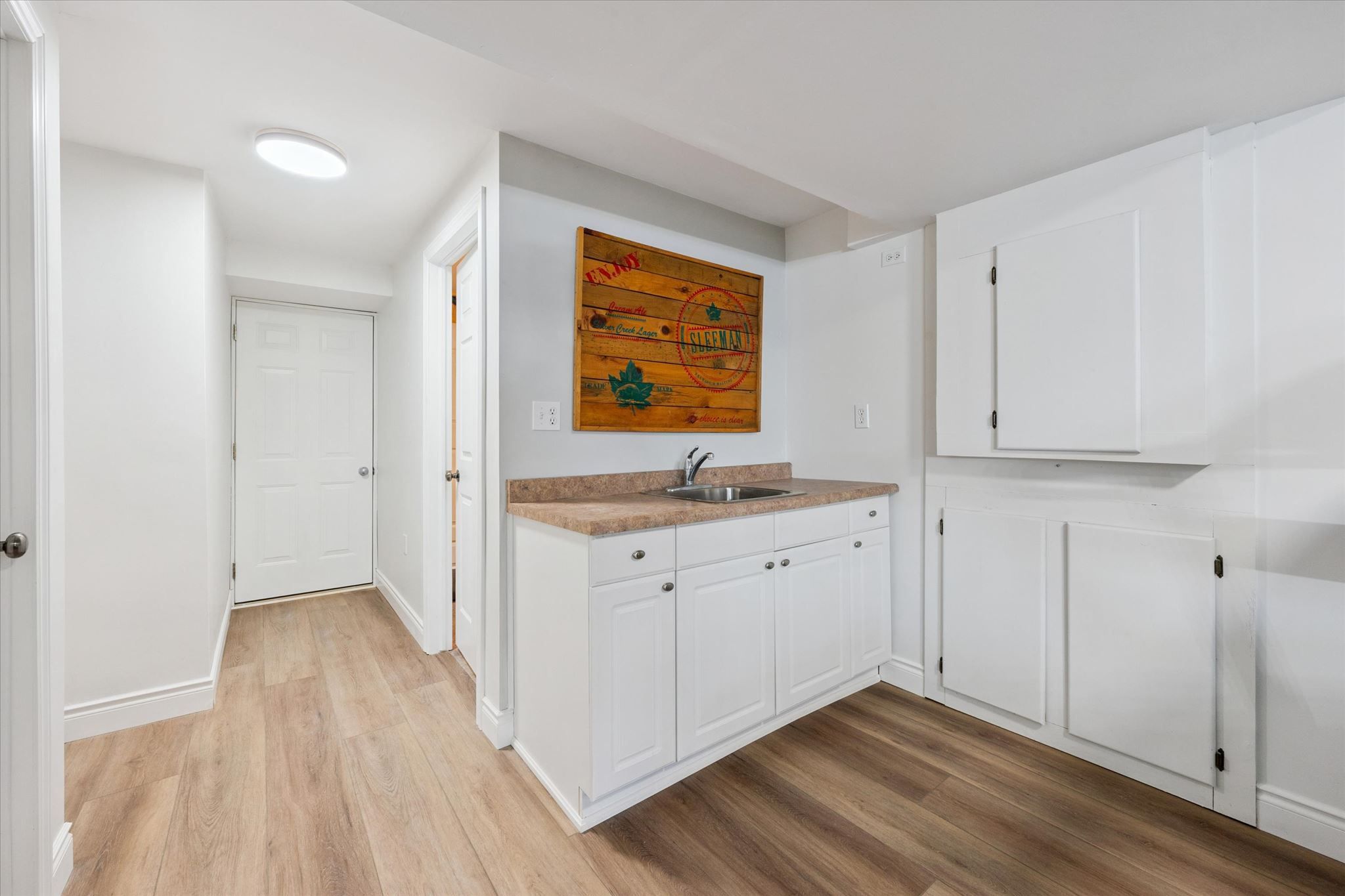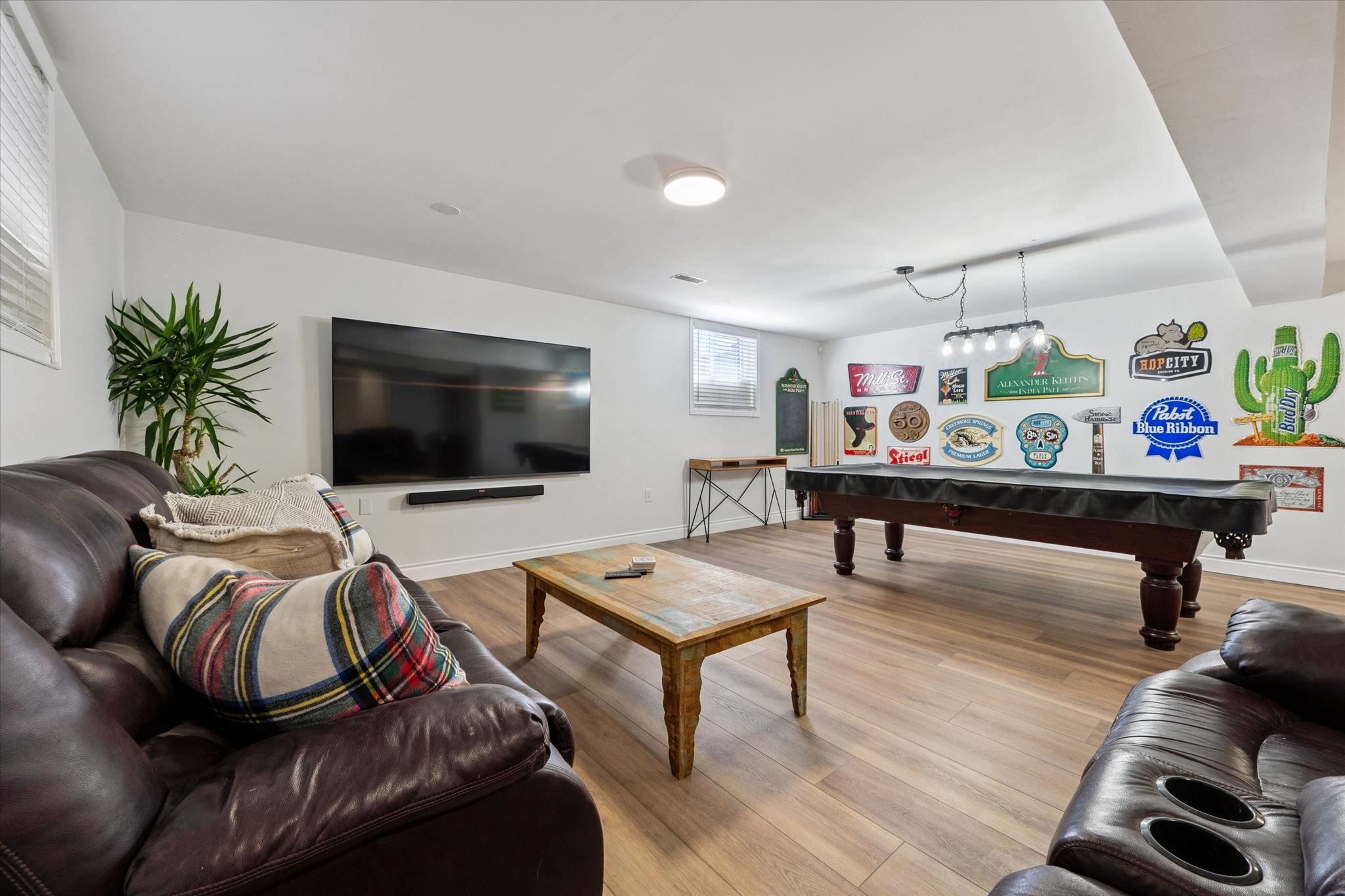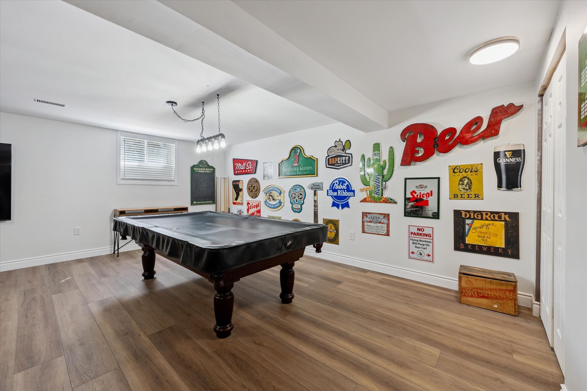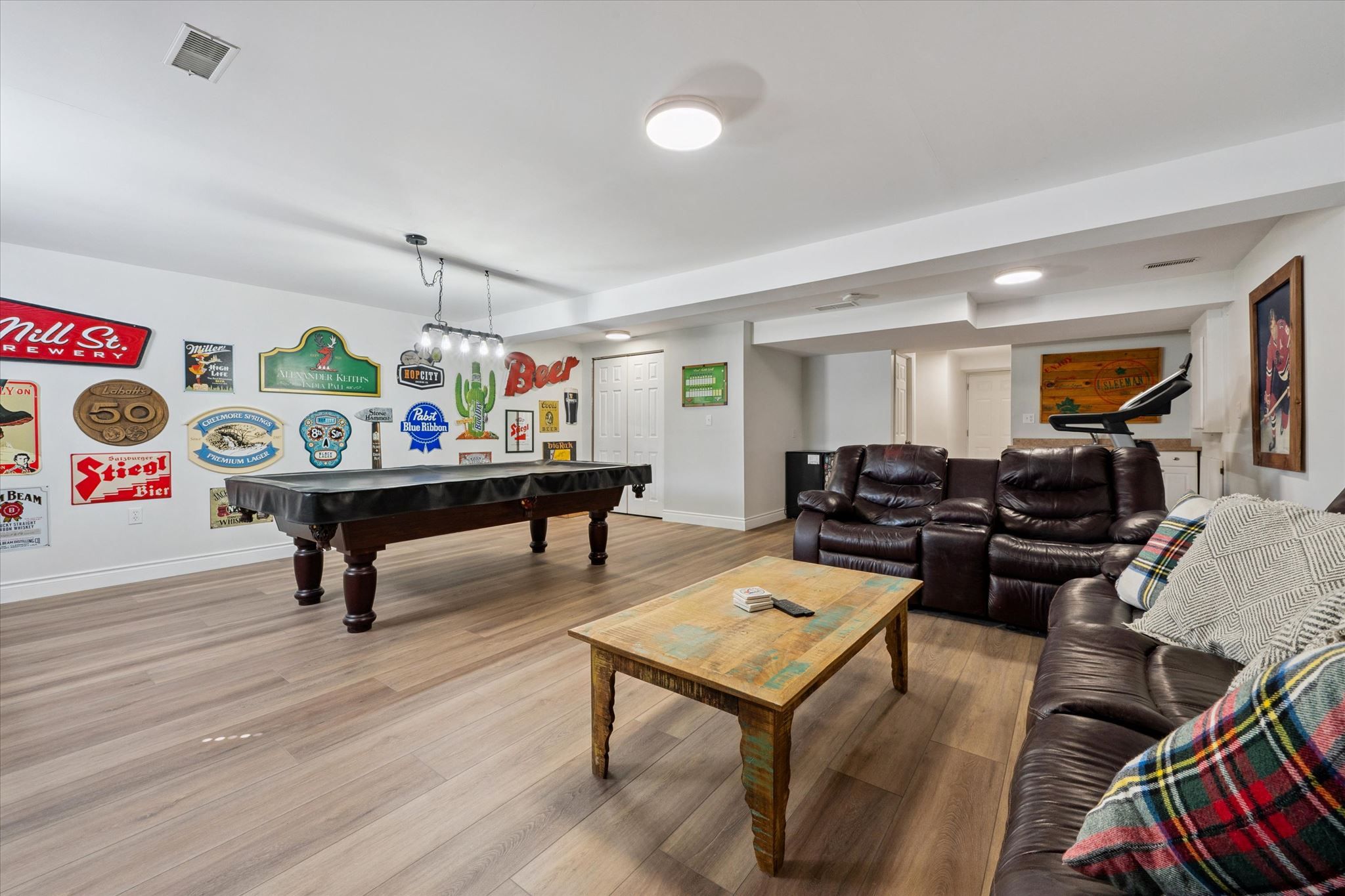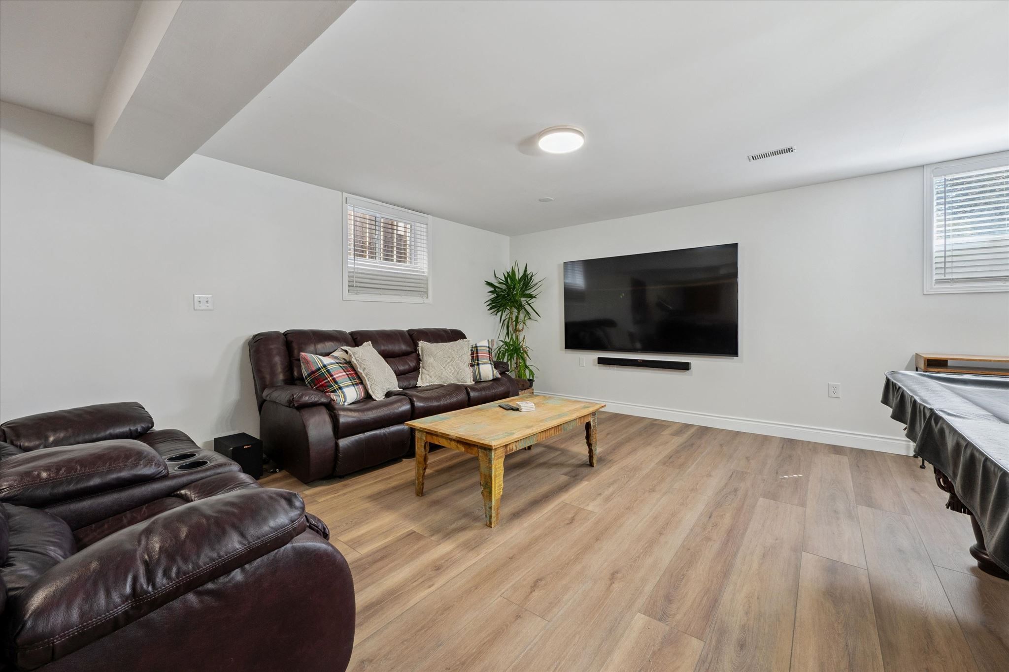 • Wide-open basement adaptable for various uses like a gym or games room.