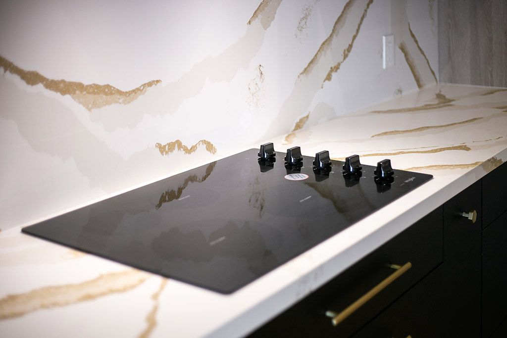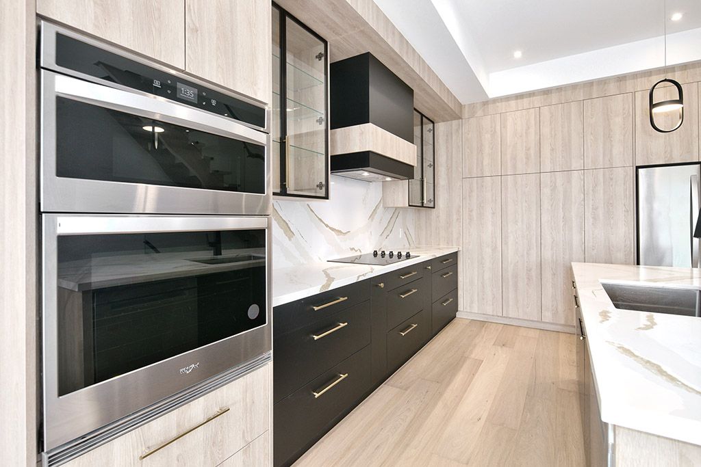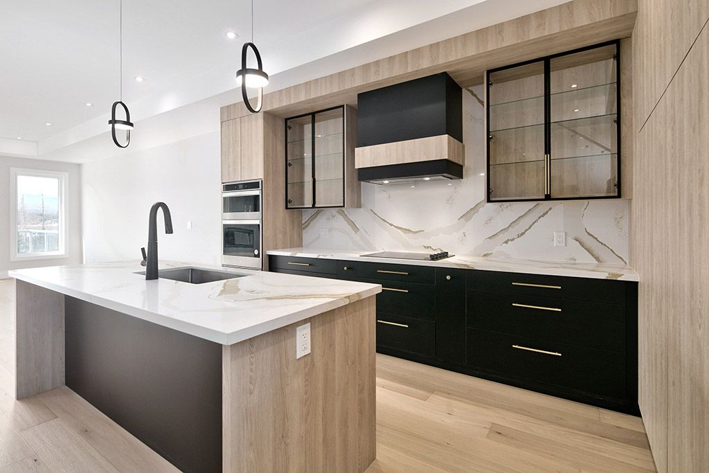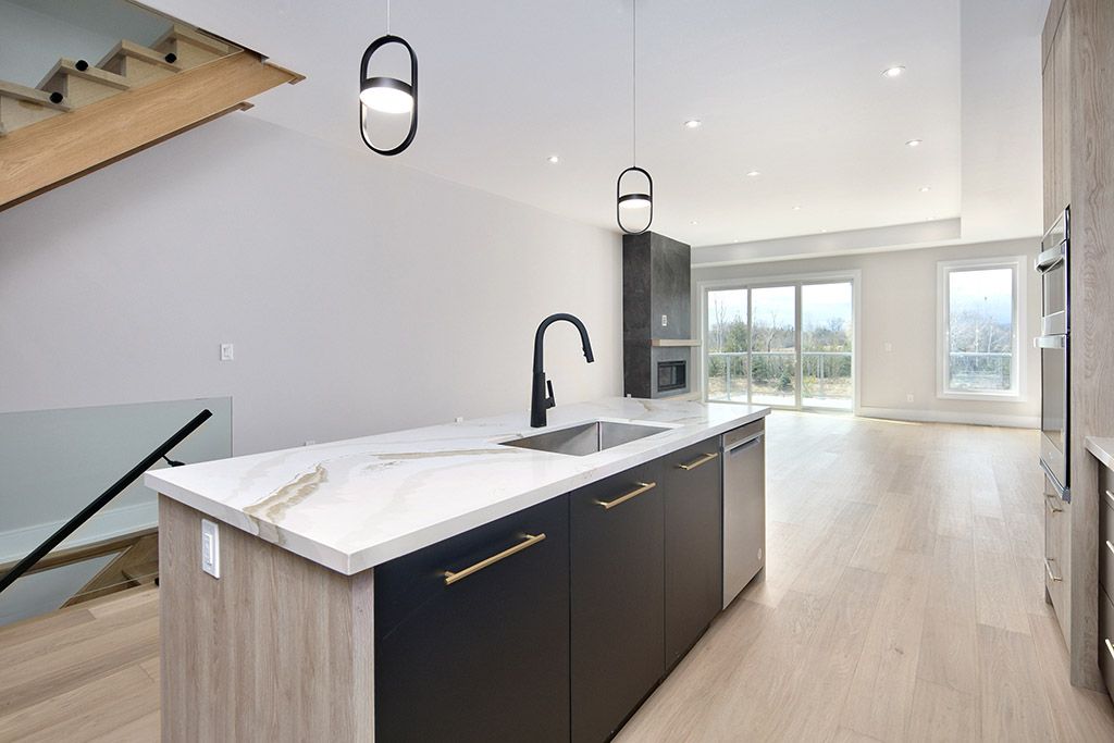 • Open-concept kitchen with large island and stylish upgraded finishes.