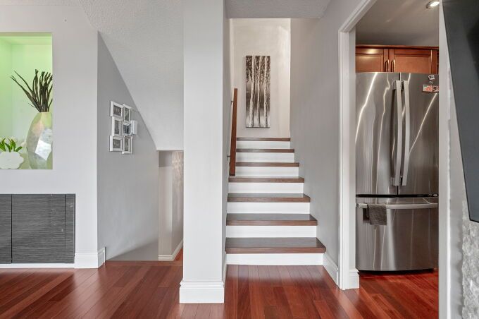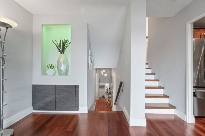 • Renovated multi-level condo feels like a spacious two-storey home.